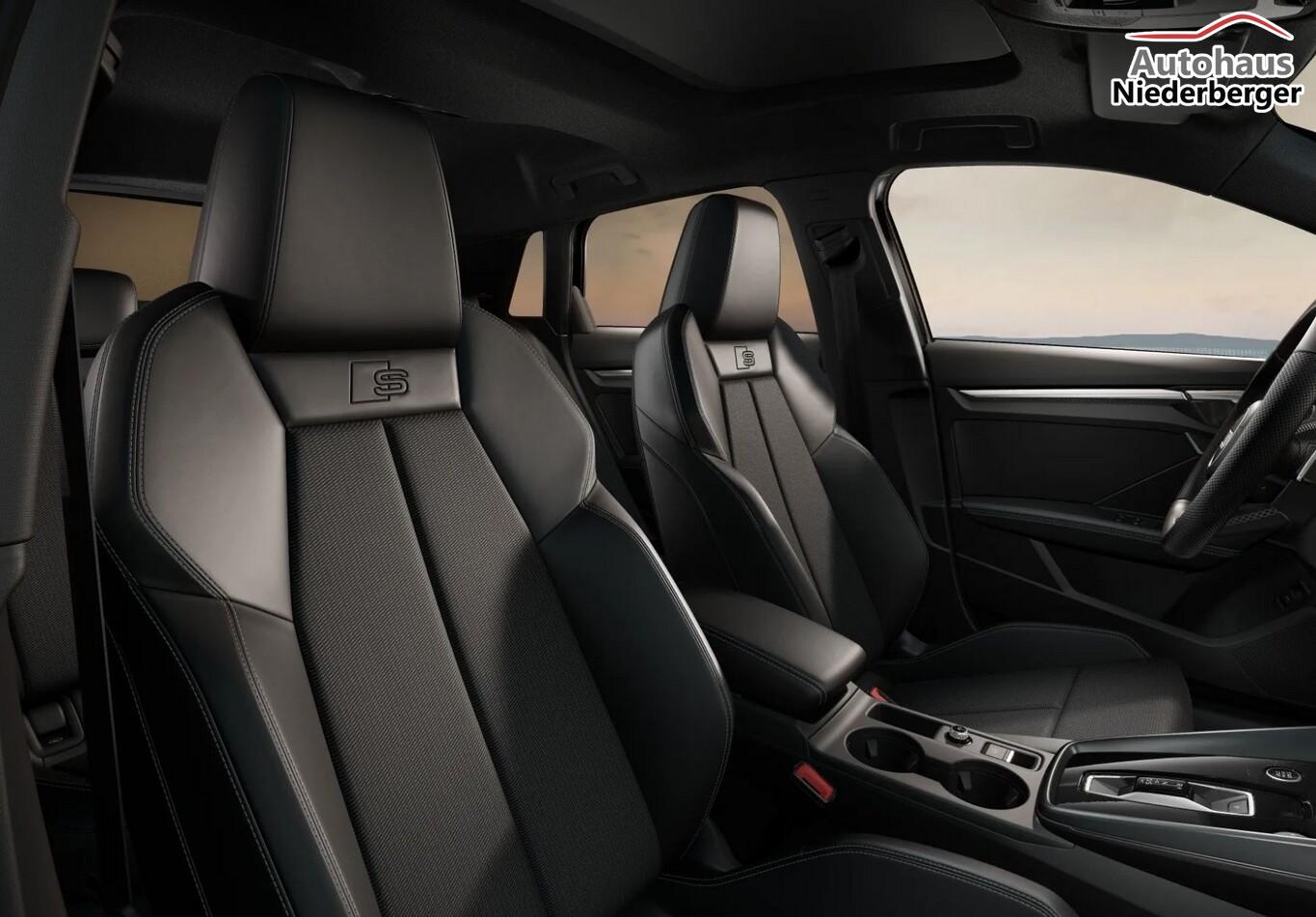 Infotainment-Paket (Audi Application Store und Smartphone Interface / Audi connect (Internetbasierende Dienste) / Kombiinstrument digital (virtual cockpit plus) / Sound-System DSP / Audi Sound-System / Multi-Media-Interface MMI Navigation Plus mit MMI Touch), LM-Felgen 8x18 (5-Y-Doppelspeichen Schwarz-Metallic), Panorama-Ausstelldach elektrisch, Klima-Paket (Komfort-Klimaautomatik 3-Zonen / Sitzheizung vorn), Scheinwerfer LED (Heckleuchten LED mit dynamischem Blinklicht), Assistenz-Paket Fahren (Fahrassistenz-System: Adaptive Geschwindigkeitsregelanlage (Adaptive Cruise Control) mit Autom. Distanzregelung / Rückfahrkamera / Einparkhilfe vorn und hinten, akustisch und optisch mit selektiver Anzeige (APS Plus) / Fahrassistenz-System: Parklenkassistent mit selektiver Anzeige / Fahrassistenz-System: Spurverlassenswarnung inkl. Notfall-Assistent), Komfortschlüssel mit Diebstahl-Warnanlage, Verglasung hinten abgedunkelt (Privacyverglasung), Audi Drive Select, Ambiente-Beleuchtung, Anschlussgarantie (2 Jahre / 120.000 km), Audi connect Navigation & Infotainment plus, Außenspiegel elektr. verstell-, heiz- und anklappbar, mit Abblendautomatik, Dachhimmel Stoff, schwarz, Einstiegsleisten mit Aluminiumeinlage und Schriftzug, beleuchtet, Gepäckraumklappe elektr. betätigt (öffnen + schliessen), Innenausstattung: Dekoreinlagen Aluminium Spektrum dunkel, Innenspiegel mit Abblendautomatik, Interieur S, Lendenwirbelstützen vorn, elektr. verstellbar, Lenkrad (Sport/Leder - 3-Speichen, unten abgeflacht) mit Multifunktion plus und Schaltfunktion, Mittelarmlehne vorn, Optikpaket schwarz plus, Pedalerie in Edelstahl, Reifen 225/40 R18, Rücksitzlehne geteilt/klappbar (40:60), Schadstoffarm nach Abgas Euro 6e (EU6 EB), Serviceintervall 30.000 km oder 2 Jahre, Sitzbezug / Polsterung: Stoff Puls / Kunstleder mit Logo-Prägung, Sportsitze vorn, Stoßfänger Ausführung: S line, Außenspiegel Wagenfarbe, Dachkantenspoiler S-line, Fensterzierleisten schwarz, Geschwindigkeits-Begrenzeranlage, Heckscheibenwischer, Innenausstattung: Dekoreinlagen Feinlack Grau, Karosserie: 5-türig, Kindersicherung elektr. betätigt, Kopfstützen hinten (3-fach), Mild-Hybrid 110 kW (Motor 1,5 Ltr. - 110 kW 16V TSI ACT), Mild-Hybrid-Technologie, Modellpflege, Nichtraucher-Paket, Parkbremse elektro-mechanisch, Radioempfang digital (DAB), Sitze vorn manuell einstellbar, Stoßfänger Sport-Design (S-line), Bluetooth-Freisprecheinrichtung mit Audi Phone Box light, Multi-Media-Interface MMI Basic Plus / MMI Radio Plus, USB-Ladeanschlüsse (2-fach, Typ C) für Fondpassagiere, Fahrassistenz-System: Bremsassistent (Audi pre sense front), Sport-Fahrwerk, Wegfahrsperre (elektronisch), Getriebe 7-Gang - Doppelkupplungsgetriebe S-tronic, Airbag Beifahrerseite abschaltbar, Airbag Fahrer-/Beifahrerseite, Kopf-Airbag-System (Sideguard), Rücksitzlehne geteilt/klappbar, Wärmeschutzverglasung grün getönt, Fahrassistenz-System: Verkehrszeichenerkennung, Multifunktionskamera, Audi connect (Notruf- und Assistance-System), Servolenkung elektro-mechanisch, Licht- und Regensensor, Tagfahrlicht, Fahrassistenz-System: Ausweich-Assistent, Reifendruck-Kontrollsystem, Start-Stop-Knopf, Start/Stop-Anlage