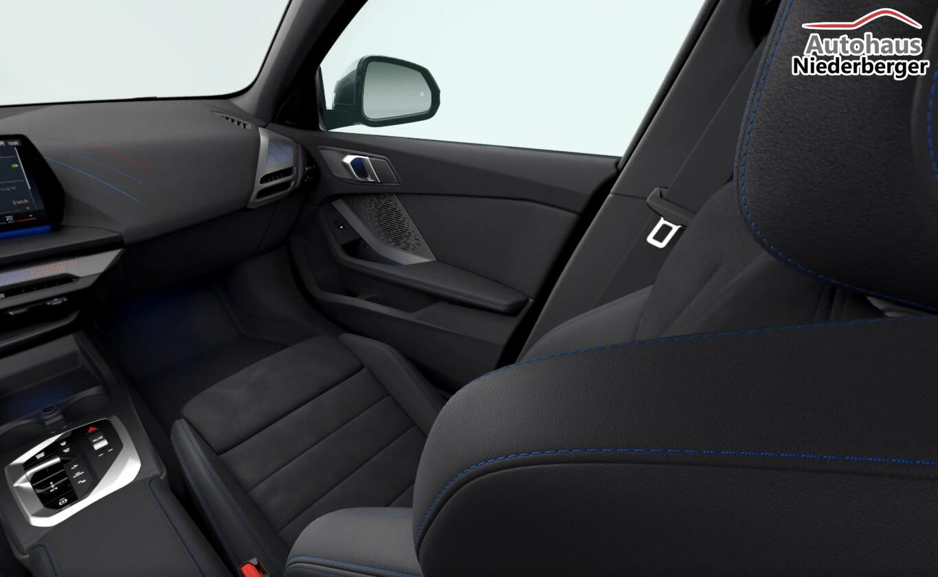Fahrassistenz-System: Driving Assistant Plus (Fahrassistenz-System: Verkehrszeichenerkennung mit Speed Limit-Assistent / Geschwindigkeits-Regelanlage, Aktiv mit Stop&Go-Funktion), Sonnenschutzverglasung (hinten abgedunkelt), LM-Felgen 8x18 (Y-Speiche 975, Bicolor, Midnight Grey, glanzgedreht), Außenspiegel anklappbar, Dachzierleisten in Wagenfarbe, Einstiegsleisten Aluminiumeinleger mit Schriftzug ,,M", Fahrassistenz-System: Ausstiegswarnung, Fahrassistenz-System: Ausweichassistent, Fahrassistenz-System: Linksabbiegewarnung mit Bremsfunktion, Fahrassistenz-System: Spurverlassenswarnung mit aktiver Rückführung, Fahrassistenz-System: Verkehrszeichenerkennung, Getränkehalter vorn, Instrumententafel mit Kontrastnähten, Intelligent Personal Assistant, Interieur Lichtpaket, M Interieurdekore Illuminated Aluminium Hexacube, matt, M Kennzeichnung an den Seiten, Navigationssystem, Pedalauflagen in Edelstahloptik, Reifen 225/45 R18, Schadstoffarm nach Abgasnorm Euro 6e (EU6 EA), Motor 1,5 Ltr. - 90 kW 12V KAT (Motor 1,5 Ltr. - 90 kW 12V), Parkassistent-Paket (Fahrassistenz-System: Anhängerassistent / Fahrassistenz-System: Parken Anfahrüberwachung / Fahrassistenz-System: Rückfahr-Assistent / Fahrassistenz-System: Rückfahrhilfe Notbremsfunktion (Active PDC) / Rückfahrkamera / Fahrassistenz-System: Park-Assistent), Fahrassistenz-System: Driving Assistant (Fahrassistenz-System: Heckaufprall-Vermeidung (Prävention Heckkollision) / Fahrassistenz-System: Querverkehrs-Assistent / Fahrassistenz-System: Spurwechsel-Warnsystem), Aktive Motorhaube, Außenausstattung: Shadow-Line Hochglanz, BMW Live Cockpit Plus, Dachhimmel Anthrazit, Geschwindigkeits-Begrenzeranlage (Speed Limit Device), Karosserie: 5-türig, M Sport, Parkbremse elektrisch, Personalisierungssystem (BMW My Modes), Personalisierungssystem (Personal eSIM), Radioempfang digital (DAB+), Service-System: Gesetzlicher Notruf, Sitzbezug / Polsterung: M Alcantara / Veganza Kombination (Schwarz mit blau Kontraststeppung), Multimedia-Schnittstelle 2 x USB (Typ C) Mittelkonsole vorn, Anti-Blockier-System (ABS), Bremsassistent, Fahrassistenz-System: Active Guard (Bremsassistent), Adaptives Fahrwerk M-Technic, Getriebe 7-Gang - Doppelkupplungsgetriebe mit Steptronic und Schaltwippen, Klimaautomatik, Airbag Beifahrerseite abschaltbar, Airbag Fahrer-/Beifahrerseite, Armauflage vorn, Fensterheber elektrisch, Isofix-Aufnahmen für Kindersitz an Beifahrersitz, Isofix-Aufnahmen für Kindersitz an Rücksitz, Sitzheizung vorn, Sportsitze vorn, Zentralverriegelung mit Fernbedienung, Geschwindigkeits-Regelanlage mit Bremsfunktion, Service-System: Intelligenter Notruf inkl. TeleServices, Lenkrad (Leder) mit Multifunktion M-Technic, Servolenkung Servotronic, Licht- und Regensensor, Lichtassistent (Follow me home), Scheinwerfer LED, Fahrassistenz-System: Aufmerksamkeits-Assistent, Fahrassistenz-System: Performance Control, Reifendruck-Kontrollsystem