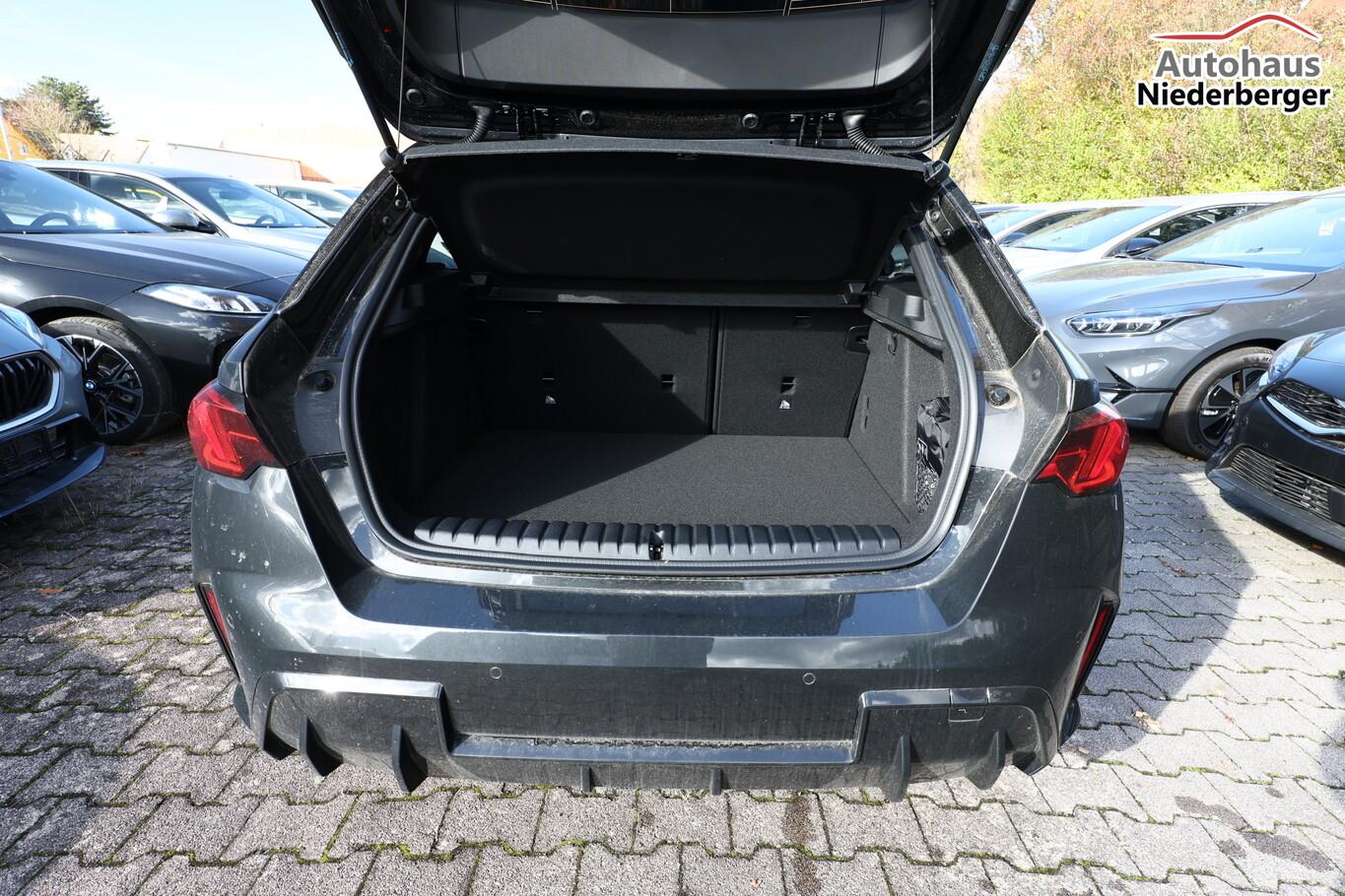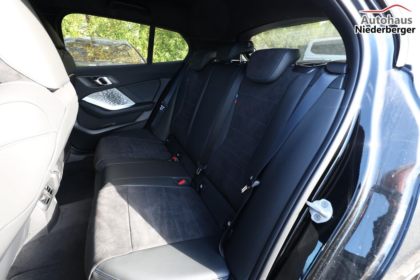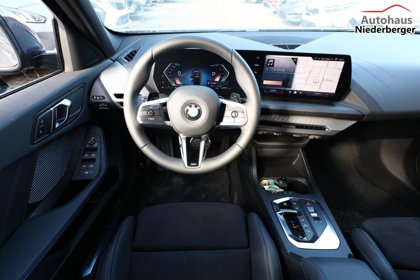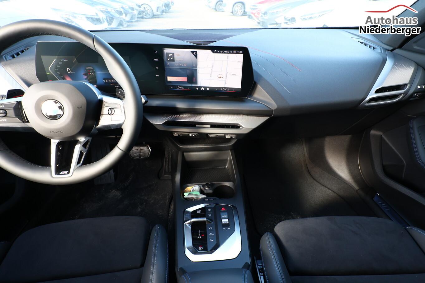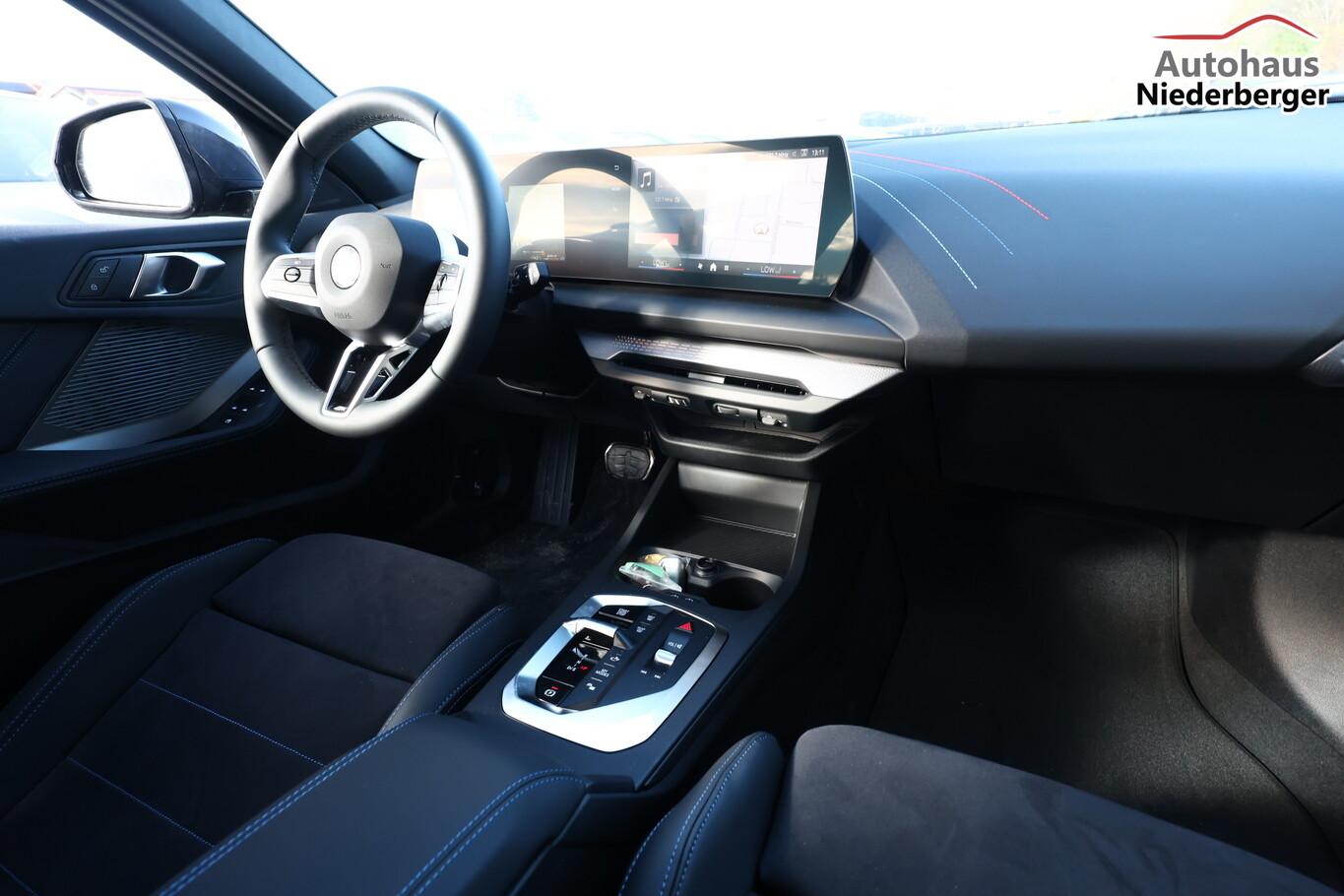 Fahrassistenz-System: Driving Assistant Plus (Fahrassistenz-System: Verkehrszeichenerkennung mit Speed Limit-Assistent / Geschwindigkeits-Regelanlage, Aktiv mit Stop&Go-Funktion), Klimaautomatik 2-Zonen mit autom. Umluft-Control, erweiterter Umfang, Sonnenschutzverglasung (hinten abgedunkelt), LM-Felgen 8x18 (Y-Speiche 975, Bicolor, Midnight Grey, glanzgedreht), Außenspiegel anklappbar, Dachzierleisten in Wagenfarbe, Einstiegsleisten Aluminiumeinleger mit Schriftzug ,,M", Fahrassistenz-System: Ausstiegswarnung, Fahrassistenz-System: Ausweichassistent, Fahrassistenz-System: Linksabbiegewarnung mit Bremsfunktion, Fahrassistenz-System: Spurverlassenswarnung mit aktiver Rückführung, Fahrassistenz-System: Verkehrszeichenerkennung, Getränkehalter vorn, Instrumententafel mit Kontrastnähten, Intelligent Personal Assistant, Interieur Lichtpaket, M Interieurdekore Illuminated Aluminium Hexacube, matt, M Kennzeichnung an den Seiten, Navigationssystem, Pedalauflagen in Edelstahloptik, Reifen 225/45 R18, Schadstoffarm nach Abgasnorm Euro 6e (EU6 EA), Motor 1,5 Ltr. - 115 kW Mild-Hybrid (Mild-Hybrid 125 kW (Motor 1,5 Ltr. - 115 kW)), Parkassistent-Paket (Fahrassistenz-System: Anhängerassistent / Fahrassistenz-System: Parken Anfahrüberwachung / Fahrassistenz-System: Rückfahr-Assistent / Fahrassistenz-System: Rückfahrhilfe Notbremsfunktion (Active PDC) / Rückfahrkamera / Fahrassistenz-System: Park-Assistent), Fahrassistenz-System: Driving Assistant (Fahrassistenz-System: Heckaufprall-Vermeidung (Prävention Heckkollision) / Fahrassistenz-System: Querverkehrs-Assistent / Fahrassistenz-System: Spurwechsel-Warnsystem), Aktive Motorhaube, Außenausstattung: Shadow-Line Hochglanz, BMW Live Cockpit Plus, Dachhimmel Anthrazit, Geschwindigkeits-Begrenzeranlage (Speed Limit Device), Karosserie: 5-türig, M Sport, Parkbremse elektrisch, Personalisierungssystem (BMW My Modes), Personalisierungssystem (Personal eSIM), Radioempfang digital (DAB+), Service-System: Gesetzlicher Notruf, Sitzbezug / Polsterung: M Alcantara / Veganza Kombination (Schwarz mit blau Kontraststeppung), Multimedia-Schnittstelle 2 x USB (Typ C) Mittelkonsole vorn, Anti-Blockier-System (ABS), Bremsassistent, Fahrassistenz-System: Active Guard (Bremsassistent), Adaptives Fahrwerk M-Technic, Getriebe 7-Gang - Doppelkupplungsgetriebe mit Steptronic und Schaltwippen, Airbag Beifahrerseite abschaltbar, Airbag Fahrer-/Beifahrerseite, Armauflage vorn, Fensterheber elektrisch, Isofix-Aufnahmen für Kindersitz an Beifahrersitz, Isofix-Aufnahmen für Kindersitz an Rücksitz, Sitzheizung vorn, Sportsitze vorn, Zentralverriegelung mit Fernbedienung, Geschwindigkeits-Regelanlage mit Bremsfunktion, Service-System: Intelligenter Notruf inkl. TeleServices, Lenkrad (Leder) mit Multifunktion M-Technic, Servolenkung Servotronic, Licht- und Regensensor, Lichtassistent (Follow me home), Scheinwerfer LED, Fahrassistenz-System: Aufmerksamkeits-Assistent, Fahrassistenz-System: Performance Control, Reifendruck-Kontrollsystem