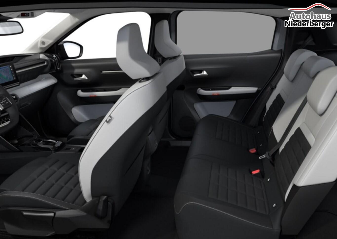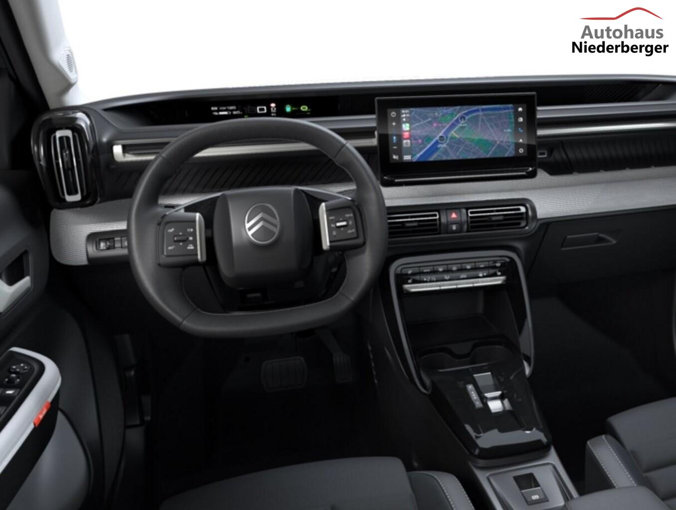 Winter-Paket (Lenkrad heizbar / Sitzheizung vorn / Frontscheibe heizbar / Nebelscheinwerfer LED), Ladevorrichtung On-Board-Lader 11 kW (Ladekabel mit Typ 2-Stecker (Mode 3)), 4 Verzurrösen, 6 Lautsprecher, Dachfarbe schwarz, Einparkhilfe hinten, Einparkhilfe vorn, Gepäckraumbeleuchtung, Gepäcktaschen an Rückseite der Vordersitzlehnen, Lenkrad mit Multifunktion, Leseleuchten vorn und hinten, LM-Felgen 17", Mittelarmlehne vorn, Radioempfang digital (DAB), Reifen 215/60 R17, Rückfahrkamera, Servolenkung, Smartphone-Schnittstelle (Apple CarPlay & Android Auto), Sonnenblenden mit Spiegel, USB-Schnittstelle (Typ C), Paketkombination: Sicherheit und Totwinkel-Assistent (Elektr. Bremskraftverteilung / Anti-Blockier-System (ABS) / Bremsassistent / Fahrassistenz-System: Aktiver Notbrems-Assistent (Active Safety Brake) / Antischlupfregelung (ASR) / Elektron. Stabilitäts-Programm (ESP) / Fahrassistenz-System: Berganfahrhilfe / Geschwindigkeits-Regelanlage (Tempomat) inkl. Geschwindigkeits-Begrenzeranlage / Fahrassistenz-System: Totwinkel-Assistent / Fahrassistenz-System: Aufmerksamkeits-Assistent (Müdigkeitserkennungs-Sensor) / Fahrassistenz-System: Spurassistent (AFIL) / Sicherheits-Paket), Fahrassistenz-System: Automatische Fahrlichtschaltung inkl. Fernlichtassistent (Einschaltautomatik für Fahrlicht), Außenspiegel mit Abdeckkappen schwarz, Citroen Advanced Comfort Sitze, Elektromotor 83 kW (cont. 53 kW), Heckscheibe heizbar, Heckscheibenwischer, HV-Batterie 44 kWh (Lithium-Ionen), Innenspiegel mit Abblendautomatik, Karosserie: 5-türig, Koffer-/Laderaumboden variabel (Moduboard), Lenksäule (Lenkrad) mech. höhen-/längsverstellbar, Radstand 2670 mm, Sitz vorn links höhenverstellbar, Audio-Navigationssystem: 3D Navigation mit 10,25 Zoll Touchscreen, Antriebsart: Frontantrieb, Getriebe für Elektrofahrzeug, Klimaautomatik, Airbag Beifahrerseite abschaltbar, Airbag Fahrer-/Beifahrerseite, Kopf-Airbag-System und Seitenairbag, Fensterheber elektrisch hinten, Fensterheber elektrisch vorn, Isofix-Aufnahmen für Kindersitz an Rücksitz, Rücksitzlehne geteilt/klappbar 1/3-2/3, Seitenscheiben hinten und Heckscheibe dunkel getönt, Sitzbezug / Polsterung: Stoff/Kunstleder, Zentralverriegelung mit Fernbedienung, Head-up-Display (Kombiinstrument hochgesetzt), Dachreling schwarz, Fahrassistenz-System: Verkehrszeichenerkennung, Außenspiegel elektr. verstell-, heiz- und anklappbar, Scheibenwischer mit Regensensor, Scheinwerfer Eco-LED, Tagfahrlicht LED, Reifendruck-Kontrollsystem
