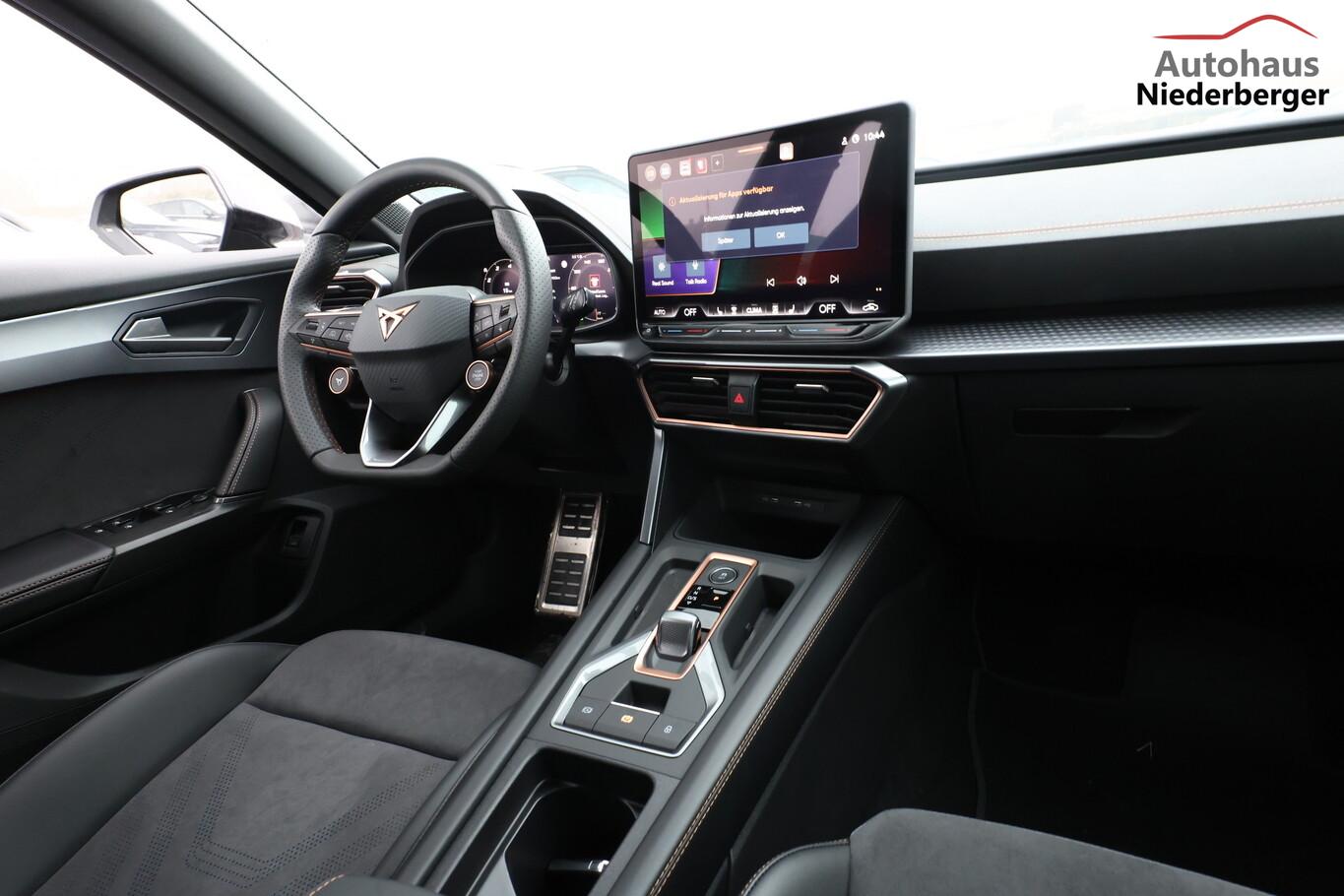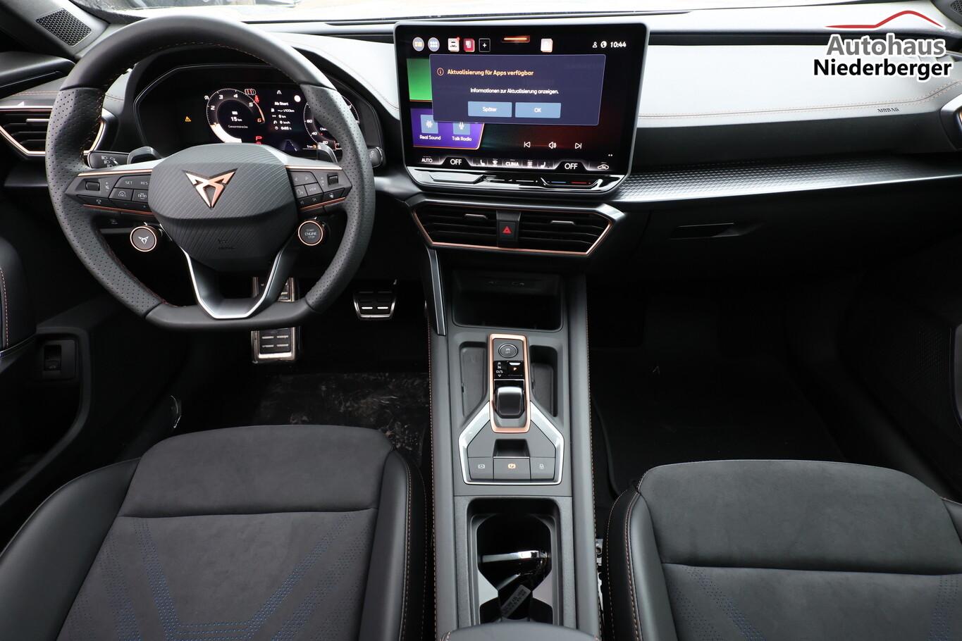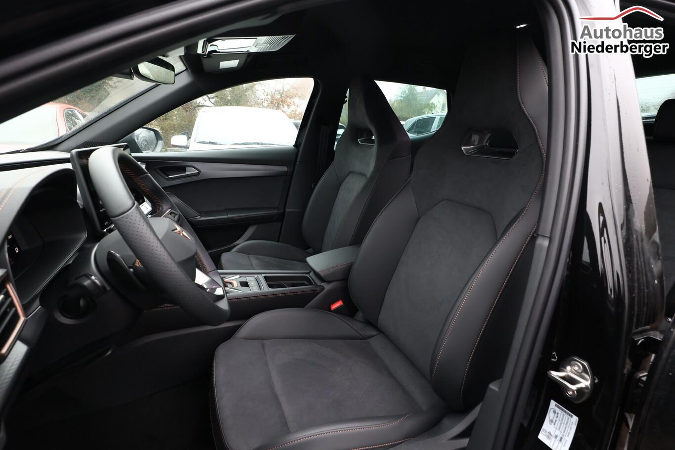 Performance-Paket (Fahrassistenz-System: Adaptive Fahrwerksregelung (DCC) / HD Matrix-LED-Scheinwerfer), Design-Paket Dynamic (Lendenwirbelstütze Sitz vorn links, elektr. verstellbar / Sitzbezug / Polsterung: Stoff Dinamica / Kunstleder schwarz mit blauen Akzenten / Sitz vorn links elektr. verstellbar (mit Memory) / Sitzheizung vorn / Sport-Schalensitze vorn mit integrierten Kopfstützen / Außenspiegel elektr. verstell-, heiz- und anklappbar, Spiegelabsenkung, Welcome Light, Memory / Winter-Paket), Edge-Paket (Ambiente-Beleuchtung LED / Ambiente-Beleuchtung Smart Ambient Light / Schließ-/Startsystem Kessy Advanced / Heckklappe/-Deckel elektr. betätigt (öffnen + schliessen, sensorgesteuert) / Rückfahrkamera / Diebstahl-Warnanlage mit Innenraumüberwachung und Abschleppschutz), Audiosystem inkl. 12,9"-Touchscreen, Fahrassistenz-System: Abbiege- und Ausweichassistent, Fahrassistenz-System: Autom. Distanzregelung (ACC), Fahrassistenz-System: Kreuzungsassistent, Gepäcktaschen an Rückseite der Vordersitzlehnen, Geschwindigkeits-Begrenzeranlage, Induktionsladeschale für Smartphone, Isofix-Aufnahmen für Kindersitz an Beifahrersitz und Rücksitz, LM-Felgen 8x19, Mittelarmlehne hinten, Navigation in Verbindung mit dem Smartphone (über Apple Carplay / Android Auto /...), Reifen 245/40 R19, Rücksitzlehne geteilt/klappbar, Schadstoffarm nach Abgasnorm Euro 6e (EU6 EA), Schublade unter dem rechten Vordersitz, Serviceintervall 30.000 km oder 2 Jahre, Sprachsteuerungs-System, Vorbereitung für Navigationssystem, Licht- und Sicht-Paket (Innenspiegel mit Abblendautomatik / Einschaltautomatik für Fahrlicht / Licht- und Regensensor / Lichtassistent (Coming Home, Leaving Home)), Einstiegsleisten vorn beleuchtet, Fensterzierleisten schwarz, Gepäckraumabdeckung / Rollo, Karosserie: 5-türig, Kombiinstrument digital (virtual cockpit), Kopfstützen hinten (3-fach), Ladekabel mit Schukostecker, Leseleuchten hinten LED, Leseleuchten vorn LED, Mobile Online Dienste Cupra Connect plus, Motor 2,0 Ltr. - 110 kW TDI, Parkbremse elektrisch mit Auto-Hold-Funktion, Radioempfang digital (DAB+), Radstand Standard, Sitz vorn rechts höhenverstellbar, Sonnenblende links mit Spiegel (beleuchtet), Sonnenblende rechts mit Spiegel (beleuchtet), Steckdose 230V im Gepäckraum, Warnanlage für Sicherheitsgurt-System, Full Link (MirrorLink, Apple CarPlay und Android Auto), USB-Schnittstelle vorn (2-fach, Typ C), Antriebsart: Frontantrieb, Elektron. Differentialsperre (XDS), Getriebe 7-Gang - Doppelkupplungsgetriebe DSG, Klimaanlage Climatronic 3-Zonen, Airbag Beifahrerseite abschaltbar, Airbag Fahrer-/Beifahrerseite, Fensterheber elektrisch vorn + hinten mit Komfortschaltung, Kopf-Airbag-System, Mittelarmlehne vorn, Seitenairbag, Seitenairbag vorn mitte (Central Airbag), Seitenscheiben hinten und Heckscheibe abgedunkelt, Dachreling schwarz, hochglänzend, Fahrassistenz-System: Automatische Distanzregelung (ACC), Fahrassistenz-System: Verkehrszeichenerkennung, Notrufsystem, Lenkrad heizbar (CUPRA Supersport, Leder) mit Multifunktion und Schaltfunktion, Progressivlenkung, Einparkhilfe vorn und hinten, Fahrassistenz-System: Müdigkeitserkennung, Fahrassistenz-System: Spurhalteassistent, Fahrassistenz-System: Umfeldbeobachtungssystem (Front assist) mit City-Notbremsfunktion, Reifenkontroll-Anzeige, Rußpartikelfilter, Start/Stop-Anlage