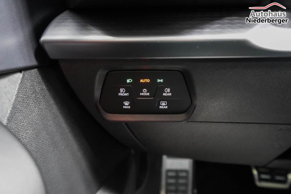 Beifahrersitz höhenverstellbar, Fahrersitz höhenverstellbar, Lederlenkrad, Lendenwirbelstütze, Mittelarmlehne vorne, Sportsitze, Gepäckraumabdeckung, geteilt umklappbare Rücksitzlehne, Lenkrad höhenverstellbar, Sitzbezug Dinamica, Ambiente-Beleuchtung, Elektrisch verstellbarer Fahrersitz, Beheizbares Lenkrad, Supersportlenkrad, Isofix, Isofix Beifahrersitz, abgedunkelte Scheiben, 19 Zoll Alufelgen Sandstorm Kupfer, Dachreling schwarz, ABS, Alarmanlage, Außenspiegel elektrisch, Fensterheber elektrisch, Kopfairbags, Nebelscheinwerfer, Schiebedach, Seitenairbags, Servolenkung, Sitzheizung, DCC, ESP, Wegfahrsperre, Außenspiegel beheizbar, Beifahrerairbag, Fahrerairbag, Parkpilot hinten, Parkpilot vorne, Reifendruckkontrolle, Regensensor, Lichtsensor, Digital Cockpit, Anhängekupplung schwenkbar, Tempomat Abstand ACC, Fernlichtassistent, Spurhalteassistent plus, Totwinkelassistent, Verkehrszeichenerkennung, LED-Scheinwerfer, Tagfahrlicht LED, Pannenset, Rückfahrkamera, Intelligent Park-Assistent, Panoramadach, Elektrische Heckklappe inkl. Virtual Pedal, KeylessEntry, StartStopSystem, Innenspiegel automatisch abbl., Müdigkeitswarnsystem, Notrufsystem, Schaltwippen, Klimaautomatik 3-Zonen, 360-Grad-Kamera, Geschwindigkeitsbegrenzer, Android Auto, Apple Carplay, Freisprecheinrichtung, Induktionsladestation, Sprachsteuerung, USB, Radio DAB, Bluetooth, Bordcomputer, Radio-Navigationssystem, Full Link, Stauassistent, Pre-Crash, erweiterte Herstellergarantie 4 Jahre/120.000km,