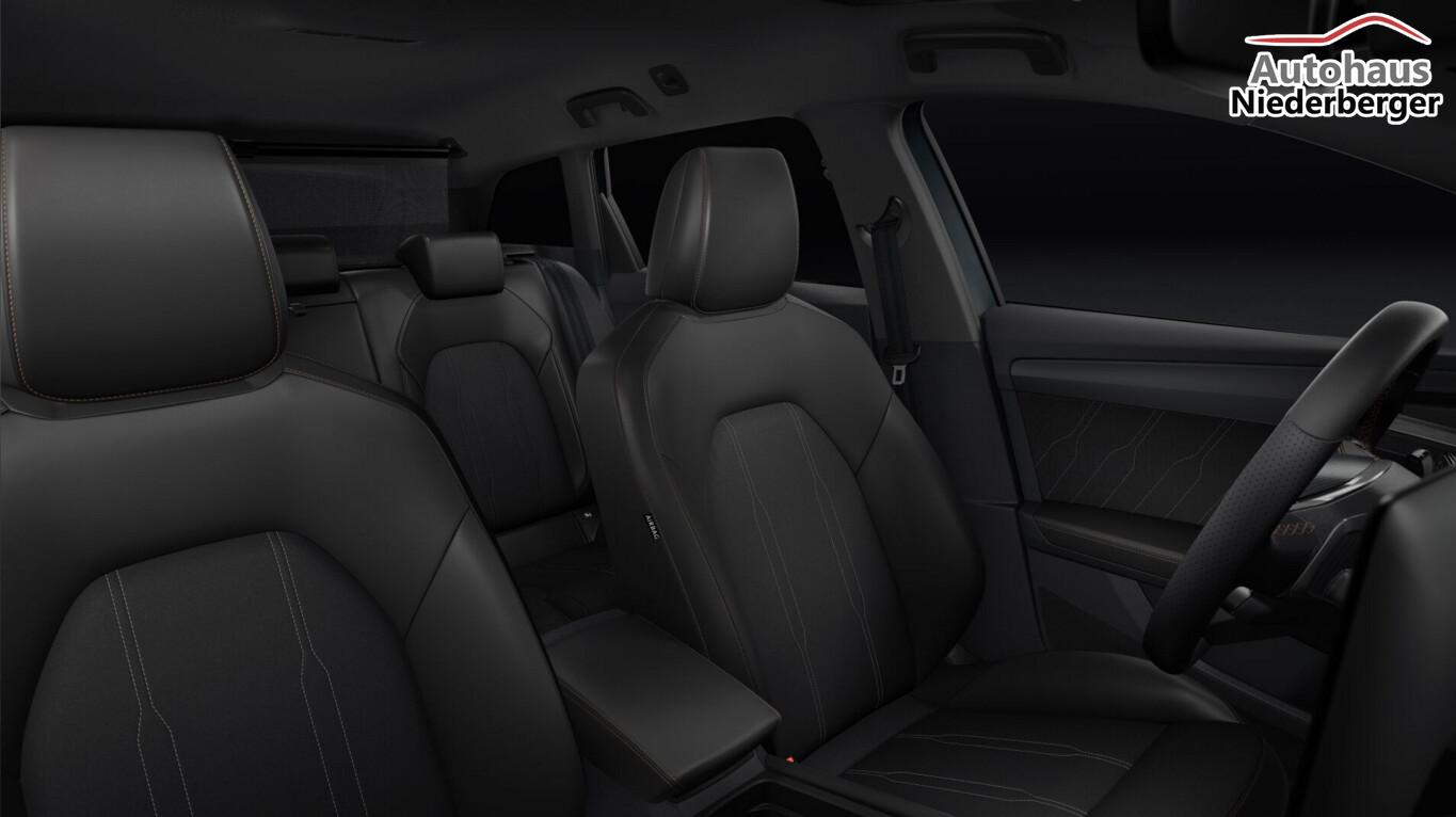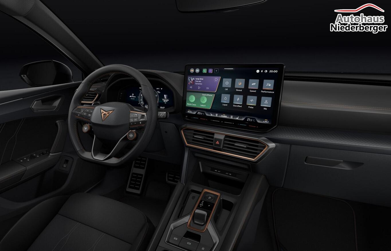 Edge-Paket (Ambiente-Beleuchtung LED / Ambiente-Beleuchtung Smart Ambient Light / Schließ-/Startsystem Kessy Advanced / Heckklappe/-Deckel elektr. betätigt (öffnen + schliessen, sensorgesteuert) / Rückfahrkamera / Diebstahl-Warnanlage mit Innenraumüberwachung und Abschleppschutz), Winter-Paket (Sitzheizung vorn), Anhängerkupplung Vorbereitung, Anti-Blockier-System (ABS), Bluetooth-Freisprecheinrichtung inkl. Sprachsteuerung, Bordcomputer, Elektr. Stabilitätsprogramm (ESP), Heckleuchten Voll-LED mit dynamischem Lichtband (Infinite Light), LM-Felgen 18 Zoll (Garbi), Navigation in Verbindung mit dem Smartphone (über Apple Carplay / Android Auto /...), Otto-Partikelfilter, Pedale Aluminium-Design, Scheinwerfer Voll-LED, Sommerreifen 225/40 R18, Zentralverriegelung, Licht- und Sicht-Paket (Innenspiegel mit Abblendautomatik / Einschaltautomatik für Fahrlicht / Licht- und Regensensor / Lichtassistent (Coming Home, Leaving Home)), Media-System Plus (Audiosystem mit 12,9" Touchscreen-Farbdisplay), Abdeckkappen Außenspiegel Dark Aluminium, Connectivity-Box, Dachhimmel schwarz, Einstiegsleisten vorn beleuchtet, Fensterzierleisten schwarz hochglänzend, Gepäck-/Laderaumboden doppelt, Gepäckraum-Abtrennung (Netz), Gepäckraumbeleuchtung (LED), Karosserie: 5-türig, Kombiinstrument digital (virtual cockpit), Lendenwirbelstütze Sitz vorn links, verstellbar, Lendenwirbelstütze Sitz vorn rechts, verstellbar, Leseleuchten hinten LED, Leseleuchten vorn LED, Motor 2,0 Ltr. - 150 kW 16V TSI, Radioempfang digital (DAB+), Sitz vorn links höhenverstellbar, Sitz vorn rechts höhenverstellbar, Sitzbezug / Polsterung: Stoff/Kunstleder schwarz (Sharp Textil), Sonnenblende links mit Spiegel (beleuchtet), Sonnenblende rechts mit Spiegel (beleuchtet), Warnanlage für Sicherheitsgurt-System, Full Link (MirrorLink, Apple CarPlay und Android Auto), USB-Ladeanschlüsse (2-fach, Typ C) für 2.Sitzreihe, USB-Schnittstelle vorn (2-fach, Typ C), Getriebe 7-Gang - Doppelkupplungsgetriebe DSG, Klimaanlage Climatronic 3-Zonen, Airbag Beifahrerseite abschaltbar, Airbag Fahrer-/Beifahrerseite, Fensterheber elektrisch vorn + hinten mit Komfortschaltung, Isofix-Aufnahmen für Kindersitz an Beifahrersitz und Rücksitz (inkl. i-Size-Kindersitze), Mittelarmlehne vorn, Seitenscheiben ab 2.Sitzreihe und Heckscheibe dunkel getönt (Privacy Glass), Sportsitze vorn, Fahrassistenz-System: Fahrprofilauswahl (CUPRA Drive Profile), Dachreling schwarz, hochglänzend, Wärmeschutzverglasung, Fahrassistenz-System: Automatische Distanzregelung (ACC), Notrufsystem, Lenkrad heizbar (CUPRA Supersport, Leder) mit Multifunktion und Schaltfunktion, Progressivlenkung, Außenspiegel elektr. verstell-, heiz- und anklappbar mit Spiegelabsenkung und Welcome Light, Einparkhilfe vorn und hinten, Fahrassistenz-System: Müdigkeitserkennung, Fahrassistenz-System: Spurhalteassistent, Fahrassistenz-System: Umfeldbeobachtungssystem (Front assist) mit City-Notbremsfunktion, Reifenkontroll-Anzeige