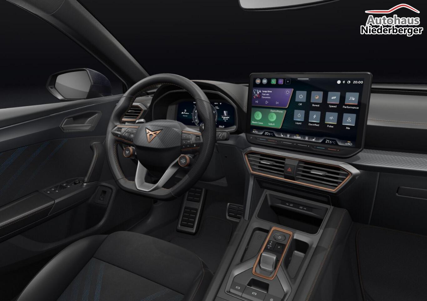 Intelligent-Drive-Paket (Fahrassistenz-Paket XL / Fahrassistenz-System: Totwinkel-Assistent mit Auspark-Assistent, Spurwechselassistent und Ausstiegswarnung / Fahrassistenz-System: Intelligent Park Assist (IPA) / Fahrassistenz-System: Pre-Crash-System / Fahrassistenz-System: Spurhalteassistent Plus inkl. Travel Assist, Emergency Assist und Stauassistent), Anhängerkupplung Vorbereitung, Audio-Navigationssystem mit Touchscreen Farbbildschirm 12,9", Außenspiegel Beifahrerseite mit Absenk- und Memoryfunktion, Außenspiegel elektrisch anklapp-/einstellbar, separat beheizbar, Außenspiegel links, rechts konvex, Chrom-Paket, Fahrassistenz-System: Ausweichunterstützung mit Abbiegeassistent, Fahrassistenz-System: Gepäcktaschen an Rückenlehnen, Komforttelefonie: Wireless Charging (fast charge) und Außenantennenanbindung, LM-Felgen 19 Zoll, Navigation in Verbindung mit dem Smartphone (über Apple Carplay / Android Auto /...), Reifen 235/35 R19, Schadstoffarm nach Abgasnorm Euro 6e (EU6 EA), Schublade unter dem rechten Vordersitz, Service -/ Wartungsintervall 2 Jahre / 30000 km, Sitz vorn links elektr. verstellbar (mit Memory), Sitzheizung vorn, Sport-Schalensitze vorne mit integrierter Kopfstütze, Edge Paket mit Safesicherung (Ambiente-Beleuchtung LED / Ambiente-Beleuchtung Smart Ambient Light / Schließ-/Startsystem Kessy Advanced mit Safesicherung / Heckklappe/-Deckel elektr. betätigt (öffnen + schliessen, sensorgesteuert) / Rückfahrkamera / Diebstahl-Warnanlage mit Innenraumüberwachung und Abschleppschutz), Licht- und Sicht-Paket (Innenspiegel mit Abblendautomatik / Einschaltautomatik für Fahrlicht / Licht- und Regensensor / Lichtassistent (Coming Home, Leaving Home)), Voll-LED-Paket (Leuchtweitenregelung automatisch / Heckleuchten Voll-LED mit dynamischem Lichtband (Infinite Light) / Nebelscheinwerfer LED mit Abbiegelicht / Scheinwerfer Voll-LED), 6 Lautsprecher, Einstiegsleisten vorn beleuchtet, Fensterzierleisten schwarz hochglänzend, Gepäckraum-Abtrennung (Netz), Gepäckraumabdeckung / Rollo, Karosserie: 5-türig, Kombiinstrument digital (virtual cockpit), Kopfstützen hinten (3-fach), Lendenwirbelstütze Sitz vorn links, verstellbar, Leseleuchten hinten LED, Leseleuchten vorn LED, Mobile Online Dienste Cupra Connect plus, Motor 2,0 Ltr. - 245 kW 16V TSI, Parkbremse elektrisch mit Auto-Hold-Funktion, Radioempfang digital (DAB+), Sicherheitsgurte vorn höhenverstellbar, Sitz vorn links höhenverstellbar, Sonnenblende links mit Spiegel (beleuchtet), Sonnenblende rechts mit Spiegel (beleuchtet), Steckdose 230V im Gepäckraum, Warnanlage für Sicherheitsgurt-System, Full Link (MirrorLink, Apple CarPlay und Android Auto), USB-Ladeanschlüsse (2-fach, Typ C) für 2.Sitzreihe, USB-Schnittstelle vorn (2-fach, Typ C), Antriebsart: Allradantrieb, Differentialsperre (Vorderachse), Elektron. Differentialsperre (XDS), Getriebe 7-Gang - Doppelkupplungsgetriebe DSG, Klimaanlage Climatronic 3-Zonen, Airbag Beifahrerseite abschaltbar, Airbag Fahrer-/Beifahrerseite, Fensterheber elektrisch vorn + hinten mit Komfortschaltung, Isofix-Aufnahmen für Kindersitz an Beifahrersitz und Rücksitz (inkl. i-Size-Kindersitze), Kopf-Airbag-System, Mittelarmlehne vorn, Rücksitzlehne geteilt/klappbar mit Mittelarmlehne und Durchladeeinrichtung, Schließ-/Startsystem Kessy Advanced, Seitenairbag, Seitenscheiben ab 2.Sitzreihe und Heckscheibe dunkel getönt (Privacy Glass), Zentralverriegelung / Startanlage Keyless Go (Start-Stop-Knopf), Dachreling schwarz, hochglänzend, Wärmeschutzverglasung, Fahrassistenz-System: Autom. Distanzregelung (ACC / PCC) mit vorausschauender Geschw.-Regelung, Fahrassistenz-System: Verkehrszeichenerkennung, Notrufsystem, Lenkrad heizbar (CUPRA Supersport, Leder) mit Multifunktion und Schaltfunktion, Fahrassistenz-System: Fernlichtassistent, Einparkhilfe vorn und hinten, Fahrassistenz-System: Müdigkeitserkennung, Fahrassistenz-System: Spurhalteassistent, Fahrassistenz-System: Umfeldbeobachtungssystem (Front assist) mit City-Notbremsfunktion, Reifenkontroll-Anzeige