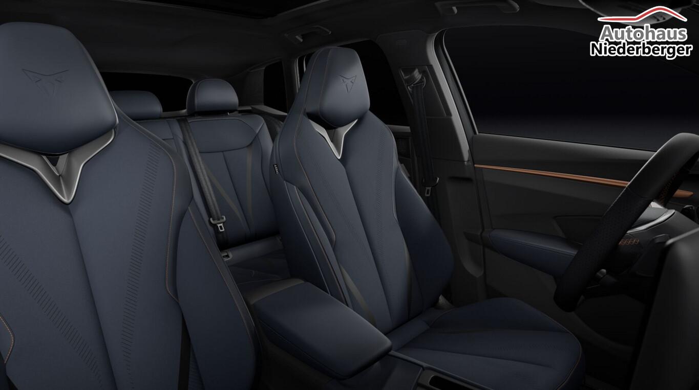 Skyline-Paket (Panorama Schiebe-/Hebedach elektrisch), Anhängerkupplung (Kugelkopf mit elektr. Entriegelung, schwenkbar), Fahrassistenz-System: Anhänger-Rangierassistent (Trailer Assist), Intelligent-Drive-Paket (Kamerasystem Umgebungsansicht (Top View, 360°) / Fahrassistenz-System: Fernlichtassistent / Fahrassistenz-System: Totwinkel-Assistent mit Auspark-Assistent, Spurwechselassistent und Ausstiegswarnung / Fahrassistenz-System: Intelligent Park Assist (IPA) / Fahrassistenz-System: Intelligenter Parkassistent inkl. trainiertem Parken / Fahrassistenz-System: Pre-Crash-System / Fahrassistenz-System: Spurhalteassistent Plus inkl. Travel Assist, Emergency Assist und Stauassistent), Digital Drive-Paket (Kombiinstrument digital (10,25 Zoll) / Kombiinstrument digital (virtual cockpit) / Audio-Navigationssystem mit Touchscreen Farbbildschirm 12,9" / Head-up-Display), LM-Felgen 8,5x20 (Hadron, schwarz / silber, glanzgedreht), Performance-Reifen, Mobile Online Dienste Cupra Connect plus, Außenspiegel elektr. verstell-, heiz- und anklappbar mit Spiegelabsenkung, Welcome Light, Diebstahl-Warnanlage mit Innenraumüberwachung und Abschleppschutz, Einstiegsleisten vorn beleuchtet, Fahrassistenz-System: Automatische Distanzregelung (ACC), Heckklappe/-Deckel elektr. betätigt (öffnen + schliessen, sensorgesteuert), Induktionsladeschale für Smartphone, Isofix-Aufnahmen für Kindersitz an Beifahrersitz und Rücksitz, Klimaautomatik Climatronic 3-Zonen, Lenkrad heizbar (Sport/Leder) mit Multifunktion und Schaltfunktion, Reifen 255/40 R20, Schadstoffarm nach Abgasnorm Euro 6e (EU6 EB), Schließ-/Startsystem Kessy, Seitenscheiben hinten und Heckscheibe abgedunkelt, Serviceintervall 30.000 km oder 2 Jahre, Sitzheizung vorn, Sportsitze vorn, Connectivity-Box, Dachhimmel schwarz, Doppeltonhorn, Fahrassistenz-System: Abbiegebremsfunktion und Ausweichunterstützung, Fußraumbeleuchtung LED, Gepäck-/Laderaumboden doppelt, Geschwindigkeitsbegrenzer mit vorausschauender Geschw.-Regelung, Innenspiegel mit Abblendautomatik, Karosserie: 5-türig, Kopfstützen hinten (3-fach), Leseleuchten hinten LED, Leseleuchten vorn LED, Motor 2,0 Ltr. - 195 kW 16V TSI, Parkbremse elektrisch mit Auto-Hold-Funktion, Pedale Aluminium-Design, Radioempfang digital (DAB+), Radstand Standard, Reifen-Reparaturset, Sitz vorn links höhenverstellbar, Sitz vorn rechts höhenverstellbar, Sonnenblende links mit Spiegel (beleuchtet), Sonnenblende rechts mit Spiegel (beleuchtet), Warnanlage für Sicherheitsgurt-System, Full Link (MirrorLink, Apple CarPlay und Android Auto), Sprachsteuerungs-System, USB-Ladeanschlüsse (2-fach, Typ C) für 2.Sitzreihe, USB-Schnittstelle vorn (2-fach, Typ C), Antriebsart: Allradantrieb, Elektron. Stabilitäts-Programm (ESP) mit Bremskraftverstärker elektro-mechanisch, Fahrassistenz-System: Adaptive Fahrwerksregelung (DCC), Wegfahrsperre (elektronisch), Getriebe 7-Gang - Doppelkupplungsgetriebe DSG, Airbag Beifahrerseite abschaltbar, Airbag Fahrer-/Beifahrerseite, Fensterheber elektrisch vorn + hinten mit Komfortschaltung, Isofix-Aufnahmen für Kindersitz an Beifahrersitz und Rücksitz (inkl. i-Size-Kindersitze), Kopf-Airbag-System, Mittelarmlehne vorn, Rücksitzlehne geteilt/klappbar mit Mittelarmlehne und Durchladeeinrichtung, Seitenairbag, Seitenairbag vorn mitte (Central Airbag), Zentralverriegelung / Startanlage Keyless Go (Start-Stop-Knopf), Fahrassistenz-System: Fahrprofilauswahl (CUPRA Drive Profile), Dachreling schwarz, Wärmeschutzverglasung, Fahrassistenz-System: Berganfahr-Assistent, Fahrassistenz-System: Verkehrszeichenerkennung, Rückfahrkamera, Notrufsystem, Progressivlenkung, Heckleuchten LED mit dynamischem Blinklicht, Licht- und Regensensor, Lichtassistent (Coming Home, Leaving Home), Nebelscheinwerfer LED mit Abbiegelicht, Scheinwerfer Voll-LED, Tagfahrlicht LED, Einparkhilfe vorn und hinten, Fahrassistenz-System: Ablenkungs- und Müdigkeitserkennung, Fahrassistenz-System: Kreuzungs-Assistent, Fahrassistenz-System: Spurhalteassistent, Fahrassistenz-System: Umfeldbeobachtungssystem (Front assist) mit City-Notbremsfunktion, Reifenkontroll-Anzeige