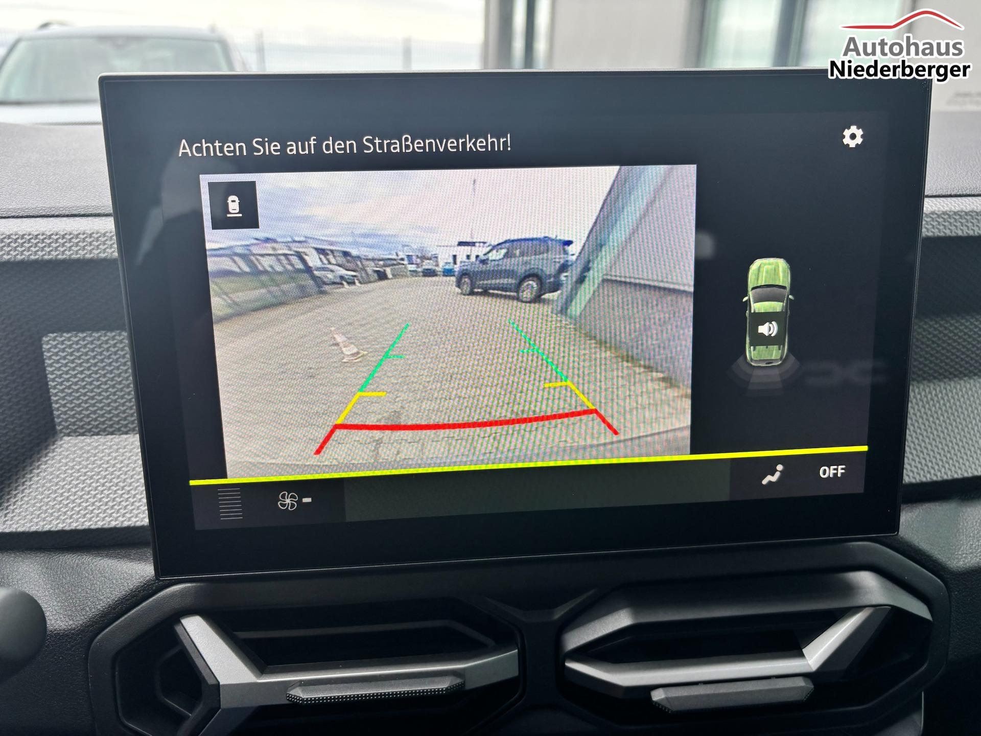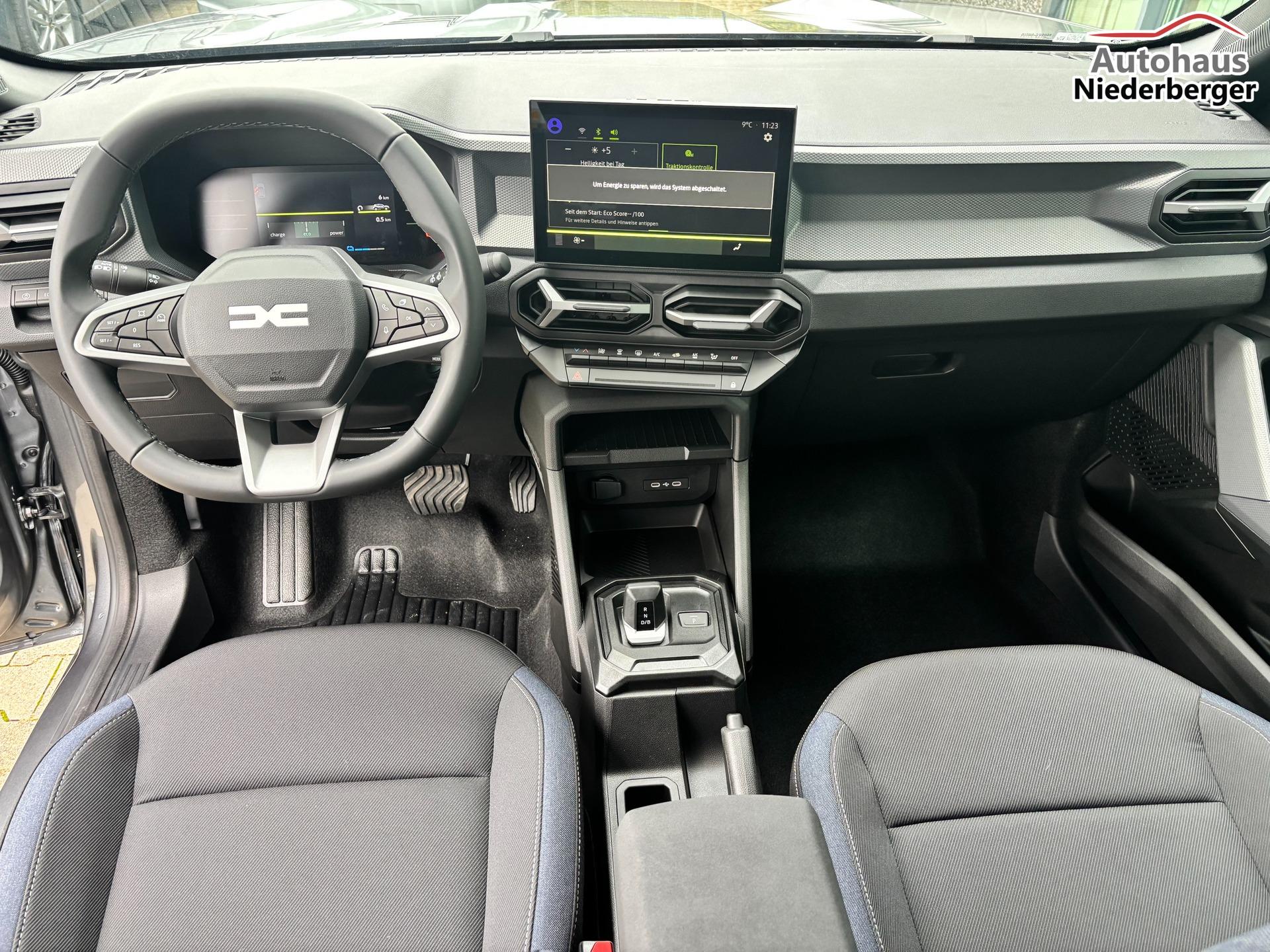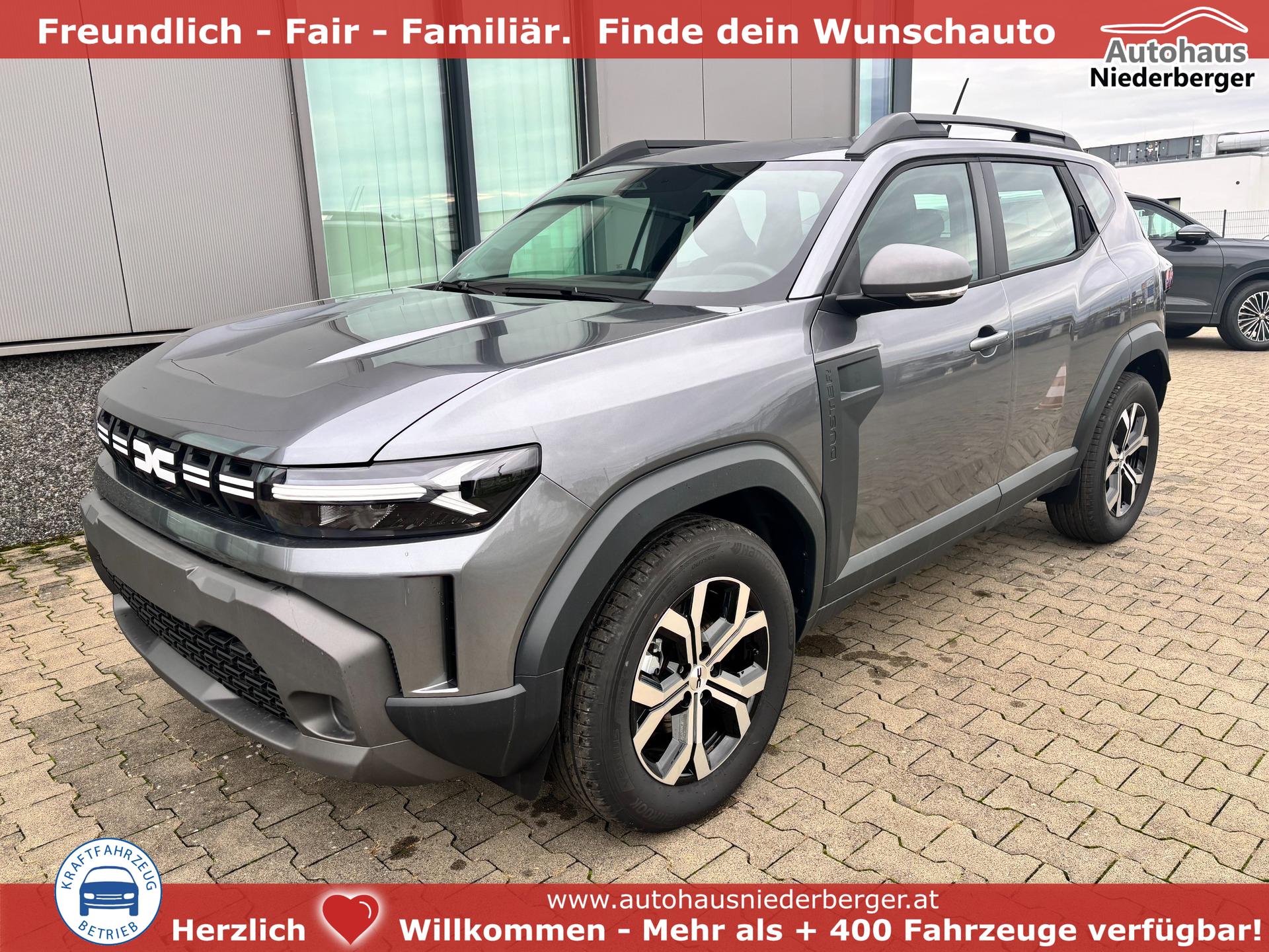 Dacia Duster Expression 1.6 HYBRID 140 AUTOMATIK (Benzin/Elektro), 17" Alufelgen "TERGAN", Klimaanlage, Rückfahrkamera, Parksensoren hinten, LED-Scheinwerfer, Radio Media 10" + Smartphone-Spiegelung, Armlehne, Dachreling, Tempomat, Verkehrszeichenerkennung, Spurassistent