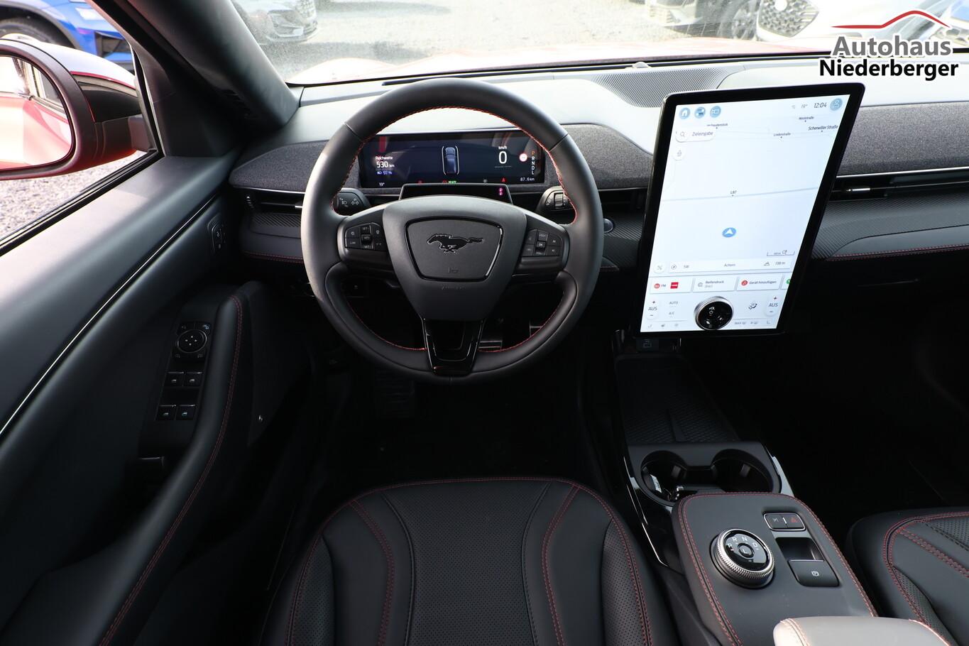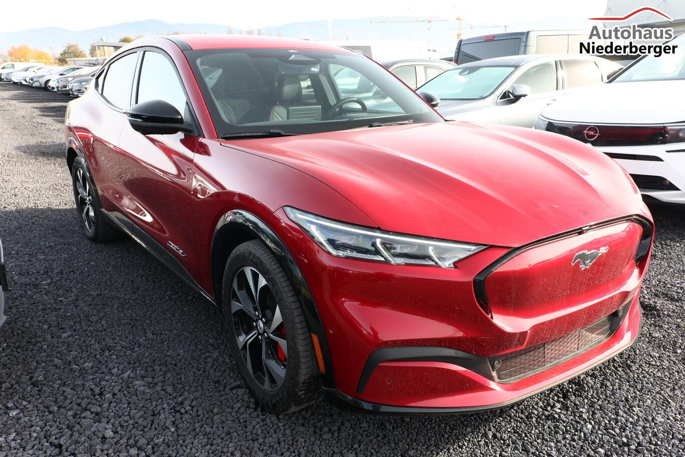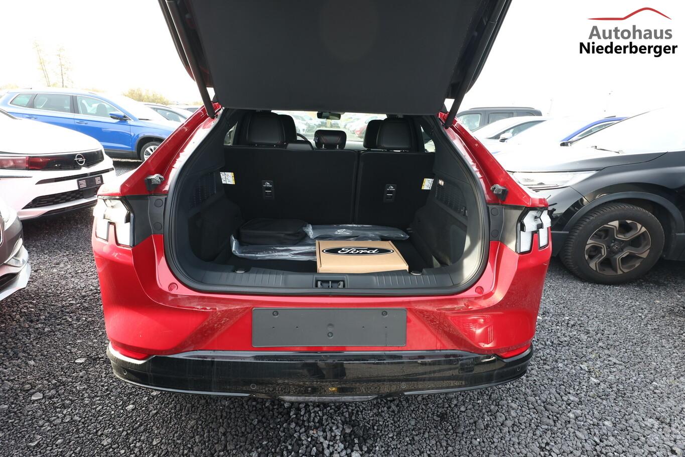 Technologie-Paket Plus (9 Lautsprecher / Sound-System Bang & Olufsen Play / Subwoofer / Sitz vorn links elektr. verstellbar (10-fach, mit Memory) / Sitz vorn rechts elektr. verstellbar (10-fach) / Kofferraumdeckel / Heckklappe elektr. betätigt (Öffnung, sensorgesteuert)), Ambiente-Beleuchtung, Einschaltautomatik für Fahrlicht, Fahrassistenz-System: Müdigkeitserkennung, Fahrassistenz-System: Verkehrszeichenerkennung, Fahrmodusschalter, LM-Felgen 19", Mittelarmlehne vorn, Reifen 235/55 R19, Rückfahrkamera 360°, Sitzbezug / Polsterung: Kunstleder mit Ziernähte (rot), Ausstattungs-Paket: Ford Co-Pilot 360 (Fahrassistenz-System: Intelligent Drive Assist, teilautomatisierte Fahrassistenz / Fahrassistenz-System: Pre-Collision-System mit Querverkehrs-Assistent (Kamera- und Radar-basiert) / Intelligenter Geschwindigkeits-Begrenzer / Fahrassistenz-System: Pre-Collision-System / Adaptive Geschwindigkeitsregelanlage (Adaptive Cruise Control / ACC) / Fahrassistenz-System: Auffahrwarnsystem / Fahrassistenz-System: Stauassistent inkl. Stop&Go-Funktion / Fahrassistenz-System: Totwinkel-Assistent, Cross Traffic Alert und Notbremsfunktion / Fahrassistenz-System: Ausweich-Assistent (Evasive Steer Assistance, ESA) / Fahrassistenz-System: Fahrspur-Pilot / Fahrassistenz-System: Spurhalteassistent), Audio-Navigationssystem Ford SD (mit Ford SYNC 4 und Touchscreen-Farbdisplay) (6 Lautsprecher / Farbdisplay in Mittelkonsole (15,5 Zoll) / Radioempfang digital (DAB)), Außenspiegel elektr. verstell- und heizbar (Bodenleuchte im Außenspiegel / Außenspiegel mit Blind Spot Informations System / Blinkleuchte in Außenspiegel integriert / Fahrassistenz-System: Totwinkel-Assistent, Cross Traffic Alert und Notbremsfunktion), Matrix-LED-Scheinwerfer (Tagfahrlicht LED), Intelligent Protection System (IPS) (3-Punkt-Sicherheitsgurt hinten / Gurtstraffer / Warnanlage für Sicherheitsgurte vorn / Airbag Fahrer-/Beifahrerseite / Knieairbag Fahrerseite / Kopf-Schulter-Airbag vorn und hinten / Seitenairbag 2.Sitzreihe / Seitenairbag vorn), Akustischer Fußgängerschutz (Außensound, AVAS), Bremssättel Rot lackiert, Dachhimmel Stoff, dunkel, Elektr. Bremskraftverteilung (EBD), Elektromotor 216 kW (cont. 100 kW), FordPass Connect inkl. eCall, HV-Batterie 99 kWh brutto / 91 netto, Induktionsladeschale für mobile Endgeräte, Innenraumfilter: Staub- und Pollenfilter, Innenspiegel mit Abblendautomatik, Karosserie: 5-türig, Kombiinstrument Digitalanzeige 10,2 Zoll, Kopfstützen hinten mechan. verstellbar (3 Stück), Ladekabel mit Typ 2-Stecker (Mode 3), Lenkrad (Kunstleder), Lenkrad heizbar, Mittelarmlehne hinten, Parkbremse elektrisch mit Auto-Hold-Funktion, Pedale Aluminium, Radstand 2984 mm, USB-Anschluss, Anti-Blockier-System (ABS), Fahrassistenz-System: Post-Collision-System, Antriebsart: Heckantrieb, Getriebe für Elektrofahrzeug, Klimaautomatik 2-Zonen, Airbag Beifahrerseite abschaltbar, Fensterheber elektrisch vorn + hinten mit Komfortschließung, Isofix-Aufnahmen für Kindersitz, Rücksitzlehne geteilt/klappbar (60:40), Sitzheizung vorn, Zentralverriegelung mit Fernbedienung, Frontscheibe heizbar, Servolenkung elektrisch, Außenspiegel elektr. anklappbar, Fahrassistenz-System: Fernlichtassistent (Scheinwerfer mit Abblendautomatik), Heckleuchten LED, Scheibenwischer mit Regensensor, Fahrassistenz-System: aktiver Park-Assistent Plus, Ein- und Auspark-Funktion und teilautomatisierter Fahrzeugführung, Parkpilotsystem vorn und hinten, Reifendruck-Kontrollsystem