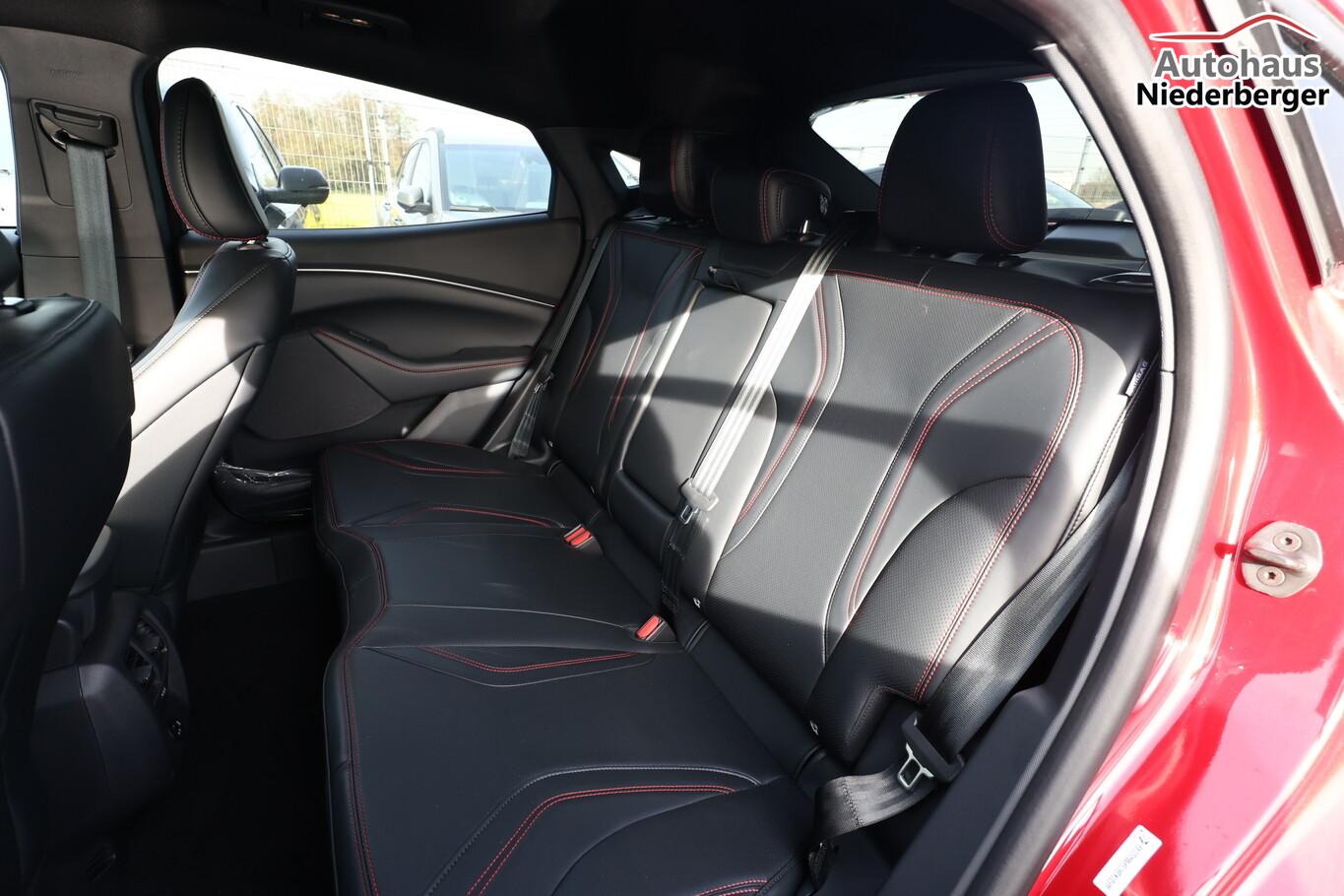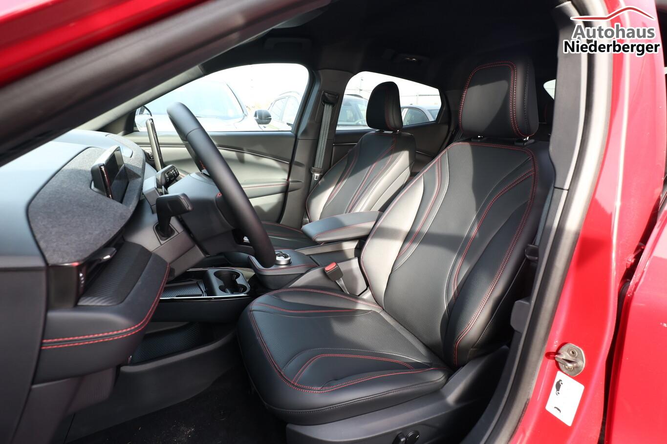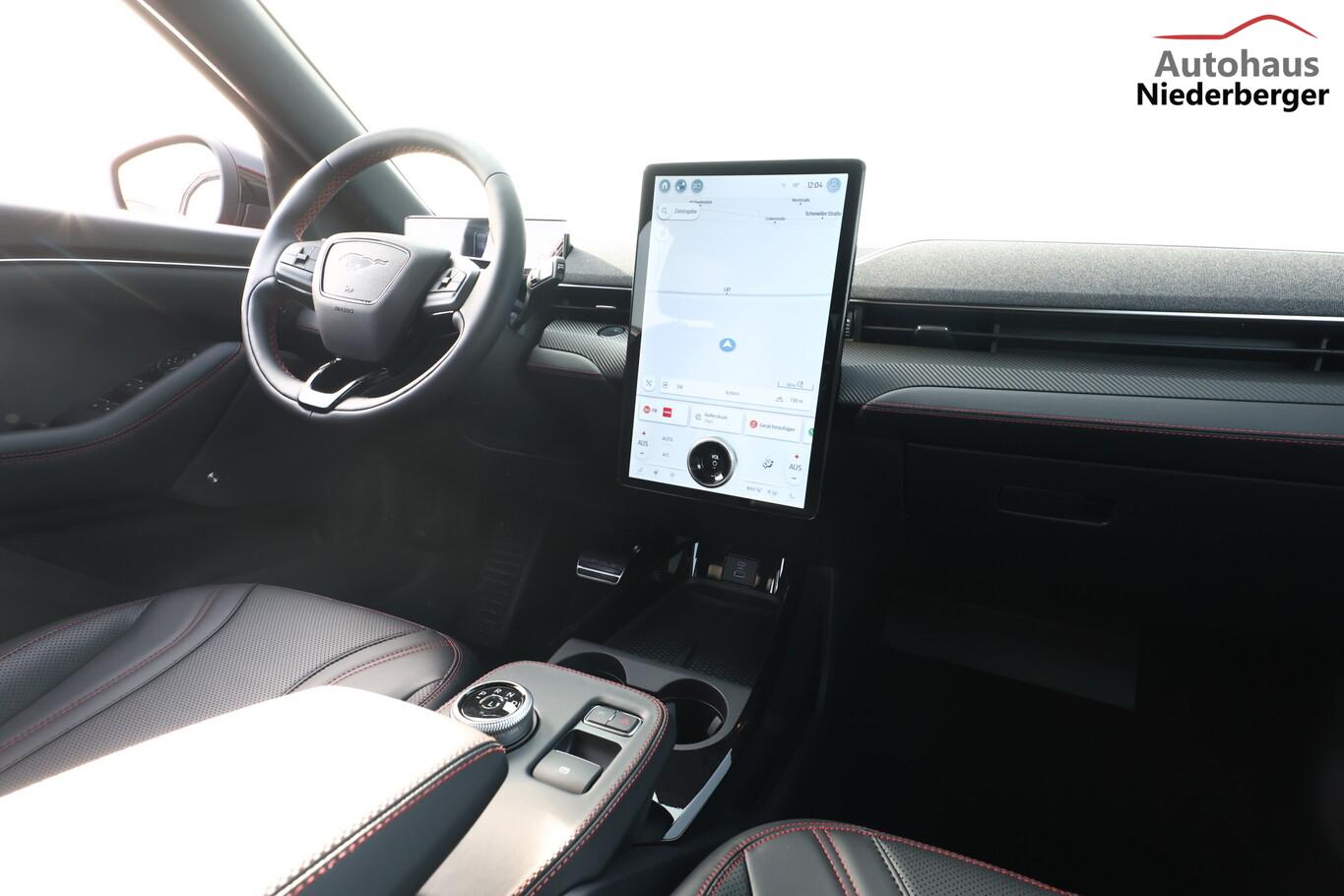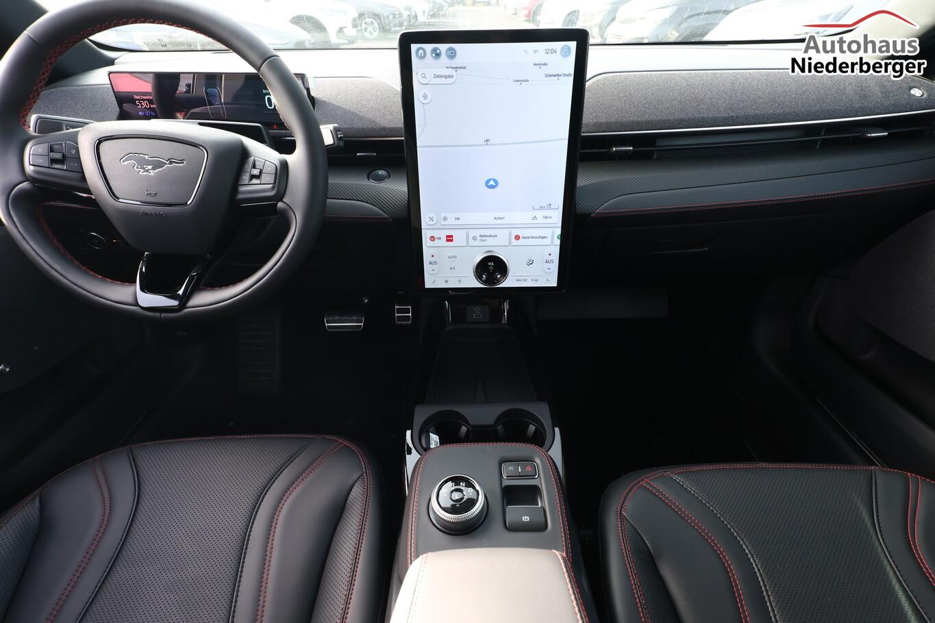 Technologie-Paket Plus (9 Lautsprecher / Sound-System Bang & Olufsen Play / Subwoofer / Sitz vorn links elektr. verstellbar (10-fach, mit Memory) / Sitz vorn rechts elektr. verstellbar (10-fach) / Kofferraumdeckel / Heckklappe elektr. betätigt (Öffnung, sensorgesteuert)), Ambiente-Beleuchtung, Einschaltautomatik für Fahrlicht, Fahrassistenz-System: Müdigkeitserkennung, Fahrassistenz-System: Verkehrszeichenerkennung, Fahrmodusschalter, LM-Felgen 19", Mittelarmlehne vorn, Reifen 235/55 R19, Rückfahrkamera 360°, Sitzbezug / Polsterung: Kunstleder mit Ziernähte (rot), Ausstattungs-Paket: Ford Co-Pilot 360 (Fahrassistenz-System: Intelligent Drive Assist, teilautomatisierte Fahrassistenz / Fahrassistenz-System: Pre-Collision-System mit Querverkehrs-Assistent (Kamera- und Radar-basiert) / Intelligenter Geschwindigkeits-Begrenzer / Fahrassistenz-System: Pre-Collision-System / Adaptive Geschwindigkeitsregelanlage (Adaptive Cruise Control / ACC) / Fahrassistenz-System: Auffahrwarnsystem / Fahrassistenz-System: Stauassistent inkl. Stop&Go-Funktion / Fahrassistenz-System: Totwinkel-Assistent, Cross Traffic Alert und Notbremsfunktion / Fahrassistenz-System: Ausweich-Assistent (Evasive Steer Assistance, ESA) / Fahrassistenz-System: Fahrspur-Pilot / Fahrassistenz-System: Spurhalteassistent), Audio-Navigationssystem Ford SD (mit Ford SYNC 4 und Touchscreen-Farbdisplay) (6 Lautsprecher / Farbdisplay in Mittelkonsole (15,5 Zoll) / Radioempfang digital (DAB)), Außenspiegel elektr. verstell- und heizbar (Bodenleuchte im Außenspiegel / Außenspiegel mit Blind Spot Informations System / Blinkleuchte in Außenspiegel integriert / Fahrassistenz-System: Totwinkel-Assistent, Cross Traffic Alert und Notbremsfunktion), Matrix-LED-Scheinwerfer (Tagfahrlicht LED), Intelligent Protection System (IPS) (3-Punkt-Sicherheitsgurt hinten / Gurtstraffer / Warnanlage für Sicherheitsgurte vorn / Airbag Fahrer-/Beifahrerseite / Knieairbag Fahrerseite / Kopf-Schulter-Airbag vorn und hinten / Seitenairbag 2.Sitzreihe / Seitenairbag vorn), Akustischer Fußgängerschutz (Außensound, AVAS), Bremssättel Rot lackiert, Dachhimmel Stoff, dunkel, Elektr. Bremskraftverteilung (EBD), Elektromotor 216 kW (cont. 100 kW), FordPass Connect inkl. eCall, HV-Batterie 99 kWh brutto / 91 netto, Induktionsladeschale für mobile Endgeräte, Innenraumfilter: Staub- und Pollenfilter, Innenspiegel mit Abblendautomatik, Karosserie: 5-türig, Kombiinstrument Digitalanzeige 10,2 Zoll, Kopfstützen hinten mechan. verstellbar (3 Stück), Ladekabel mit Typ 2-Stecker (Mode 3), Lenkrad (Kunstleder), Lenkrad heizbar, Mittelarmlehne hinten, Parkbremse elektrisch mit Auto-Hold-Funktion, Pedale Aluminium, Radstand 2984 mm, USB-Anschluss, Anti-Blockier-System (ABS), Fahrassistenz-System: Post-Collision-System, Antriebsart: Heckantrieb, Getriebe für Elektrofahrzeug, Klimaautomatik 2-Zonen, Airbag Beifahrerseite abschaltbar, Fensterheber elektrisch vorn + hinten mit Komfortschließung, Isofix-Aufnahmen für Kindersitz, Rücksitzlehne geteilt/klappbar (60:40), Sitzheizung vorn, Zentralverriegelung mit Fernbedienung, Frontscheibe heizbar, Servolenkung elektrisch, Außenspiegel elektr. anklappbar, Fahrassistenz-System: Fernlichtassistent (Scheinwerfer mit Abblendautomatik), Heckleuchten LED, Scheibenwischer mit Regensensor, Fahrassistenz-System: aktiver Park-Assistent Plus, Ein- und Auspark-Funktion und teilautomatisierter Fahrzeugführung, Parkpilotsystem vorn und hinten, Reifendruck-Kontrollsystem