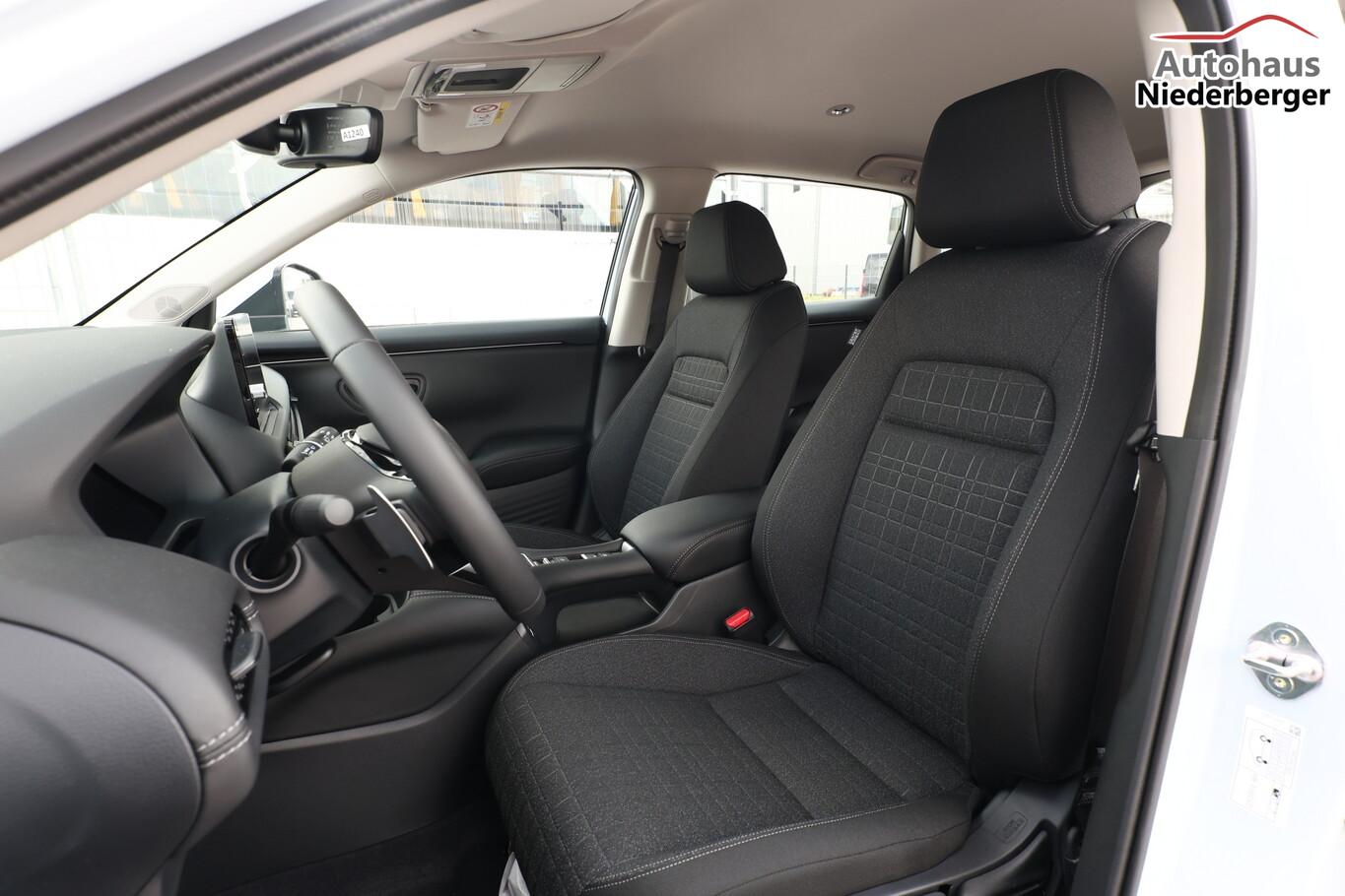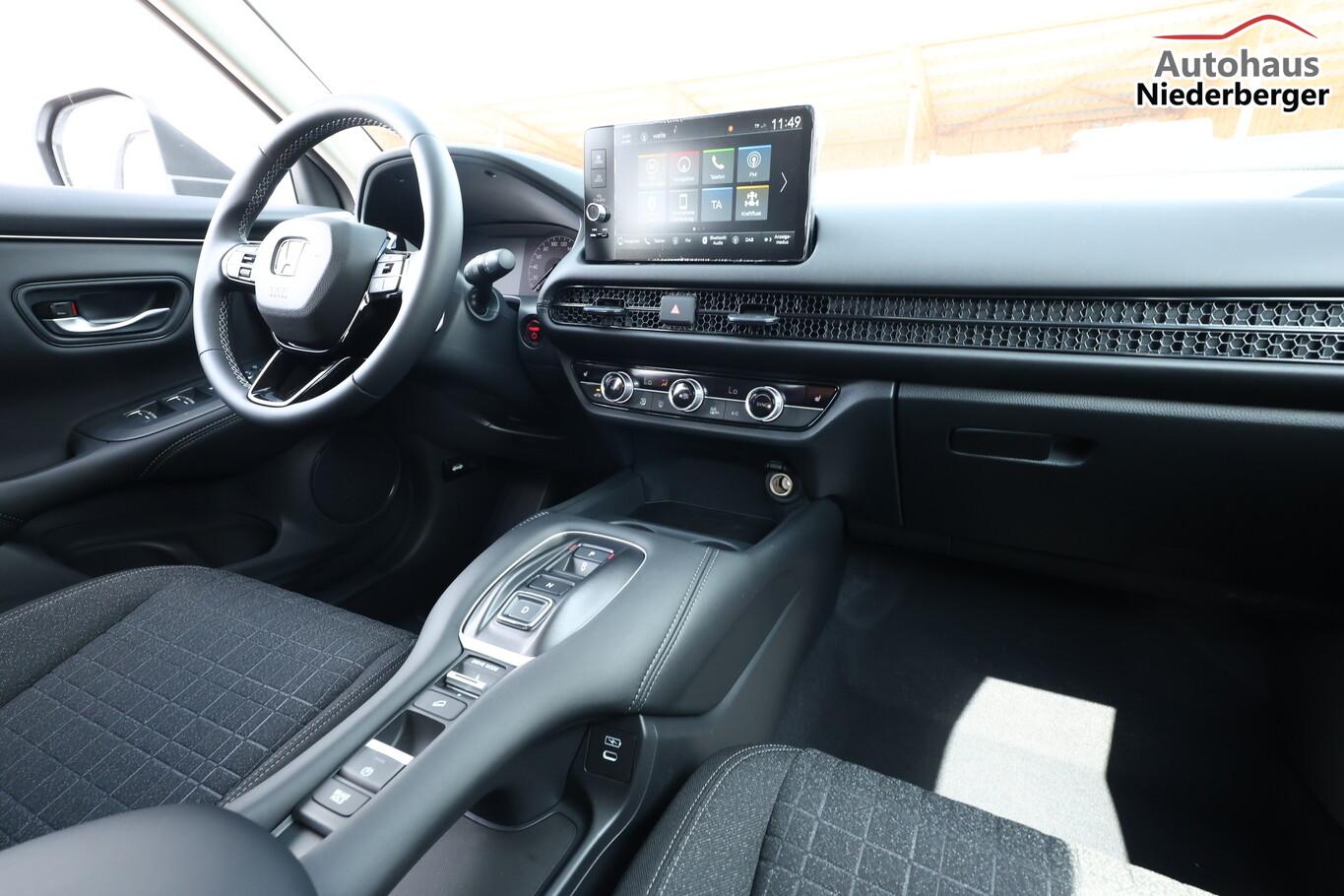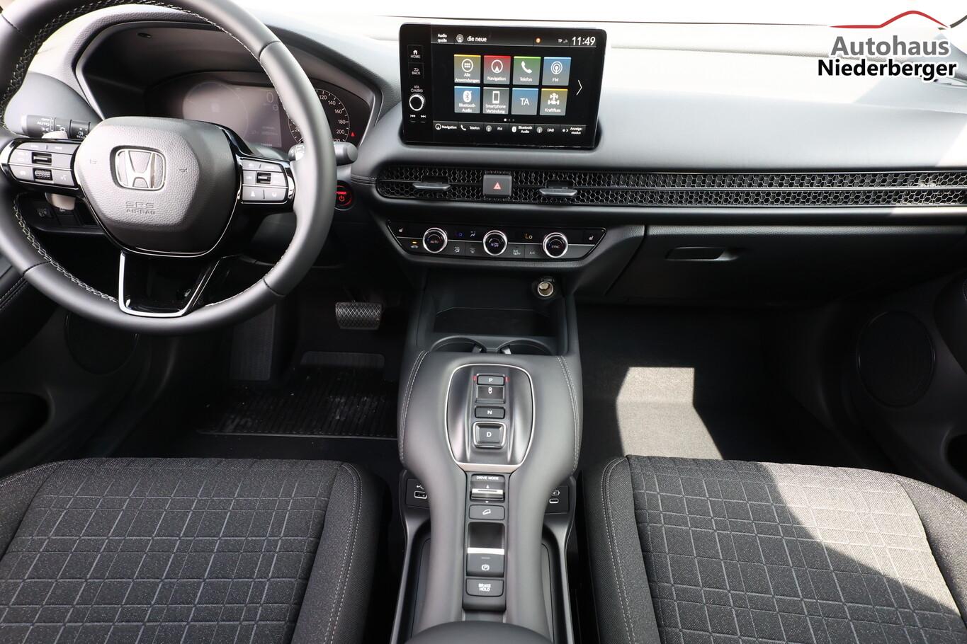 Fahrassistenz-System: Agile Handling Assist (AHA), Gepäckraumbeleuchtung, LM-Felgen 18", Reifen 225/55 R18, Schadstoffarm nach Abgasnorm Euro 6e (EU6 EA), 8 Lautsprecher, Aktive Kopfstützen vorn, Brillenhalter im Dachhimmel integriert, Elektr. Bremskraftverteilung, Hybrid 135 kW (Motor 2,0 Ltr. - 105 kW), Innenraumfilter: Pollenfilter, Innenspiegel mit Abblendautomatik, Intelligenter Geschwindigkeits-Begrenzer (ISL), Karosserie: 5-türig, Kombiinstrument Digitalanzeige 7 Zoll, Leseleuchten hinten, Leseleuchten vorn, Mittelarmlehne hinten, Notbremssignal, Otto-Partikelfilter (OPF), Parkbremse elektrisch, Radstand Standard, Sitz vorn links höhenverstellbar, Sitzbezug / Polsterung: Stoff, Sonnenblenden mit Make-up-Spiegel, Sonnenblenden mit Spiegel (beleuchtet), Steckdose (12V-Anschluß) im Koffer-/Laderaum, Freisprecheinrichtung (Bluetooth) mit Sprachsteuerung, Infotainment-System: Honda Connect mit 9" Touchscreen / Navigationssystem / Internetbasierende Dienste / DAB-Tuner, Smartphone Schnittstelle (Apple CarPlay & Android Auto), USB-Ladeanschluß vorn, Bremsassistent, Fahrassistenz-System: Kollisionswarnsystem mit Bremseingriff und Beschleunigungskontrolle (LSBC), Fahrassistenz-System: Kollisionswarnsystem mit Bremseingriff und Fußgängererkennung (CMBS), Antriebsart: Frontantrieb, Wegfahrsperre, Getriebe Automatik stufenlos - ECVT, Klimaautomatik 2-Zonen, Airbag Beifahrerseite abschaltbar, Fensterheber elektrisch vorn und hinten, mit Auf-/Ab-Automatik, Isofix-Aufnahmen für Kindersitz, Knieairbag Fahrerseite, Kopf-Airbag-System, Mittelarmlehne vorn, Rücksitzlehne geteilt/klappbar, Seitenairbag hinten, Seitenairbag vorn, Seitenairbag vorn mitte (Center-Airbag), Sitzheizung vorn, Smart Entry & Start (schlüsselloses Zugangs-System), Zentralverriegelung mit Komfortverriegelung, Fahrassistenz-System: Berganfahrhilfe, Fahrassistenz-System: Intelligente Geschwindigkeitsanpassung (Tempomat) mit Abstandsregelung I-ACC, Fahrassistenz-System: Verkehrszeichenerkennung, Rückfahrkamera, Fahrassistenz-System: Sicherheitssystem mit automatischem Notruf (ERA GLONASS / eCall), Lenkrad (Leder), Multifunktion für Lenkrad, Servolenkung elektronisch gesteuert, Außenspiegel elektr. anklappbar, Außenspiegel elektr. verstell- und heizbar, beide, Autom. Begleitfunktion der Beleuchtung (Coming Home, Leaving Home), Automatische Fahrlichtschaltung / Lichtsensor, Fahrassistenz-System: Fernlichtassistent (HSS), Fahrassistenz-System: Totwinkel-Assistent, Heckleuchten LED, Scheibenwischer mit Regensensor, Scheinwerfer LED, Tagfahrlicht LED, Einparkhilfe vorn und hinten, Anzeige für Reifendruck im Display, Fahrassistenz-System: Spurhalteassistent (LKAS / LDW), Fahrassistenz-System: Spurverlassenswarnung (Lane Departure Warning, LDW), Alarmanlage