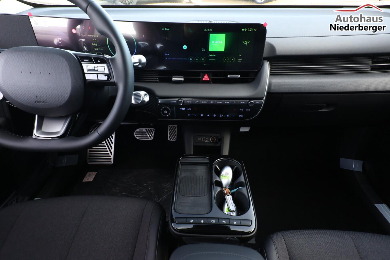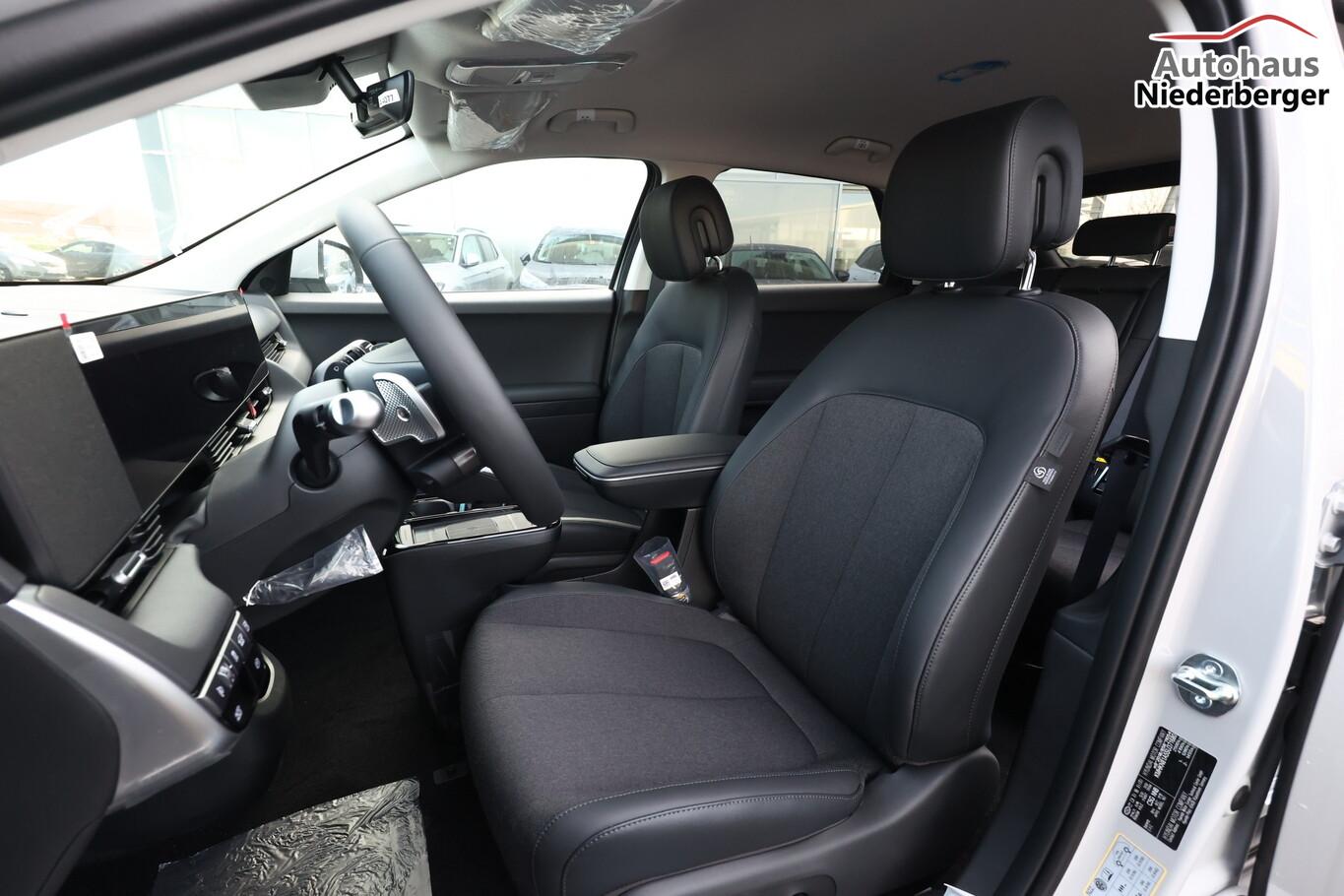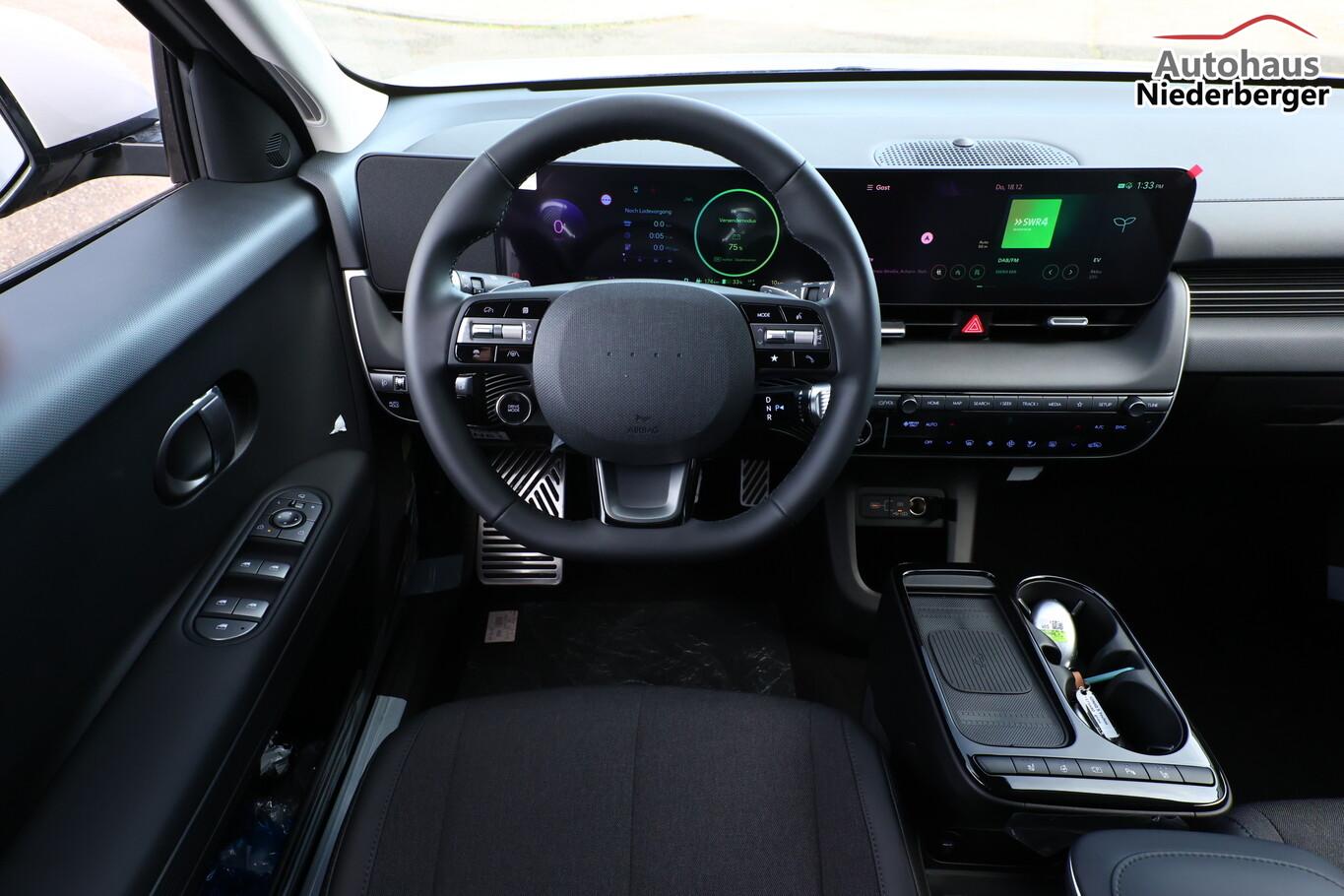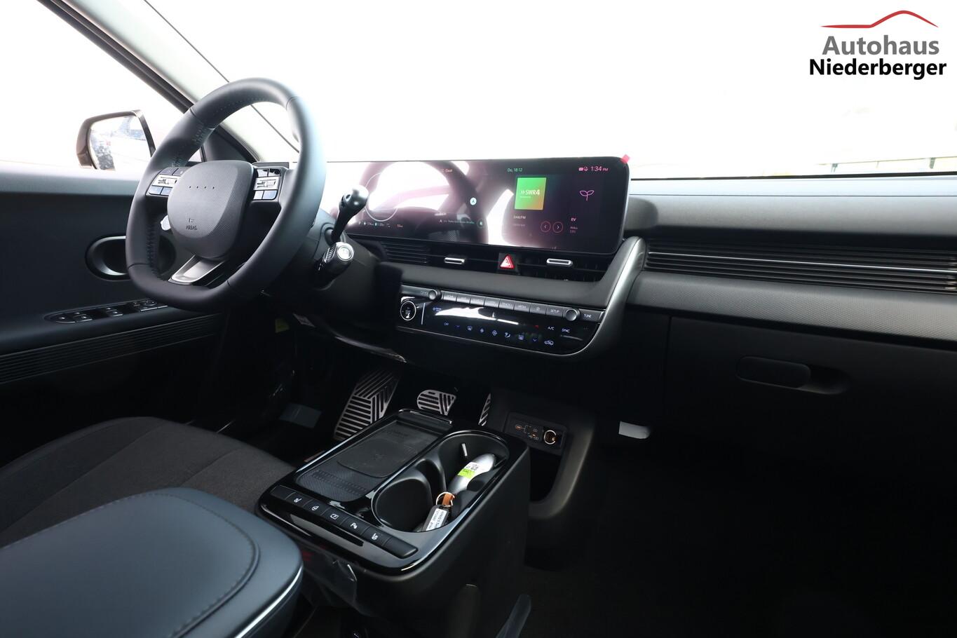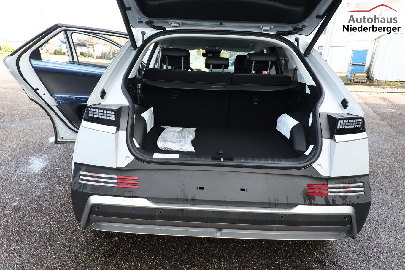Ambientebeleuchtung, Fahrassistenz-System: Spurwechselassistent, Fahrassistenz-System: Totwinkel-Assistent (BCA), Kein Ladekabel vorhanden, LED-Scheinwerfer, LM-Felgen 19 Zoll, Reifen 235/55 R19, SmartLink (Apple CarPlay & Android Auto), Dachspoiler (grosse Ausführung) (3. Bremsleuchte), Audio-Navigationssystem (Touchscreen-Farbdisplay (12,25 Zoll)), Lenkrad (Leder) 3-Speichen (Lenkrad heizbar / Lenkrad (Leder) / Lenkrad (Leder) mit Multifunktion), Fahrassistenz-System: Einparkhilfe vorn und hinten (Einparkhilfe hinten), Fahrassistenz-System: Autonome Notbremsfunktion inkl. Frontkollisionswarnung (FCA) (Fahrassistenz-System: Ausweich-Assistent (Evasive Steer Assistance, ESA) / Fahrassistenz-System: Ausweich-Assistent Fahrtrichtung (FCA-LS) / Fahrassistenz-System: Ausweich-Assistent Gegenverkehr (FCA-LO) / Fahrassistenz-System: Autonome Notbremsfunktion inkl. Abbiegefunktion (FCA-JT) / Fahrassistenz-System: Autonome Notbremsfunktion inkl. Fahrradfahrererkennung (FCA-Cyc.) / Fahrassistenz-System: Autonome Notbremsfunktion inkl. Fußgängererkennung (FCA-Ped.) / Fahrassistenz-System: Querverkehrs-Assistent vorn (Kreuzungs-Assistent)), Außenspiegel Unterschale schwarz lackiert, Batterieheizsystem, Elektromotor 168 kW (cont. 56 kW), Fahrassistenz-System: Autobahnassistent 2.0 (Highway Driving Assist, HDA 2.0), Fahrassistenz-System: Insassenalarm (RSA), Fahrassistenz-System: Multikollisionsbremse (Multi Collision Brake), Geschwindigkeits-Begrenzeranlage (Speed-Limiter), Heckscheibe heizbar, Heckscheibenwischer, HV-Batterie 84 kWh (Lithium-Ionen), Induktionsladeschale für Smartphone, Innenspiegel mit Abblendautomatik, Instrumentenanzeige Farbdisplay 12,25 Zoll, Karosserie: 5-türig, Kopfstützen hinten verstellbar, Ladevorrichtung On-Board-Lader (3-Phasen), Lendenwirbelstütze Sitz vorn links, elektr. verstellbar, Lendenwirbelstütze Sitz vorn rechts, elektr. verstellbar, Lenksäule (Lenkrad) höhenverstellbar, Lenksäule (Lenkrad) längsverstellbar, Mittelarmlehne hinten, Parkbremse elektrisch (EPB), Pedale Aluminium, Radioempfang digital (DAB+), Stoßfänger vorn mit Applikationen (schwarz), Türgriffe außen ausfahrbar / versenkbar, elektrisch, Türgriffe außen Wagenfarbe, Wärmepumpe für Heizungs-/Klimaanlage, Audiosystem: Radio RDS, USB-Anschluss (Typ C), USB-Anschluss hinten (Typ C), USB-Anschluss Mittelkonsole, Anti-Blockier-System (ABS), Antriebsart: Heckantrieb, Elektron. Stabilitätskontrolle (ESC) mit Bremsassistent, Getriebe für Elektrofahrzeug, Klimaautomatik 2-Zonen, Airbag Beifahrerseite, Airbag Beifahrerseite abschaltbar, Airbag Fahrerseite, Fensterheber elektrisch vorn und hinten, mit Auf-/Ab-Automatik, Isofix-Aufnahmen für Kindersitz, Kopf-Airbag-System, Mittelarmlehne vorn verschiebbar, Rücksitzlehne geteilt/klappbar, Seitenairbag vorn, Seitenairbag vorn mitte (Central Airbag), Sitz vorn links elektr. verstellbar, Sitz vorn rechts elektr. verstellbar, Sitzbezug / Polsterung: Stoff/Leder, Sitzheizung hinten, Sitzheizung vorn, Smart-Key, Verglasung hinten abgedunkelt (Privacy Glass), Zentralverriegelung mit Fernbedienung, Heckklappe/-Deckel elektr. betätigt (Öffnung, sensorgesteuert), Fahrassistenz-System: Berganfahrhilfe, Fahrassistenz-System: Verkehrszeichenerkennung, erweitert (Geschwindigkeits-Regel-/Begrenzeranlage), Geschwindigkeits-Regelanlage (Tempomat) mit Abstandsregelung ACC, Navigationsbasierte Adaptive Geschwindigkeitsregelanlage (Tempomat) mit Abstandsregelung (NSCC), Rückfahrkamera, Fahrassistenz-System: Sicherheitssystem mit automatischem Notruf (ERA GLONASS / eCall), Service-System: Remote Services (Blue Link), Lenkrad mit Schaltwippen, Außenspiegel elektr. anklappbar, Außenspiegel elektr. verstell- und heizbar, beide, Einschaltautomatik für Fahrlicht / Lichtsensor, Fahrassistenz-System: Fernlichtassistent, Heckleuchten LED (Pixel-Design), Scheibenwischer mit Regensensor, Fahrassistenz-System: aktiver Spurhalteassistent (LKAS, Lane Keep Assist System), Fahrassistenz-System: Aufmerksamkeits-Assistent, Fahrassistenz-System: Spurfolgeassistent (Lane Following Assist, LFA), Reifendruck-Kontrollsystem, Start-Stop-Knopf
