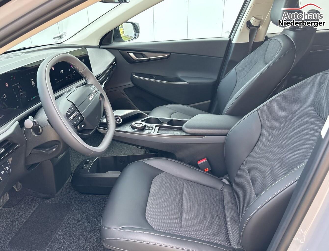 Wärmepumpe für Heizungs-/Klimaanlage, Ablagetaschen an Rückseite der Vordersitzlehnen, Auto-Hold-Funktion, Fahrassistenz-System: Autobahnassistent (Highway Driving Assist), Fahrassistenz-System: Autonome Notbremsfunktion inkl. Frontkollisionswarnung (FCA 1.5), Fahrassistenz-System: Intelligenter Geschwindigkeitsbegrenzungsassistent (ISLA), Fahrassistenz-System: Verkehrszeichenerkennung, Frunk (Frontkofferraum) beleuchtet, Gepäckraumabdeckung, Gepäckraumboden variabel, Heckklappe elektr. betätigt, Kindersicherung elektrisch, Kombiinstrument digital (12,3"), Kopf-Airbag-System, Lendenwirbelstütze Sitz vorn rechts, elektr. verstellbar, Lenkrad (Kunstleder), LM-Felgen 19", Premium-Relaxation-Sitz (Fahrer), PTC-Zuheizer, Reifen 235/55 R19, Reifendruck-Kontrollsystem, Scheinwerfer LED, Sitz vorn links elektr. verstellbar mit Memory-Funktion, Sonnenblenden mit Spiegel (beleuchtet), Verglasung hinten abgedunkelt (Privacy Glass), Wärmepumpe, Wischwasser-Standanzeige, Aktives Bremslicht (ESS), Außenspiegel schwarz lackiert, Batterieheizsystem, Elektromotor 168 kW (cont. 56 kW), Fahrassistenz-System: Ausstiegswarnung (Safe Exit Warning, SEW), Fahrassistenz-System: Insassenalarm (Rear Occopant Alert, ROA), Fahrassistenz-System: Multikollisionsbremse (Multi Collision Brake), HV-Batterie 84 kWh netto, Induktionsladeschale für Smartphone, Innenspiegel mit Abblendautomatik, Karosserie: 5-türig, Lendenwirbelstütze Sitz vorn links, elektr. verstellbar, Lenkrad heizbar, Lenksäule (Lenkrad) höhen-/längsverstellbar, Mittelarmlehne hinten mit Getränkehalter, Parkbremse elektrisch, Radstand 2900 mm, Sitz vorn rechts mech. höhenverstellbar, Türgriffe außen ausfahrbar / versenkbar, elektrisch, Audio-Navigationssystem KIA (12,3"-Display), Freisprecheinrichtung (Bluetooth) mit Sprachsteuerung, Smartphone kabellose Schnittstelle (Apple CarPlay & Android Auto), USB-Anschluss im Fond, USB-Anschluss Mittelkonsole, Anti-Blockier-System (ABS), Antriebsart: Heckantrieb, Elektron. Stabilitäts-Programm (ESP / ESC), Getriebe für Elektrofahrzeug, Klimaautomatik 2-Zonen, Airbag Fahrer-/Beifahrerseite, Durchladeeinrichtung (Mittelarmlehne hinten), Fensterheber elektrisch vorn + hinten, Isofix-Aufnahmen für Kindersitz, Rücksitzbank geteilt/klappbar (60:40), Schließ-/Startsystem Smart-Key, Seitenairbag, Seitenairbag vorn mitte (Center-Airbag), Sitzbezug / Polsterung: vegane Leder-Optik schwarz, Sitzheizung vorn, Adaptive Geschwindigkeits-Regelanlage mit Stop&Go-Funktion, Fahrassistenz-System: Berganfahr-Assistent, Rückfahrkamera, Fahrassistenz-System: Sicherheitssystem mit automatischem Notruf (ERA GLONASS / eCall), Lenkrad mit Multifunktion, Lenkrad mit Schaltwippen, Außenspiegel elektr. anklappbar, Außenspiegel elektr. verstell- und heizbar, beide, Blinkleuchte in Außenspiegel integriert, Einschaltautomatik für Fahrlicht, Fahrassistenz-System: aktiver Totwinkel-Assistent (BCA-R), Fahrassistenz-System: Fernlichtassistent, Heckleuchten LED, Scheibenwischer mit Regensensor, Tagfahrlicht LED, Einparkhilfe vorn und hinten, Fahrassistenz-System: aktiver Spurhalteassistent (LKAS, Lane Keep Assist System), Fahrassistenz-System: Müdigkeitserkennungs-Sensor (Driver Attention Warning, DAW), Fahrassistenz-System: Querverkehrs-Assistent mit Notbremsfunktion (RCCA), Fahrassistenz-System: Spurfolgeassistent (Lane Following Assist, LFA)