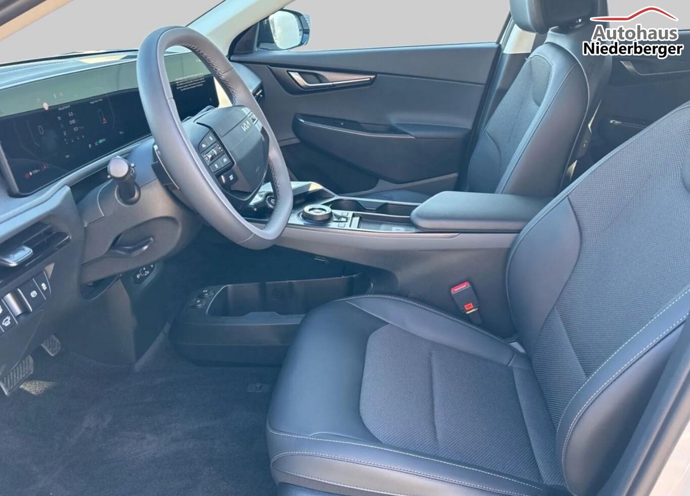 Wärmepumpe für Heizungs-/Klimaanlage, Ablagetaschen an Rückseite der Vordersitzlehnen, Auto-Hold-Funktion, Fahrassistenz-System: Autobahnassistent (Highway Driving Assist), Fahrassistenz-System: Autonome Notbremsfunktion inkl. Frontkollisionswarnung (FCA 1.5), Fahrassistenz-System: Intelligenter Geschwindigkeitsbegrenzungsassistent (ISLA), Fahrassistenz-System: Verkehrszeichenerkennung, Frunk (Frontkofferraum) beleuchtet, Gepäckraumabdeckung, Gepäckraumboden variabel, Heckklappe elektr. betätigt, Kindersicherung elektrisch, Kombiinstrument digital (12,3"), Kopf-Airbag-System, Lendenwirbelstütze Sitz vorn rechts, elektr. verstellbar, Lenkrad (Kunstleder), LM-Felgen 19", Premium-Relaxation-Sitz (Fahrer), PTC-Zuheizer, Reifen 235/55 R19, Reifendruck-Kontrollsystem, Scheinwerfer LED, Sitz vorn links elektr. verstellbar mit Memory-Funktion, Sonnenblenden mit Spiegel (beleuchtet), Verglasung hinten abgedunkelt (Privacy Glass), Wärmepumpe, Wischwasser-Standanzeige, Aktives Bremslicht (ESS), Außenspiegel schwarz lackiert, Batterieheizsystem, Elektromotor 168 kW (cont. 56 kW), Fahrassistenz-System: Ausstiegswarnung (Safe Exit Warning, SEW), Fahrassistenz-System: Insassenalarm (Rear Occopant Alert, ROA), Fahrassistenz-System: Multikollisionsbremse (Multi Collision Brake), HV-Batterie 84 kWh netto, Induktionsladeschale für Smartphone, Innenspiegel mit Abblendautomatik, Karosserie: 5-türig, Lendenwirbelstütze Sitz vorn links, elektr. verstellbar, Lenkrad heizbar, Lenksäule (Lenkrad) höhen-/längsverstellbar, Mittelarmlehne hinten mit Getränkehalter, Parkbremse elektrisch, Radstand 2900 mm, Sitz vorn rechts mech. höhenverstellbar, Türgriffe außen ausfahrbar / versenkbar, elektrisch, Vehicle-to-Device Stecker (V2D), Audio-Navigationssystem KIA (12,3"-Display), Freisprecheinrichtung (Bluetooth) mit Sprachsteuerung, Smartphone kabellose Schnittstelle (Apple CarPlay & Android Auto), USB-Anschluss im Fond, USB-Anschluss Mittelkonsole, Anti-Blockier-System (ABS), Antriebsart: Heckantrieb, Elektron. Stabilitäts-Programm (ESP / ESC), Getriebe für Elektrofahrzeug, Klimaautomatik 2-Zonen, Airbag Fahrer-/Beifahrerseite, Durchladeeinrichtung (Mittelarmlehne hinten), Fensterheber elektrisch vorn + hinten, Isofix-Aufnahmen für Kindersitz, Rücksitzbank geteilt/klappbar (60:40), Schließ-/Startsystem Smart-Key, Seitenairbag, Seitenairbag vorn mitte (Center-Airbag), Sitzbezug / Polsterung: vegane Leder-Optik schwarz, Sitzheizung vorn, Adaptive Geschwindigkeits-Regelanlage mit Stop&Go-Funktion, Fahrassistenz-System: Berganfahr-Assistent, Rückfahrkamera, Fahrassistenz-System: Sicherheitssystem mit automatischem Notruf (ERA GLONASS / eCall), Lenkrad mit Multifunktion, Lenkrad mit Schaltwippen, Außenspiegel elektr. anklappbar, Außenspiegel elektr. verstell- und heizbar, beide, Blinkleuchte in Außenspiegel integriert, Einschaltautomatik für Fahrlicht, Fahrassistenz-System: aktiver Totwinkel-Assistent (BCA-R), Fahrassistenz-System: Fernlichtassistent, Heckleuchten LED, Scheibenwischer mit Regensensor, Tagfahrlicht LED, Einparkhilfe vorn und hinten, Fahrassistenz-System: aktiver Spurhalteassistent (LKAS, Lane Keep Assist System), Fahrassistenz-System: Müdigkeitserkennungs-Sensor (Driver Attention Warning, DAW), Fahrassistenz-System: Querverkehrs-Assistent mit Notbremsfunktion (RCCA), Fahrassistenz-System: Spurfolgeassistent (Lane Following Assist, LFA)