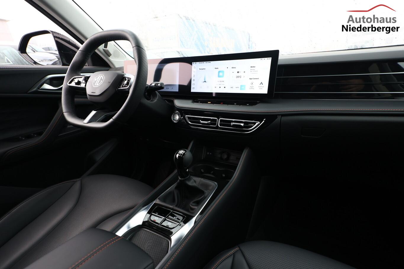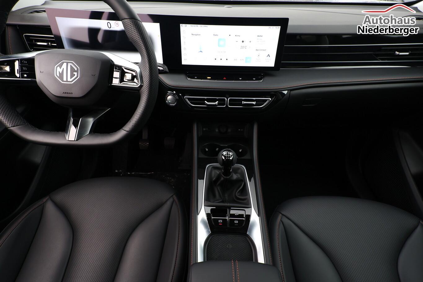 Diebstahl-Warnanlage, Einschaltautomatik für Fahrlicht, Fahrassistenz-System: Ausstiegswarnung, Fahrassistenz-System: Fernlichtassistent, Fahrassistenz-System: Frontkollisionswarnung (FCW), Fahrassistenz-System: Müdigkeitserkennungs-Sensor, Geschwindigkeits-Begrenzeranlage, Geschwindigkeits-Regelanlage (Tempomat), Heckleuchten LED, Isofix-Aufnahmen für Kindersitz an Rücksitz, Kamerasystem 360°, Kindersicherung hinten, Kombiinstrument digital, LM-Felgen 19", MG iSmart inkl. 12,3" Touchscreen, Mittelairbag vorn (Center-Airbag), Navigationssystem, Parkbremse elektrisch, Reifen 225/55 R19, Reifendruck-Kontrollsystem, Rücksitzlehne geteilt/umklappbar (60:40), Sitzbezug / Polsterung: Kunstleder, Wegfahrsperre, 3. Bremsleuchte, 8 Lautsprecher, Induktionsladeschale für Smartphone (Wireless Charging), Karosserie: 5-türig, Kopfstützen hinten mechan. verstellbar (3 Stück), Motor 1,5 Ltr. - 125 kW Turbo, Radstand Standard, Smartphone Schnittstelle (Apple CarPlay & Android Auto), Anti-Blockier-System (ABS), Fahrassistenz-System: Kollisionswarnung hinten, Antischlupfregelung (ASR), Antriebsart: Frontantrieb, Elektron. Stabilitätskontrolle (ESC), Getriebe 6-Gang, Klimaautomatik 2-Zonen, Airbag Fahrer-/Beifahrerseite, Fensterheber elektrisch hinten, Fensterheber elektrisch vorn, Seitenairbag vorn, Sitz vorn links elektr. verstellbar (mit Memory), Sitz vorn rechts elektr. verstellbar, Sitzheizung vorn, Zentralverriegelung mit Fernbedienung, Heckklappenöffnung elektrisch, Fahrassistenz-System: Berganfahrhilfe (Hill-Holder), Fahrassistenz-System: Verkehrszeichenerkennung (TSR), Notrufsystem (eCall), Außenspiegel elektr. anklappbar, Außenspiegel mit Memoryfunktion, Fahrassistenz-System: Totwinkel-Assistent (BSM), LED-Scheinwerfer mit Tagfahrlicht, Licht- und Regensensor, Einparkhilfe vorn und hinten, Fahrassistenz-System: aktiver Spurhalteassistent (LKA), Fahrassistenz-System: Autonomer Notbrems-Assistent (AEB), Fahrassistenz-System: Spurverlassenswarnung (LDW), Fahrassistenz-System: Spurwechselassistent (LCW)