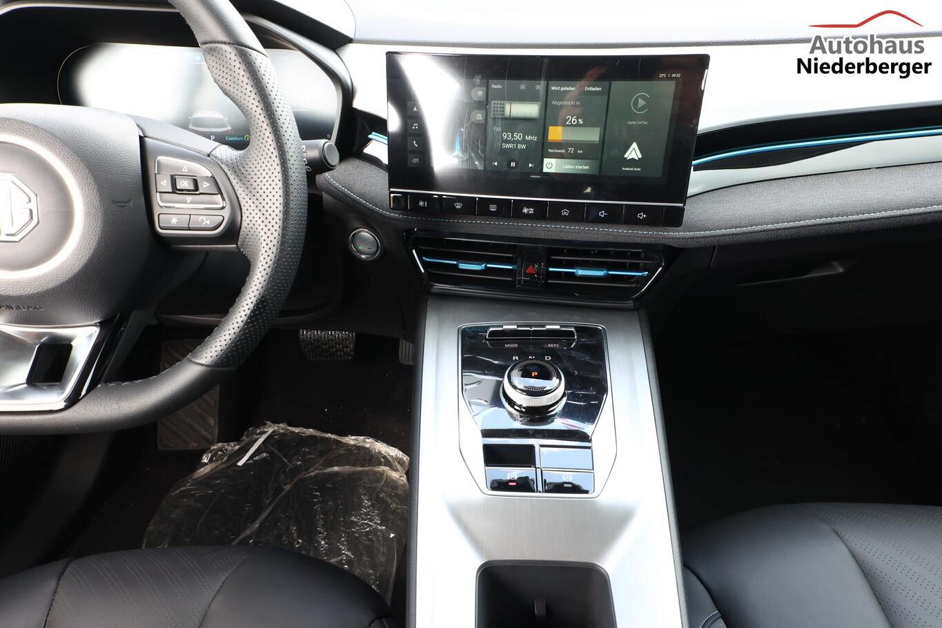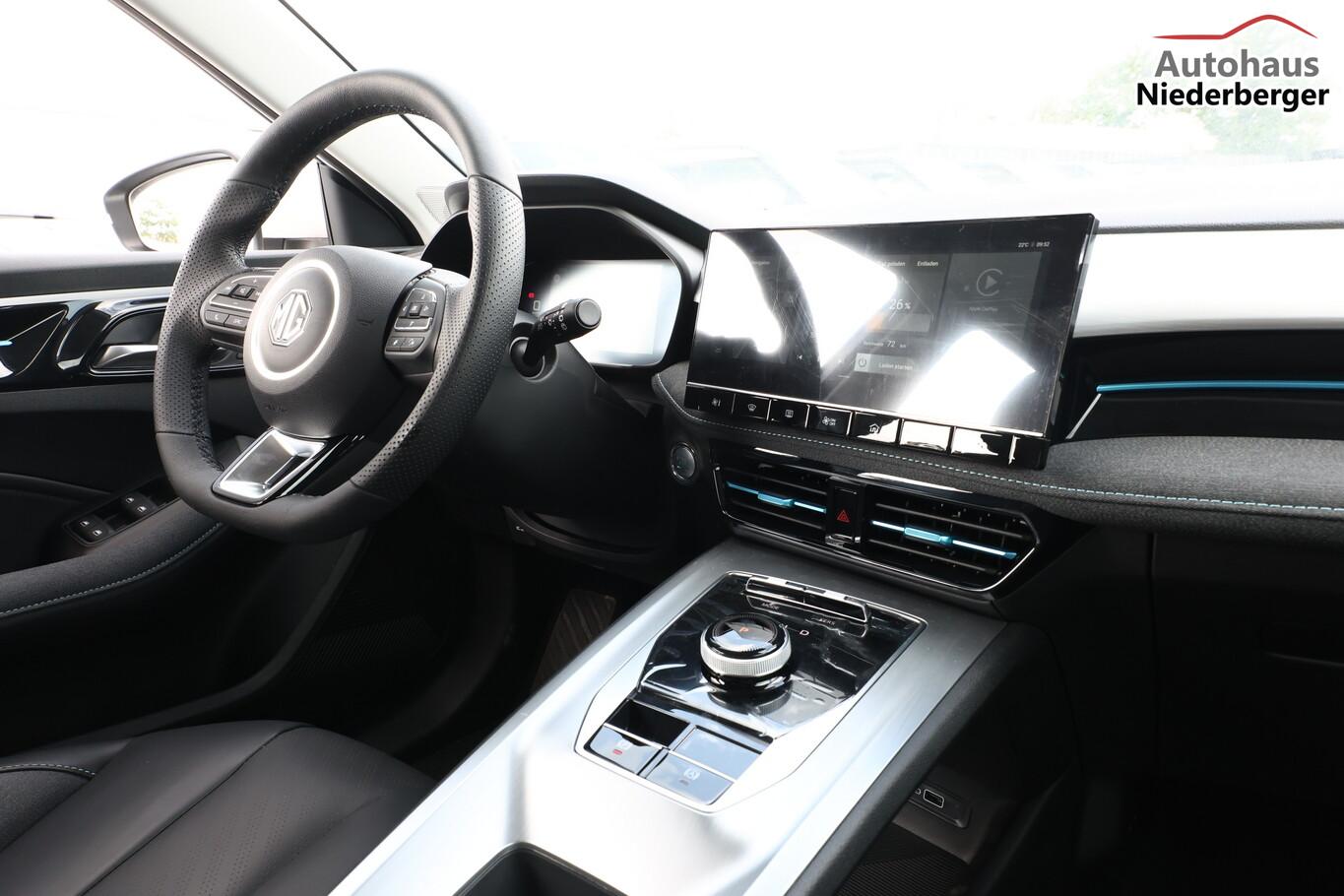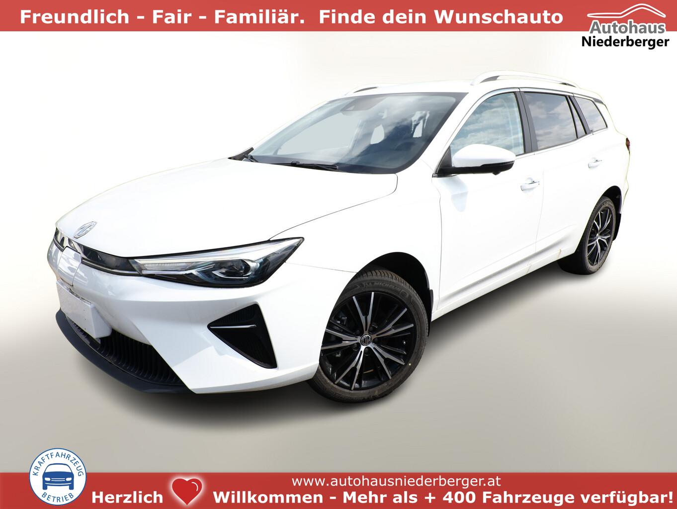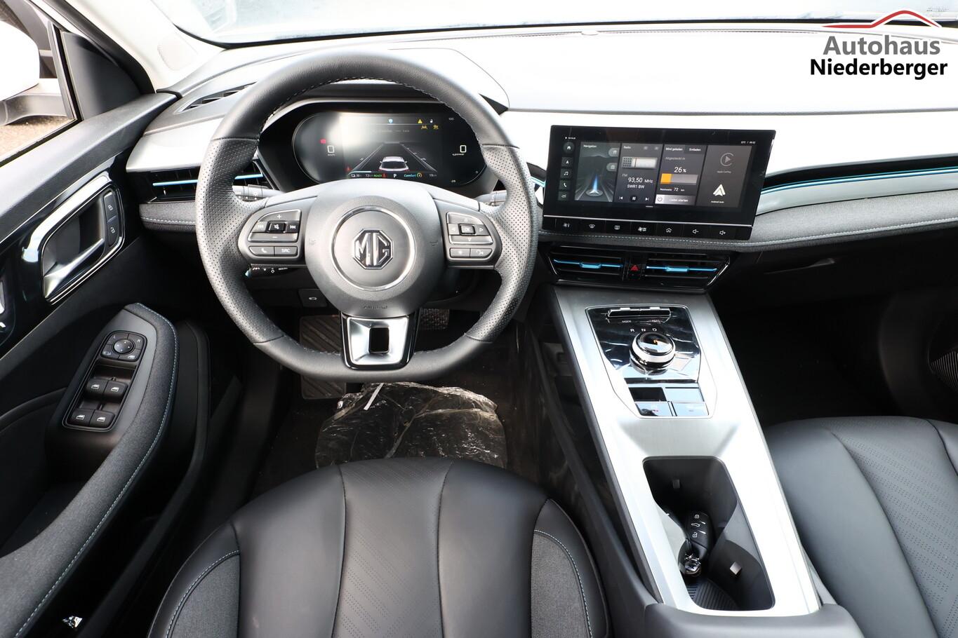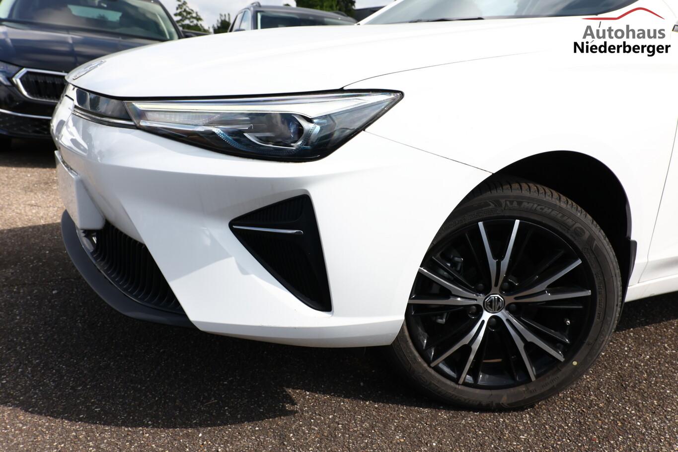 Alarmanlage, Heckscheibe heizbar, Isofix-Aufnahmen für Kindersitz an Rücksitze, Kartentaschen an Vordersitzlehnen, Klimaautomatik, Ladekabel mit Typ 2-Stecker (Mode 3), Lendenwirbelstütze Sitz vorn links verstellbar, Lenkrad (Lenksäule) verstellbar, LM-Felgen 17 Zoll, Modelljahr 2022, Reifen 215/50 R17, Rückfahrkamera 360° (Umgebungsansicht), Schadstoffarm nach Abgasnorm Euro 6e (EU6 EA), Fahrassistenz-Paket MG Pilot (Fahrassistenz-System: Frontkollisionswarnung (FCW) / Fahrassistenz-System: Geschwindigkeitslimit-Assistent (SAS) / Fahrassistenz-System: Stauassistent (TJA) / Fahrassistenz-System: Verkehrszeichenerkennung (TSR) / Geschwindigkeits-Regelanlage (Tempomat) mit Abstandsregelung ACC / Fahrassistenz-System: Fernlichtassistent (IHC) / Fahrassistenz-System: aktiver Spurhalteassistent (LKA) / Fahrassistenz-System: Autonomer Notbrems-Assistent (AEB) / Fahrassistenz-System: Spurverlassenswarnung (LDW)), Fensterheber elektrisch (Fensterheber elektr. mit Einklemmschutz), 6 Lautsprecher, Bremsenergierückgewinnung (KERS), Elektromotor 130 kW (cont. 75 kW), Gepäckraumabdeckung, HV-Batterie 50,3 kWh, Innenspiegel mit Abblendautomatik, Instrumentenanzeige Farbdisplay, 7 Zoll, Karosserie: 5-türig, Kindersicherung, Mittelarmlehne hinten, Parkbremse elektronisch (EPB), Radioempfang digital (DAB+), Sitz vorn rechts verstellbar (4-fach), Sonnenblenden mit Spiegel, Steckdose (12V-Anschluß), 4 USB-Anschlüsse zusätzlich, Audio-Navigationssystem, Bluetooth-Schnittstelle, Smartphone Schnittstelle (Apple CarPlay & Android Auto), Anti-Blockier-System (ABS), Bremsassistent (EBA), Antischlupfregelung (ASR), Antriebsart: Frontantrieb, Elektron. Stabilitäts-Programm (ESP), Elektron. Stabilitätskontrolle (ESC), Wegfahrsperre, Getriebe für Elektrofahrzeug, Airbag Beifahrerseite abschaltbar, Airbag Fahrer-/Beifahrerseite, Keyless-Entry, Kopf-Airbag-System vorn, Rücksitzlehne geteilt/klappbar (60:40), Seitenairbag vorn, Sitz vorn links elektr. verstellbar (6-fach), Sitzbezug / Polsterung: Kunstleder, Sitzheizung vorn, Verglasung hinten abgedunkelt (Privacy Glass), Fahrmodusschalter, Dachreling, Notrufsystem (eCall), Lenkrad (Leder) mit Multifunktion, Außenspiegel elektr. anklappbar, Außenspiegel elektr. verstellbar, Außenspiegel heizbar, Automatische Fahrlichtschaltung / Lichtsensor, Blinkleuchte in Außenspiegel integriert, Coming-Home-Lichtfunktion, Heckleuchten LED, Scheibenwischer mit Regensensor, Scheinwerfer LED, Tagfahrlicht LED, Einparkhilfe hinten, Reifendruck-Kontrollsystem (TPMS), Start-Stop-Knopf