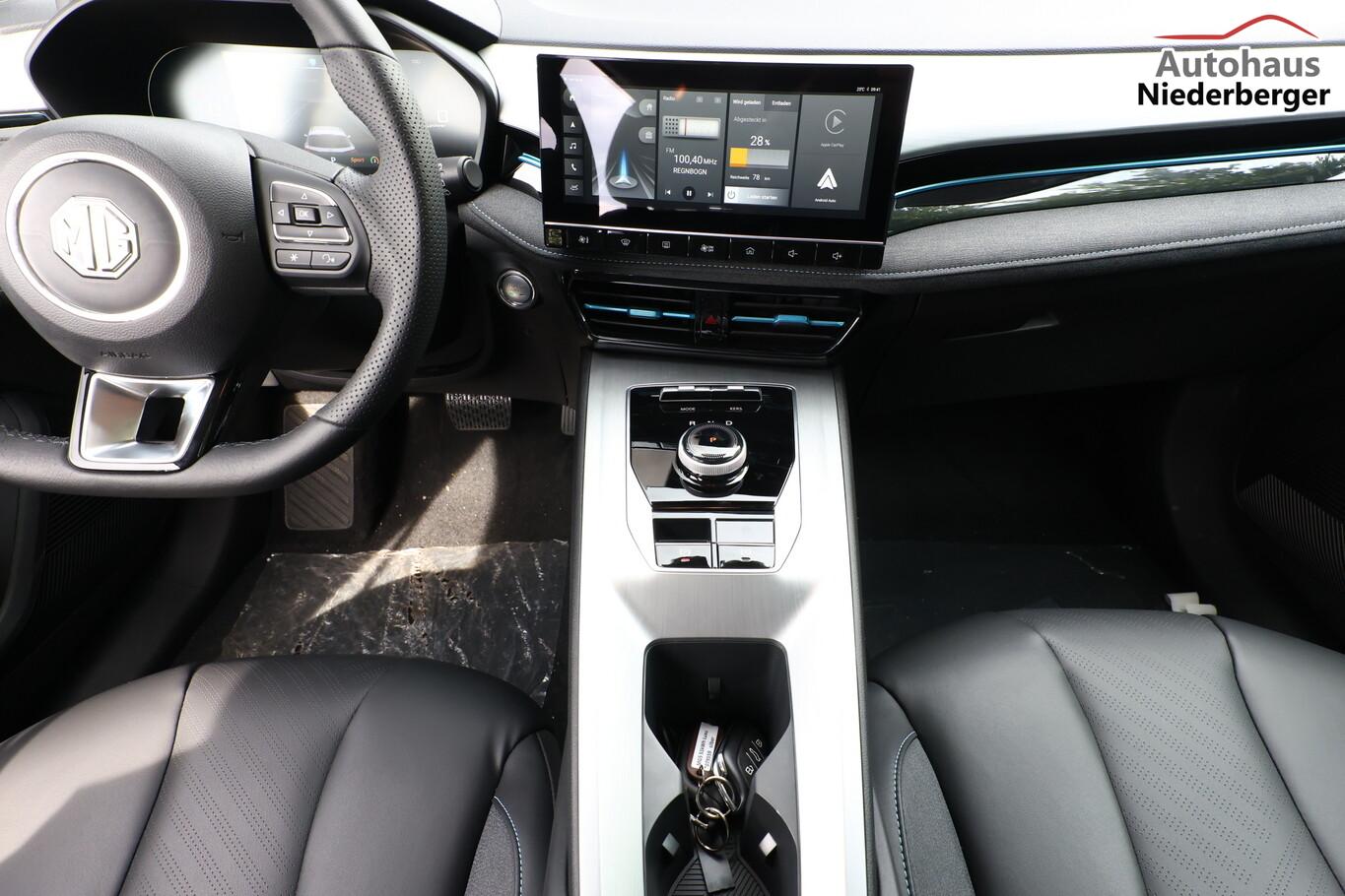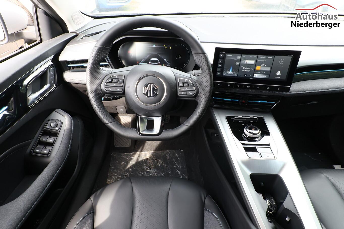 Alarmanlage, Heckscheibe heizbar, Isofix-Aufnahmen für Kindersitz an Rücksitze, Kartentaschen an Vordersitzlehnen, Klimaautomatik, Ladekabel mit Typ 2-Stecker (Mode 3), Lendenwirbelstütze Sitz vorn links verstellbar, Lenkrad (Lenksäule) verstellbar, LM-Felgen 17 Zoll, Modelljahr 2022, Reifen 215/50 R17, Rückfahrkamera 360° (Umgebungsansicht), Schadstoffarm nach Abgasnorm Euro 6e (EU6 EA), Sitz vorn links elektr. verstellbar (6-fach), Fahrassistenz-Paket MG Pilot (Fahrassistenz-System: Frontkollisionswarnung (FCW) / Fahrassistenz-System: Geschwindigkeitslimit-Assistent (SAS) / Fahrassistenz-System: Stauassistent (TJA) / Fahrassistenz-System: Verkehrszeichenerkennung (TSR) / Geschwindigkeits-Regelanlage (Tempomat) mit Abstandsregelung ACC / Fahrassistenz-System: Fernlichtassistent (IHC) / Fahrassistenz-System: aktiver Spurhalteassistent (LKA) / Fahrassistenz-System: Autonomer Notbrems-Assistent (AEB) / Fahrassistenz-System: Spurverlassenswarnung (LDW)), Fensterheber elektrisch (Fensterheber elektr. mit Einklemmschutz), 6 Lautsprecher, Bremsenergierückgewinnung (KERS), Elektromotor 130 kW (cont. 75 kW), Gepäckraumabdeckung, HV-Batterie 50,3 kWh, Innenspiegel mit Abblendautomatik, Instrumentenanzeige Farbdisplay, 7 Zoll, Karosserie: 5-türig, Kindersicherung, Mittelarmlehne hinten, Parkbremse elektronisch (EPB), Radioempfang digital (DAB+), Sitz vorn rechts verstellbar (4-fach), Sonnenblenden mit Spiegel, Steckdose (12V-Anschluß), 4 USB-Anschlüsse zusätzlich, Audio-Navigationssystem, Bluetooth-Schnittstelle, Smartphone Schnittstelle (Apple CarPlay & Android Auto), Anti-Blockier-System (ABS), Bremsassistent (EBA), Antischlupfregelung (ASR), Antriebsart: Frontantrieb, Elektron. Stabilitäts-Programm (ESP), Elektron. Stabilitätskontrolle (ESC), Wegfahrsperre, Getriebe für Elektrofahrzeug, Airbag Beifahrerseite abschaltbar, Airbag Fahrer-/Beifahrerseite, Keyless-Entry, Kopf-Airbag-System vorn, Rücksitzlehne geteilt/klappbar (60:40), Seitenairbag vorn, Sitzbezug / Polsterung: Kunstleder, Sitzheizung vorn, Verglasung hinten abgedunkelt (Privacy Glass), Fahrmodusschalter, Dachreling, Notrufsystem (eCall), Lenkrad (Leder) mit Multifunktion, Außenspiegel elektr. anklappbar, Außenspiegel elektr. verstellbar, Außenspiegel heizbar, Automatische Fahrlichtschaltung / Lichtsensor, Blinkleuchte in Außenspiegel integriert, Coming-Home-Lichtfunktion, Heckleuchten LED, Scheibenwischer mit Regensensor, Scheinwerfer LED, Tagfahrlicht LED, Einparkhilfe hinten, Reifendruck-Kontrollsystem (TPMS), Start-Stop-Knopf