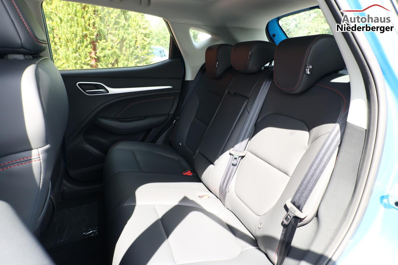 Auto-Hold Funktion, Beifahrersitz verstellbar (4-fach), Fahrersitz verstellbar (6-fach), Fenster hinten mit Privacy-Verglasung, Gurtwarnanlage, Heckleuchte LED, Heckscheibe heizbar, Isofix-Aufnahmen für Kindersitz an Rücksitze, Ladekabel Typ 2 Stecker Mode 3, LM-Felgen 17 Zoll (Aero Cover), Mittelarmlehne im Fond, Radioempfang digital (DAB+), Reifen 215/55 R17, Rückfahrkamera 360°, Schadstoffarm nach Abgasnorm Euro 6e (EU6 EA), Sonnenblenden vorn mit Spiegel, Fahrassistenz-Paket MG Pilot (Fahrassistenz-System: Geschwindigkeitslimit-Assistent (SAS) / Fahrassistenz-System: Stauassistent (TJA) / Geschwindigkeits-Regelanlage (Tempomat) mit Abstandsregelung ACC / Fahrassistenz-System: Fernlichtassistent (IHC) / Fahrassistenz-System: Autonomer Notbrems-Assistent (AEB)), Lenkrad (Leder) (Lenkrad mit Multifunktion), 6 Lautsprecher, Außenspiegel Wagenfarbe, Bremsenergierückgewinnung (KERS), Elektromotor 130 kW (cont. 75 kW), Gepäckraumbeleuchtung, Geschwindigkeits-Begrenzeranlage, HV-Batterie 50 kWh, Induktionsladeschale für Smartphone (Wireless Charging), Infotainment-System: (Touchscreen 10,1 Zoll), Instrumentenanzeige Farbdisplay, 7 Zoll, Karosserie: 5-türig, Kindersicherung, Parkbremse elektronisch (EPB), Radstand 2585 mm, Steckdose (12V-Anschluß), Türgriffe außen Wagenfarbe, Türgriffe innen verchromt, 3 USB-Anschlüsse zusätzlich, Audio-Navigationssystem, Bluetooth-Schnittstelle, Freisprecheinrichtung Bluetooth, Smartphone Schnittstelle (Apple CarPlay & Android Auto), Anti-Blockier-System (ABS), Bremsassistent (EBA), Fahrassistenz-System: City-Notbremsfunktion, Fahrassistenz-System: Frontkollisionswarnung (FCW), Antriebsart: Frontantrieb, Elektron. Stabilitäts-Programm (ESP), Wegfahrsperre, Getriebe für Elektrofahrzeug, Klimaautomatik, Airbag Beifahrerseite abschaltbar, Airbag Fahrer-/Beifahrerseite, Fensterheber elektrisch, Keyless-Entry, Kopf-Airbag-System vorn, Kopf-Schulter-Airbag vorn, Rücksitzlehne geteilt/klappbar (60:40), Seitenairbag vorn, Sitz vorn links elektr. verstellbar, Sitzheizung vorn, Zentralverriegelung mit Fernbedienung, Dachreling, Panorama-Schiebedach, Fahrassistenz-System: Berganfahrhilfe (Hill-Holder), Fahrassistenz-System: Einparkhilfe 360°, Fahrassistenz-System: Verkehrszeichenerkennung (TSR), Notrufsystem (eCall), Außenspiegel elektr. anklappbar, Außenspiegel elektr. verstellbar, Außenspiegel heizbar, Automatische Fahrlichtschaltung / Lichtsensor, Blinkleuchte in Außenspiegel integriert, Coming-Home-Lichtfunktion, Fahrassistenz-System: Totwinkel-Assistent (BSM), Licht- und Regensensor, Scheibenwischer mit Regensensor, Scheinwerfer LED, Tagfahrlicht LED, Einparkhilfe hinten, Fahrassistenz-System: aktiver Spurhalteassistent (LKA), Fahrassistenz-System: Querverkehrs-Assistent Heck (Rear Cross Traffic Alert, RCTA), Fahrassistenz-System: Spurverlassenswarnung (LDW), Fahrassistenz-System: Spurwechselassistent (LCW), Reifendruck-Kontrollsystem (TPMS), Alarmanlage, Start-Stop-Knopf