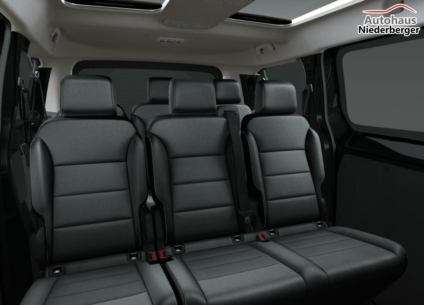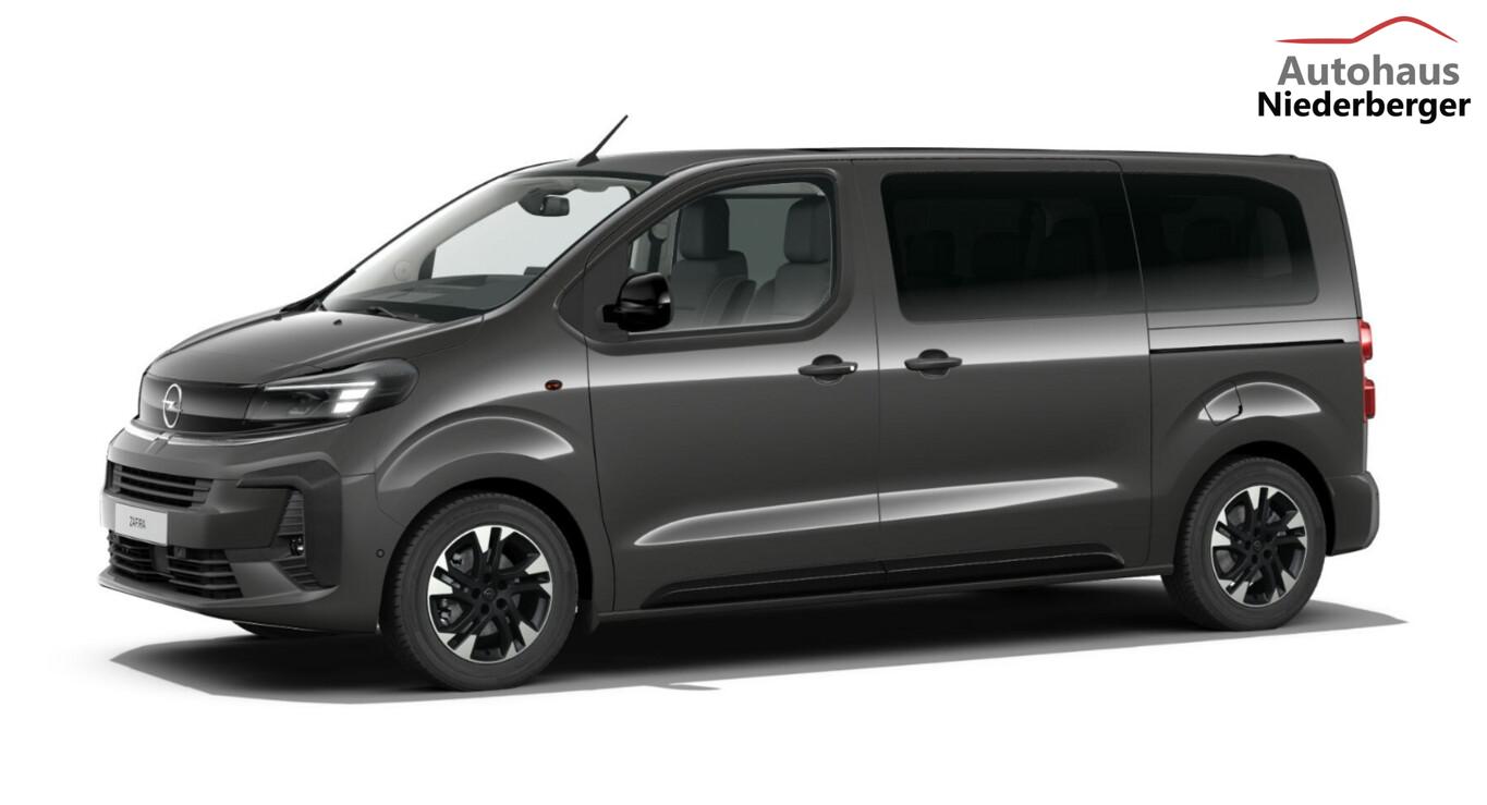 Anhängerkupplung (Kugelkopf abnehmbar) ohne Werkzeug, Design-Paket Black Edition (Außenspiegel schwarz hochglänzend / Seitenschutzleisten Schwarz, Hochglanz), Opel Connect, 12V-Steckdosen (vorn und 3. Sitzreihe), Ablagefach oben zentral, schließbar, Ablagetasche an Vordersitzlehnen, Adaptives Traktionssystem (IntelliGrip) inkl. Fahrmodusschalter, Armlehne Sitz vorn rechts, Audio-Navigationssystem, Audiobedienung am Lenkrad, Digitales Fahrerinfodisplay, Einstiegsleisten beleuchtet (2. Sitzreihe), Fahrassistenz-System: Autonomer Notbrems-Assistent, Fahrassistenz-System: Frontkollisionswarnung, Fahrassistenz-System: Totwinkel-Assistent, Flankenschutz, Gepäckraumbeleuchtung (2 Stück), Geschwindigkeits-Begrenzeranlage, Induktionsladeschale für Smartphone, ISOFIX-Vorrüstung 2. und 3. Sitzreihe, Kindersicherung elektrisch, Klapptische an Vordersitzlehnen, Lenkrad (Kunstleder) heizbar, LM-Felgen 17 Zoll, Nebelscheinwerfer, Oberes Handschuhfach, schließbar (Premium), Parkpilotsystem vorn und hinten, Reifen 225/55 R17, Reihe 2+3: Rückenlehne in der Neigung einstellbar, Reihe 2+3: Rücksitzlehnen geteilt (2/3:1/3) klappbar, Sitzbänke verschieb- und herausnehmbar, Rückfahrkamera mit 180° Umgebungsansicht, Schadstoffarm nach Abgasnorm Euro 6e (EU6 EA), Scheinwerfer Voll-LED, Sitz vorn links inkl. Armlehne und Lendenwirbelstütze, Sitz vorn links mit Massagefunktion, Sitz vorn rechts mit Massagefunktion, Sitzheizung vorn, Sitzverstellung vorn links elektr. (6-fach), Sitzverstellung vorn rechts elektr. (4-fach), Solar Protect®-Wärmeschutzverglasung, extra stark getönt, hinten (90% Tönungsgrad), Sonnenblenden mit Spiegel beleuchtet, Tagfahrlicht LED, Unteres Handschuhfach, schließbar, Fahrassistenz-Paket 1 (Frontscheibe wärmeabweisend (Solar-Reflect) / Fahrassistenz-System: Verkehrszeichenerkennung / Fahrassistenz-System: Fernlichtassistent / Fahrassistenz-System: Müdigkeitserkennungs-Sensor / Fahrassistenz-System: Spurhalteassistent), HiFi-Soundsystem inkl. Subwoofer (10 Lautsprecher), Sitzkombination: (3) 8-Sitzer (Sitzbezug / Polsterung: Leder), Klima-Paket (USB-Schnittstelle hinten (2-fach) / Klimaanlage im Fond / Klimaautomatik 2-Zonen), Abdeckleiste Schiebetürschiene in Wagenfarbe, DAB-Tuner (Radioempfang digital), Heckklappe mit separat zu öffnendem Fenster, Heckwischeranlage und Heckscheibenheizung, Laderaumabdeckung, Lenksäule (Lenkrad) verstellbar, Motor 2,2 Ltr. - 132 kW Blue-HDI FAP, SCR-System (AdBlue-Technologie), Steckdose 230V, Wärmeschutzverglasung hinten stark abgedunkelt (Solar-Protect), Anti-Blockier-System (ABS), Antriebsart: Frontantrieb, Elektron. Stabilitäts-Programm Plus (ESP), Getriebe Automatik - mit Start-/Stop (8-Stufen), Airbag Beifahrerseite abschaltbar, Airbag Fahrer-/Beifahrerseite, Fensterheber elektrisch vorn, Kopf-Airbag-System, Seitenairbag vorn, Sonnenschutzrollo an Seitenscheiben hinten, Panoramadach (Glas), Fahrassistenz-System: Berganfahr-Assistent (HSA, Hill Start Assist), Geschwindigkeits-Regelanlage (Tempomat), Außenspiegel elektr. verstell- und heizbar, elektr. anklappbar, Einschaltautomatik für Fahrlicht, Scheibenwischer mit Regensensor, Reifendruck-Kontrollsystem