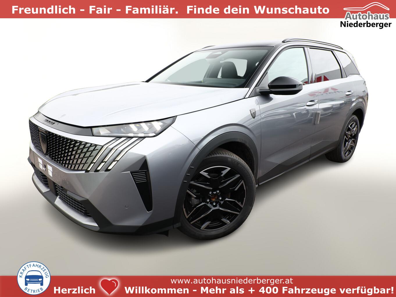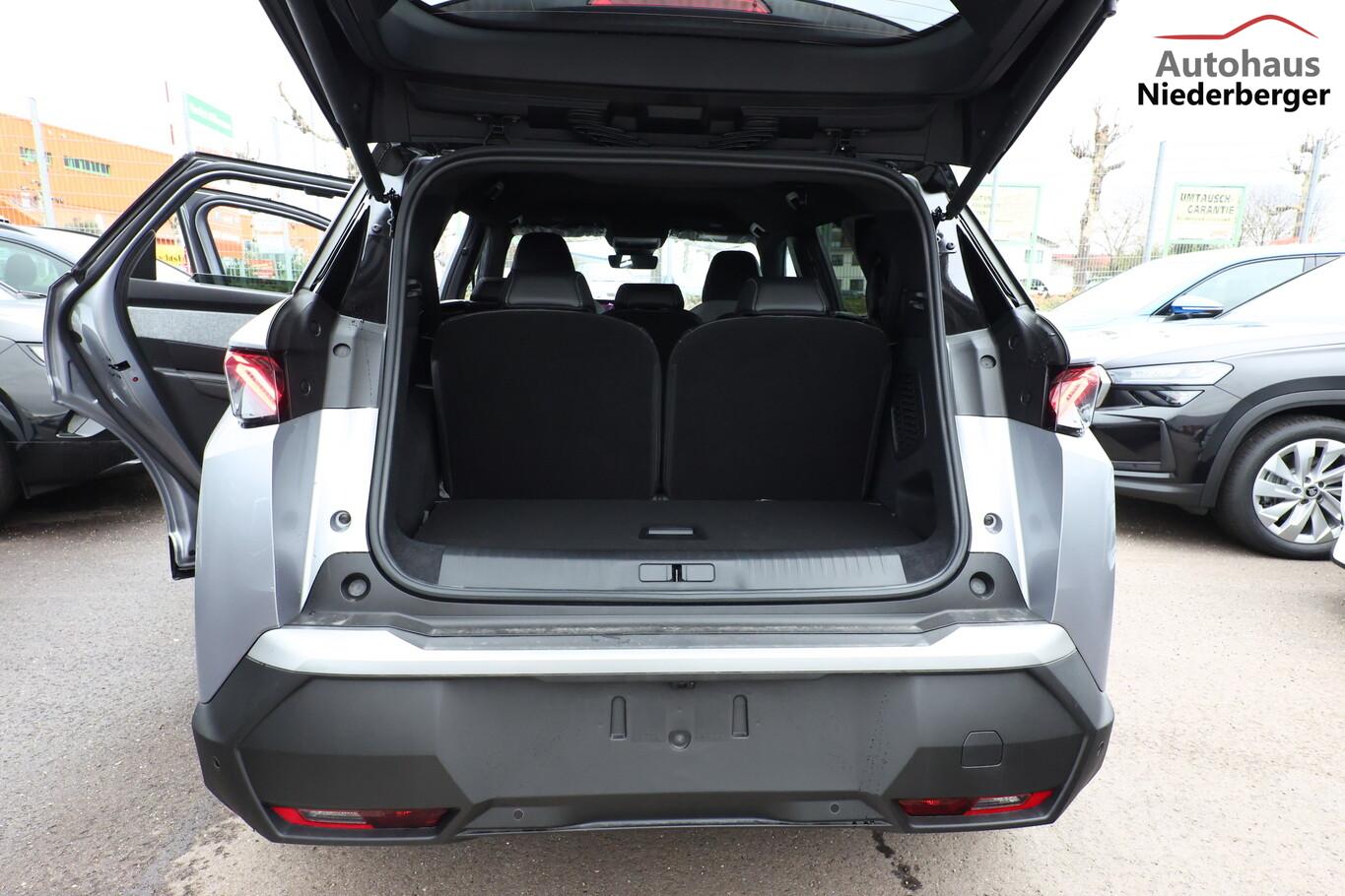 Komfort-Paket (Innenausstattung: Ziernähte farbig / Komfortsitze vorn / Lendenwirbelstütze Sitz vorn links und rechts, elektr. verstellbar / Sitzbezug / Polsterung: Alcantara / Kunstleder / Sitze vorn mit ausziehbarer Oberschenkelauflage / Sitze vorn mit Massagefunktion / Sitz vorn links elektr. verstellbar (mit Memory) / Sitzheizung hinten), 21"-Panoramadisplay, 3. Sitzreihe klappbar, 6 Lautsprecher, Ambientenbeleuchtung, Audiobedienung am Lenkrad, Dachreling schwarz, Einparkhilfe vorn, Fahrmodusschalter, Fensterheber elektr. hinten, Fensterzierleisten schwarz, Freisprecheinrichtung Bluetooth, Handschuhfach beleuchtet, Lenkrad (Leder), LM-Felgen 19 Zoll, Mild-Hybrid 107 kW (Motor 1,2 Ltr. - 100 kW), Navigationssystem i-Connect Advanced, Radioempfang digital (DAB+), Reifen 225/55 R19, Schadstoffarm nach Abgasnorm Euro 6e (EU6 EA), Smartphone Schnittstelle kabellos (Apple Car Play/Android Auto), USB-Anschluss, Anhängerkupplung Vorbereitung, Außenspiegel und Spiegelfuss in Perla-Nera-Schwarz, Dachfarbe schwarz, Dachhimmel schwarz, Gepäckraumboden verschiebbar, variabel, Getränkehalter vorn, Innenspiegel mit Abblendautomatik, Karosserie: 5-türig, Lenkrad heizbar, Mittelarmlehne hinten, Mobile Online Dienste Mirror Screen, Otto-Partikelfilter (GPF), Parkbremse elektrisch, Pedale Aluminium, Radstand Standard, Sitze vorn höhenverstellbar, Sonnenblenden mit Make-up-Spiegel, Steckdose (12V-Anschluß) im Koffer-/Laderaum, Warnanlage für Sicherheitsgurte, Anti-Blockier-System (ABS), Fahrassistenz-System: Aktiver Notbrems-Assistent (Active Safety Brake Plus), Antriebsart: Frontantrieb, Elektron. Stabilitäts-Programm (ESP, Bosch), Getriebe Automatik - Doppelkupplungsgetriebe (6-Stufen, Hybrid), Klimaautomatik, getrennt regelbar Fahrer-/Beifahrerseite, Airbag Beifahrerseite abschaltbar, Airbag Fahrer-/Beifahrerseite, Fensterheber elektr. vorn, links mit Impulsgeber, Isofix-Aufnahmen für Kindersitz, Kopf-Airbag-System, Kopf-Airbag-System hinten, Mittelarmlehne vorn, Rücksitzbank geteilt/klappbar automatisch (40:20:40), Seitenairbag vorn, Seitenscheiben hinten und Heckscheibe getönt, Sitzheizung vorn, Zentralverriegelung / Startanlage Keyless System, Zentralverriegelung mit Fernbedienung, Kofferraumdeckel / Heckklappe elektr. betätigt (öffnen + schliessen, sensorgesteuert), Fahrassistenz-System: Autom. Distanzregelung (ACC inkl. Stop&Go-Funktion), Fahrassistenz-System: Berganfahrhilfe, Fahrassistenz-System: Verkehrszeichenerkennung, Rückfahrkamera mit 180° Umgebungsansicht, Peugeot Connect-Box / SOS-Taste (Notruf für Lokalisierung Fahrzeug), Lenkrad mit Multifunktion, Lenkrad mit Schaltwippen/-tasten, Außenspiegel elektr. anklappbar, Außenspiegel elektr. verstell- und heizbar, beide, Außenspiegel mit Umfeldleuchte, Einschaltautomatik für Fahrlicht, Fahrassistenz-System: Fernlichtassistent, Scheibenwischer mit Regensensor, Scheinwerfer Full-LED, Tagfahrlicht LED, Einparkhilfe hinten, Fahrassistenz-System: aktiver Spurassistent (Lenkunterstützung), Fahrassistenz-System: Müdigkeitserkennungs-Sensor, Reifendruck-Kontrollsystem