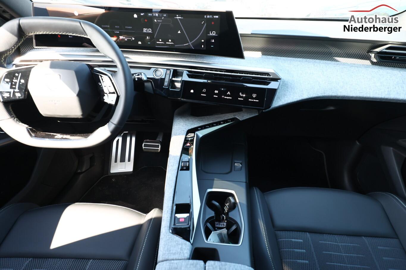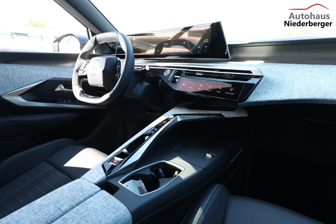 Drive-Assist-Paket Plus (Induktionsladeschale für Smartphone / Fahrassistenz-System: Verkehrszeichenerkennung, erweitert (Geschwindigkeits-Regel-/Begrenzeranlage) / Rückfahrkamera mit 360° Umgebungsansicht / Fahrassistenz-System: Totwinkel-Assistent (SAM) / Fahrassistenz-System: Querverkehrs-Assistent Heck (Rear Cross Traffic Alert, RCTA) / Fahrassistenz-System: Spurhalteassistent (LPA) mit halbautonomen Spurwechselassistent (HIA) / Alarmanlage und Safesicherung), 21"-Panoramadisplay, 6 Lautsprecher, Ambientenbeleuchtung, Dachreling schwarz, Einparkhilfe vorn, Fahrmodusschalter, Fensterheber elektr. hinten, Fensterzierleisten schwarz, Laderaumbeleuchtung, Lendenwirbelstütze Sitz vorn links, LM-Felge 19 Zoll, Radioempfang digital (DAB+), Reifen 225/55 R19, Schadstoffarm nach Abgasnorm Euro 6e (EU6 EA), Smartphone Schnittstelle kabellos (Apple Car Play/Android Auto), Panorama Navigations-Paket (Induktionsladeschale für Smartphone / Radioempfang digital (DAB+) / Freisprecheinrichtung Bluetooth / Navigationssystem i-Connect Advanced / USB-Anschluss (Typ C, 2-fach) / USB-Anschluss (Typ C, 3-fach) / Audiobedienung am Lenkrad), Außenspiegel und Spiegelfuss in Perla-Nera-Schwarz, Dachfarbe schwarz, Dachhimmel schwarz, Gepäckraumboden verschiebbar, variabel, Getränkehalter vorn, Karosserie: 5-türig, Kindersicherung elektrisch, Lenkrad heizbar, Mild-Hybrid 100 kW (Motor 1,2 Ltr. - 100 kW), Mittelarmlehne hinten, Mobile Online Dienste Mirror Screen, Parkbremse elektrisch, Pedale Aluminium, Radstand Standard, Sitze vorn höhenverstellbar, Sonnenblenden mit Make-up-Spiegel, Steckdose (12V-Anschluß) im Koffer-/Laderaum, Warnanlage für Sicherheitsgurte, Anti-Blockier-System (ABS), Fahrassistenz-System: Aktiver Notbrems-Assistent (Active Safety Brake Plus), Antriebsart: Frontantrieb, Elektron. Stabilitäts-Programm (ESP, Bosch), Getriebe Automatik - Doppelkupplungsgetriebe (6-Stufen, Hybrid), Klimaautomatik, getrennt regelbar Fahrer-/Beifahrerseite, Airbag Beifahrerseite abschaltbar, Airbag Fahrer-/Beifahrerseite, Fensterheber elektr. vorn, links mit Impulsgeber, Isofix-Aufnahmen für Kindersitz, Kopf-Airbag-System, Kopf-Airbag-System hinten, Mittelarmlehne vorn, Rücksitzbank geteilt/klappbar automatisch (40:20:40), Seitenairbag vorn, Seitenscheiben hinten und Heckscheibe getönt, Sitzheizung vorn, Zentralverriegelung / Startanlage Keyless System, Zentralverriegelung mit Fernbedienung, Kofferraumdeckel / Heckklappe elektr. betätigt (öffnen + schliessen, sensorgesteuert), Fahrassistenz-System: Autom. Distanzregelung (ACC inkl. Stop&Go-Funktion), Fahrassistenz-System: Verkehrszeichenerkennung, Peugeot Connect-Box / SOS-Taste (Notruf für Lokalisierung Fahrzeug), Lenkrad mit Multifunktion, Außenspiegel elektr. anklappbar, Außenspiegel elektr. verstell- und heizbar, beide, Fahrassistenz-System: Fernlichtassistent, Scheibenwischer mit Regensensor, Scheinwerfer Full-LED, Einparkhilfe hinten, Fahrassistenz-System: aktiver Spurassistent (Lenkunterstützung), Fahrassistenz-System: Müdigkeitserkennungs-Sensor, Reifendruck-Kontrollsystem