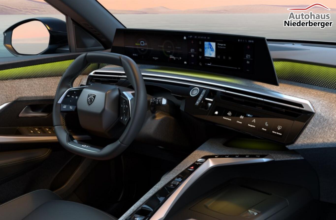 Drive-Assist-Paket Plus (Induktionsladeschale für Smartphone / Fahrassistenz-System: Verkehrszeichenerkennung, erweitert (Geschwindigkeits-Regel-/Begrenzeranlage) / Rückfahrkamera mit 360° Umgebungsansicht / Fahrassistenz-System: Totwinkel-Assistent (SAM) / Fahrassistenz-System: Querverkehrs-Assistent Heck (Rear Cross Traffic Alert, RCTA) / Fahrassistenz-System: Spurhalteassistent (LPA) mit halbautonomen Spurwechselassistent (HIA) / Alarmanlage und Safesicherung), 21"-Panoramadisplay, 6 Lautsprecher, Ambientenbeleuchtung, Dachreling schwarz, Einparkhilfe vorn, Fahrmodusschalter, Fensterheber elektr. hinten, Fensterzierleisten schwarz, Laderaumbeleuchtung, Lendenwirbelstütze Sitz vorn links, LM-Felge 19 Zoll, Radioempfang digital (DAB+), Reifen 225/55 R19, Schadstoffarm nach Abgasnorm Euro 6e (EU6 EA), Smartphone Schnittstelle kabellos (Apple Car Play/Android Auto), Panorama Navigations-Paket (Induktionsladeschale für Smartphone / Radioempfang digital (DAB+) / Freisprecheinrichtung Bluetooth / Navigationssystem i-Connect Advanced / USB-Anschluss (Typ C, 2-fach) / USB-Anschluss (Typ C, 3-fach) / Audiobedienung am Lenkrad), Außenspiegel und Spiegelfuss in Perla-Nera-Schwarz, Dachfarbe schwarz, Dachhimmel schwarz, Gepäckraumboden verschiebbar, variabel, Getränkehalter vorn, Karosserie: 5-türig, Kindersicherung elektrisch, Lenkrad heizbar, Mild-Hybrid 100 kW (Motor 1,2 Ltr. - 100 kW), Mittelarmlehne hinten, Mobile Online Dienste Mirror Screen, Parkbremse elektrisch, Pedale Aluminium, Radstand Standard, Sitze vorn höhenverstellbar, Sonnenblenden mit Make-up-Spiegel, Steckdose (12V-Anschluß) im Koffer-/Laderaum, Warnanlage für Sicherheitsgurte, Anti-Blockier-System (ABS), Fahrassistenz-System: Aktiver Notbrems-Assistent (Active Safety Brake Plus), Antriebsart: Frontantrieb, Elektron. Stabilitäts-Programm (ESP, Bosch), Getriebe Automatik - Doppelkupplungsgetriebe (6-Stufen, Hybrid), Klimaautomatik, getrennt regelbar Fahrer-/Beifahrerseite, Airbag Beifahrerseite abschaltbar, Airbag Fahrer-/Beifahrerseite, Fensterheber elektr. vorn, links mit Impulsgeber, Isofix-Aufnahmen für Kindersitz, Kopf-Airbag-System, Kopf-Airbag-System hinten, Mittelarmlehne vorn, Rücksitzbank geteilt/klappbar automatisch (40:20:40), Seitenairbag vorn, Seitenscheiben hinten und Heckscheibe getönt, Sitzheizung vorn, Zentralverriegelung / Startanlage Keyless System, Zentralverriegelung mit Fernbedienung, Kofferraumdeckel / Heckklappe elektr. betätigt (öffnen + schliessen, sensorgesteuert), Fahrassistenz-System: Autom. Distanzregelung (ACC inkl. Stop&Go-Funktion), Fahrassistenz-System: Verkehrszeichenerkennung, Peugeot Connect-Box / SOS-Taste (Notruf für Lokalisierung Fahrzeug), Lenkrad mit Multifunktion, Außenspiegel elektr. anklappbar, Außenspiegel elektr. verstell- und heizbar, beide, Fahrassistenz-System: Fernlichtassistent, Scheibenwischer mit Regensensor, Scheinwerfer Full-LED, Einparkhilfe hinten, Fahrassistenz-System: aktiver Spurassistent (Lenkunterstützung), Fahrassistenz-System: Müdigkeitserkennungs-Sensor, Reifendruck-Kontrollsystem