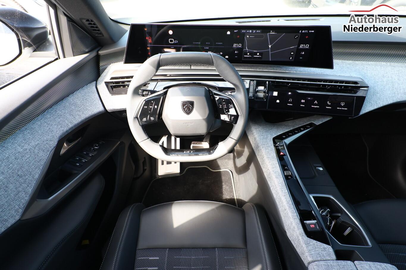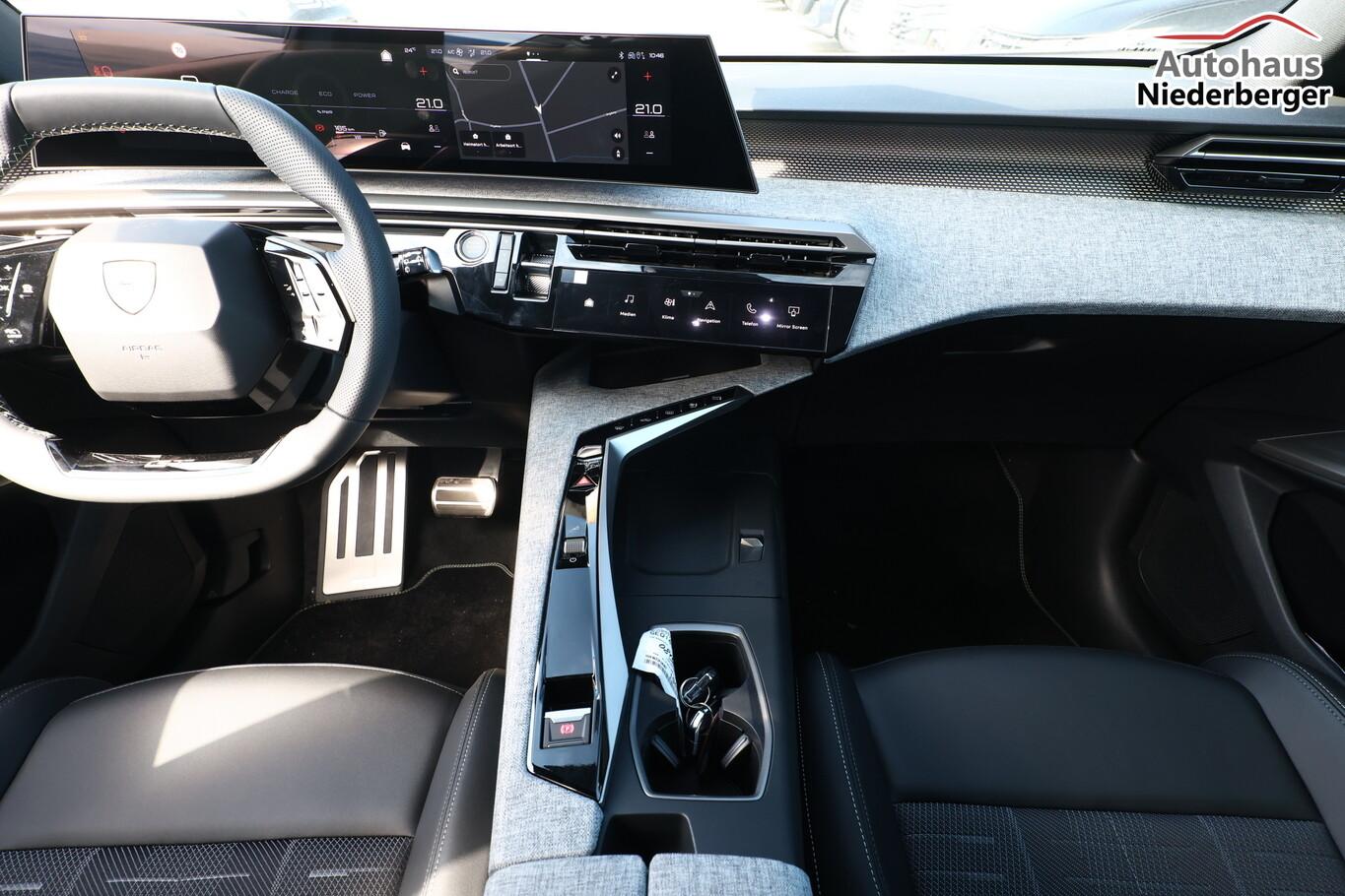 Drive-Assist-Paket Plus (Induktionsladeschale für Smartphone / Fahrassistenz-System: Verkehrszeichenerkennung, erweitert (Geschwindigkeits-Regel-/Begrenzeranlage) / Rückfahrkamera mit 360° Umgebungsansicht / Fahrassistenz-System: Totwinkel-Assistent (SAM) / Fahrassistenz-System: Querverkehrs-Assistent Heck (Rear Cross Traffic Alert, RCTA) / Fahrassistenz-System: Spurhalteassistent (LPA) mit halbautonomen Spurwechselassistent (HIA) / Alarmanlage und Safesicherung), 21"-Panoramadisplay, 6 Lautsprecher, Ambientenbeleuchtung, Dachreling schwarz, Einparkhilfe vorn, Fahrmodusschalter, Fensterheber elektr. hinten, Fensterzierleisten schwarz, Laderaumbeleuchtung, Lendenwirbelstütze Sitz vorn links, LM-Felge 19 Zoll, Radioempfang digital (DAB+), Reifen 225/55 R19, Schadstoffarm nach Abgasnorm Euro 6e (EU6 EA), Smartphone Schnittstelle kabellos (Apple Car Play/Android Auto), Panorama Navigations-Paket (Induktionsladeschale für Smartphone / Radioempfang digital (DAB+) / Freisprecheinrichtung Bluetooth / Navigationssystem i-Connect Advanced / USB-Anschluss (Typ C, 2-fach) / USB-Anschluss (Typ C, 3-fach) / Audiobedienung am Lenkrad), Außenspiegel und Spiegelfuss in Perla-Nera-Schwarz, Dachfarbe schwarz, Dachhimmel schwarz, Gepäckraumboden verschiebbar, variabel, Getränkehalter vorn, Karosserie: 5-türig, Kindersicherung elektrisch, Lenkrad heizbar, Mild-Hybrid 100 kW (Motor 1,2 Ltr. - 100 kW), Mittelarmlehne hinten, Mobile Online Dienste Mirror Screen, Parkbremse elektrisch, Pedale Aluminium, Radstand Standard, Sitze vorn höhenverstellbar, Sonnenblenden mit Make-up-Spiegel, Steckdose (12V-Anschluß) im Koffer-/Laderaum, Warnanlage für Sicherheitsgurte, Anti-Blockier-System (ABS), Fahrassistenz-System: Aktiver Notbrems-Assistent (Active Safety Brake Plus), Antriebsart: Frontantrieb, Elektron. Stabilitäts-Programm (ESP, Bosch), Getriebe Automatik - Doppelkupplungsgetriebe (6-Stufen, Hybrid), Klimaautomatik, getrennt regelbar Fahrer-/Beifahrerseite, Airbag Beifahrerseite abschaltbar, Airbag Fahrer-/Beifahrerseite, Fensterheber elektr. vorn, links mit Impulsgeber, Isofix-Aufnahmen für Kindersitz, Kopf-Airbag-System, Kopf-Airbag-System hinten, Mittelarmlehne vorn, Rücksitzbank geteilt/klappbar automatisch (40:20:40), Seitenairbag vorn, Seitenscheiben hinten und Heckscheibe getönt, Sitzheizung vorn, Zentralverriegelung / Startanlage Keyless System, Zentralverriegelung mit Fernbedienung, Kofferraumdeckel / Heckklappe elektr. betätigt (öffnen + schliessen, sensorgesteuert), Fahrassistenz-System: Autom. Distanzregelung (ACC inkl. Stop&Go-Funktion), Fahrassistenz-System: Verkehrszeichenerkennung, Peugeot Connect-Box / SOS-Taste (Notruf für Lokalisierung Fahrzeug), Lenkrad mit Multifunktion, Außenspiegel elektr. anklappbar, Außenspiegel elektr. verstell- und heizbar, beide, Fahrassistenz-System: Fernlichtassistent, Scheibenwischer mit Regensensor, Scheinwerfer Full-LED, Einparkhilfe hinten, Fahrassistenz-System: aktiver Spurassistent (Lenkunterstützung), Fahrassistenz-System: Müdigkeitserkennungs-Sensor, Reifendruck-Kontrollsystem