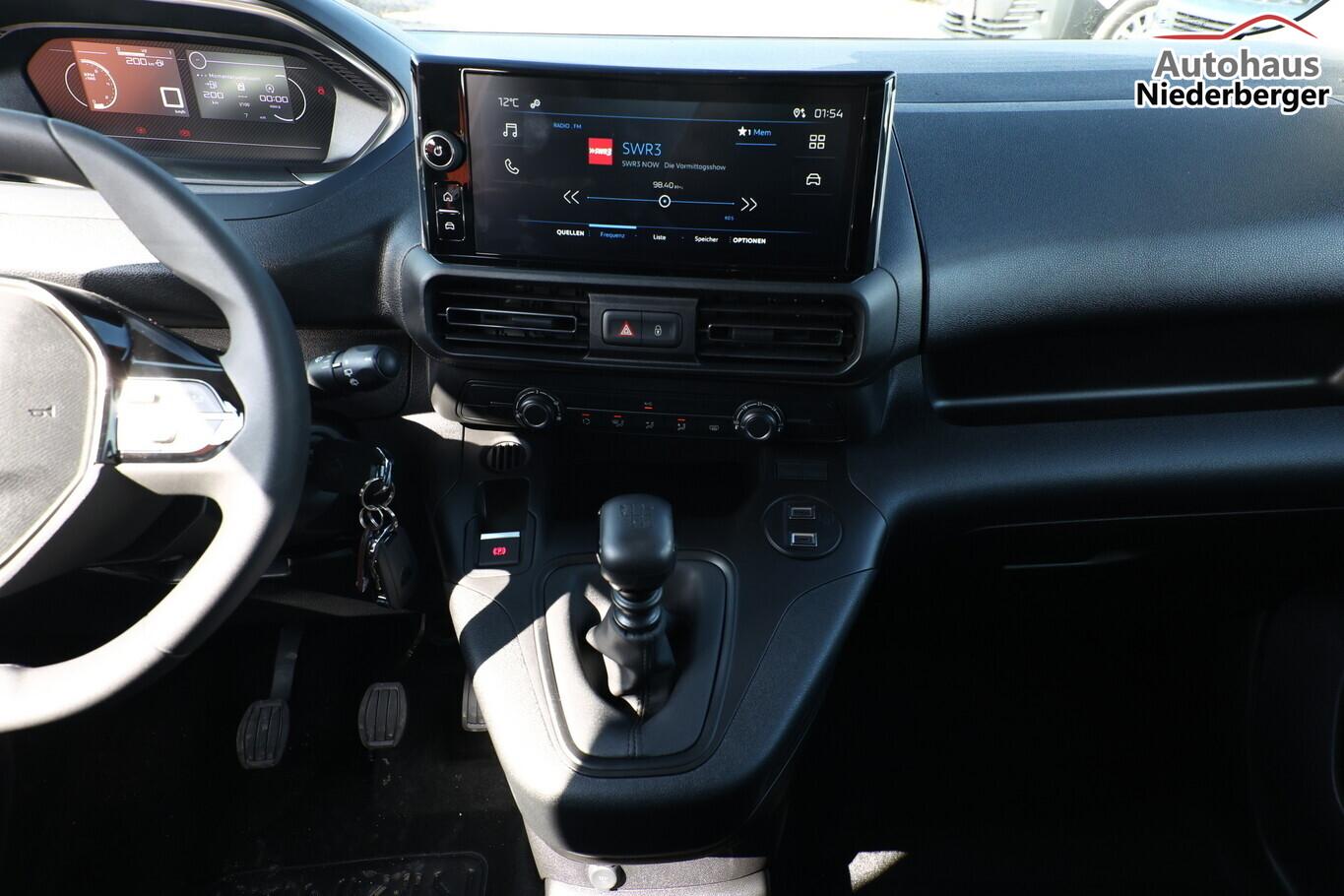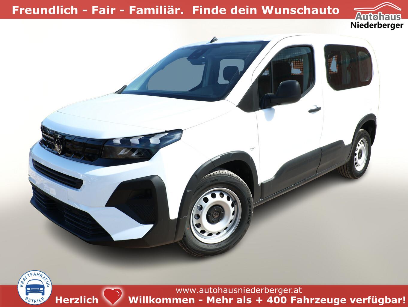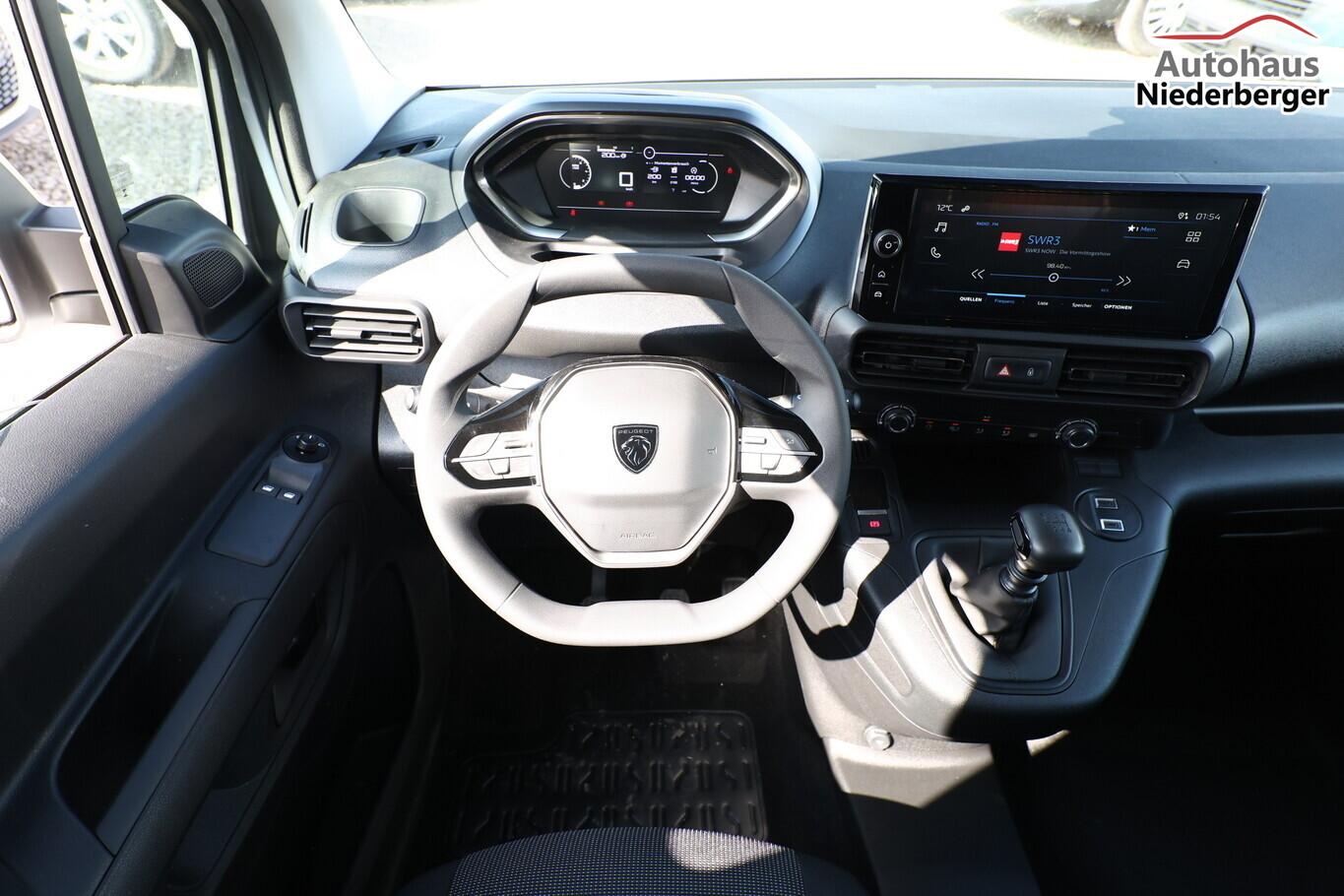 Heckflügeltüren mit Verglasung / Heckscheibenheizung und Heckwischanlage (Heckscheibe heizbar / Heckscheibenwischer), 2. Sitzreihe mit Ausstellfenstern, Fensterheber elektrisch vorn, Freisprecheinrichtung Bluetooth, Gepäckraumabdeckung, Getriebe 6-Gang, Infotainment-System inkl. 10"-Touchscreen, 4 Lautsprecher, Isofix-Aufnahmen für Kindersitz, Laderaumtrennwand (Gitter / Wand), Lenkrad mit Multifunktion, Leseleuchten vorn, Multikollisionsbremse, Navigation in Verbindung mit dem Smartphone (über Apple Carplay / Android Auto /...), Radioempfang digital (DAB), Reifen 215/65 R16, Rücksitzbank geteilt/klappbar, Schiebetür rechts, Seitenairbag vorn, Sitz vorn rechts umklappbar, Smartphone-Schnittstelle (Apple CarPlay & Android Auto), Zentralverriegelung, Sicht-Paket (Einschaltautomatik für Fahrlicht / Scheibenwischer mit Regensensor), Elektron. Stabilitäts-Programm (ESP, Bosch) (Antischlupfregelung (ASR)), Airbag Fahrer-/Beifahrerseite (Airbag Beifahrerseite), Sicherheits-Paket Plus (Fahrassistenz-System: Auffahrwarnsystem mit Bremsfunktion / Fahrassistenz-System: Verkehrszeichenerkennung / Fahrassistenz-System: Verkehrszeichenerkennung, erweitert (Geschwindigkeits-Regel-/Begrenzeranlage) / Geschwindigkeits-Regelanlage (Tempomat) inkl. Geschwindigkeits-Begrenzeranlage / Fahrassistenz-System: Fernlichtassistent / Fahrassistenz-System: Müdigkeitserkennungs-Sensor / Fahrassistenz-System: Spurassistent (AFIL) / Sicherheits-Paket), Elektr. Bremskraftverteilung, Gurtstraffer, Gurtstraffer hinten, Karosserie: 5-türig, Kindersicherung, manuell, Kopfstützen vorn, Motor 1,5 Ltr. - 75 kW Blue-HDI FAP, Parkbremse elektrisch, Radstand 2785 mm, SCR-System (AdBlue-Technologie), Sitzbezug / Polsterung: Stoff, Stahlfelgen 7x16, Warnanlage für Sicherheitsgurte, Anti-Blockier-System (ABS), Fahrassistenz-System: Aktiver Notbrems-Assistent (Active Safety Brake), Klimaanlage, Airbag Beifahrerseite abschaltbar, Kopf-Airbag-System, Kopf-Airbag-System hinten, Verzurrösen Laderaum, Bordcomputer, Peugeot Connect-Box / SOS-Taste (Notruf für Lokalisierung Fahrzeug), Servolenkung elektrisch, Außenspiegel elektr. verstell- und heizbar, beide, Nebelscheinwerfer, Tagfahrlicht LED, Einparkhilfe hinten, Reifendruck-Kontrollsystem, Rußpartikelfilter, Start/Stop-Anlage