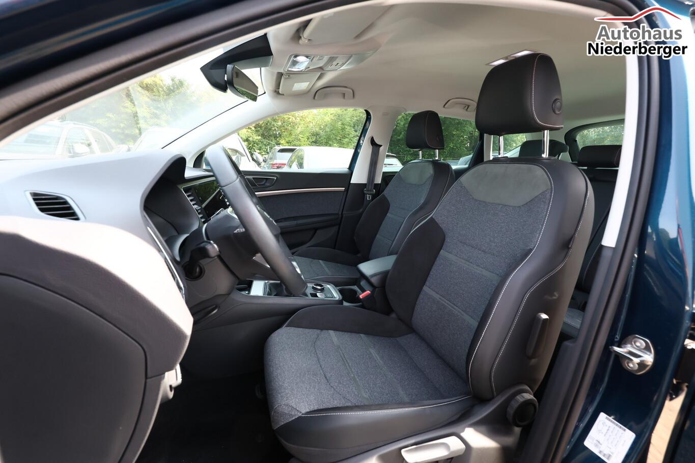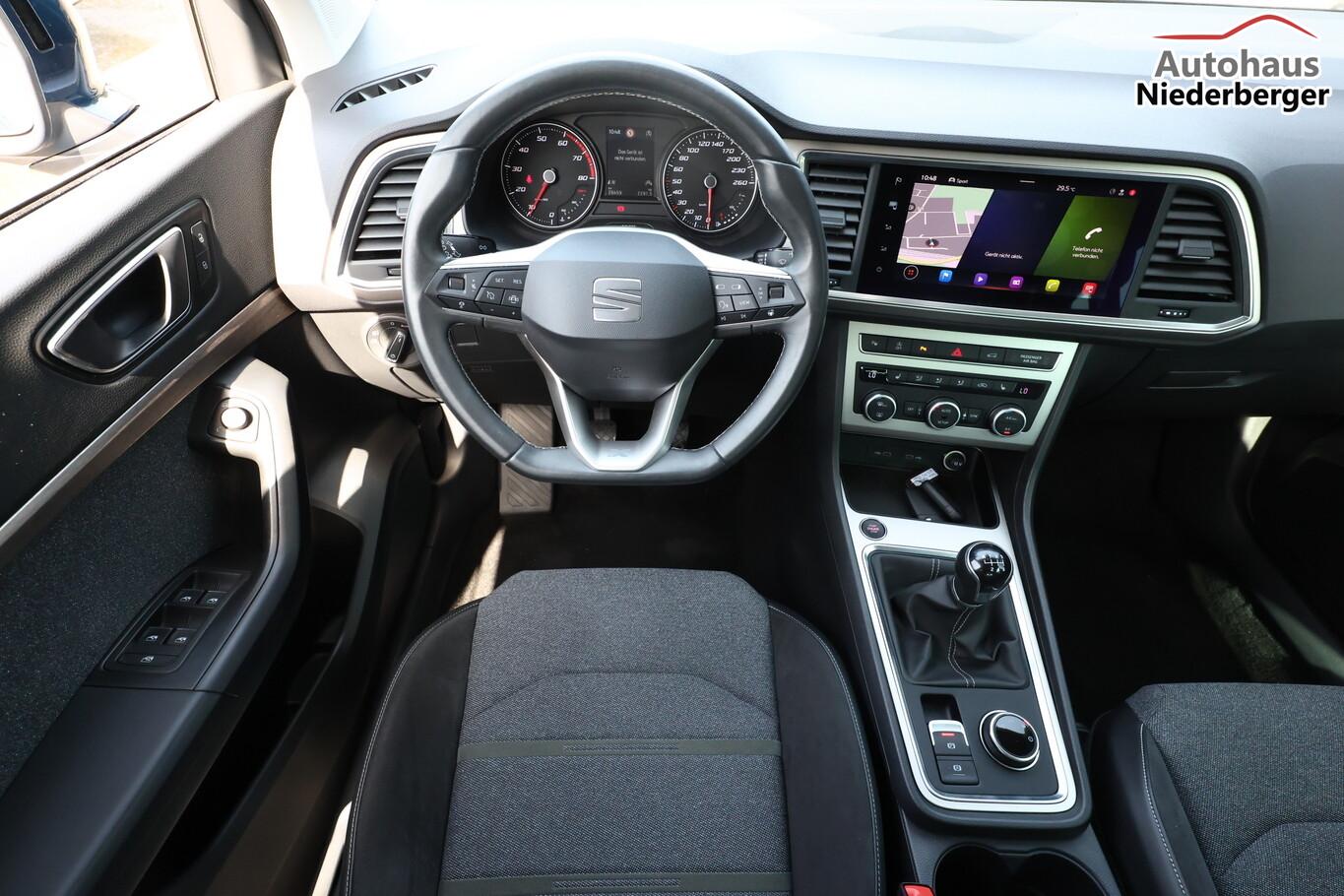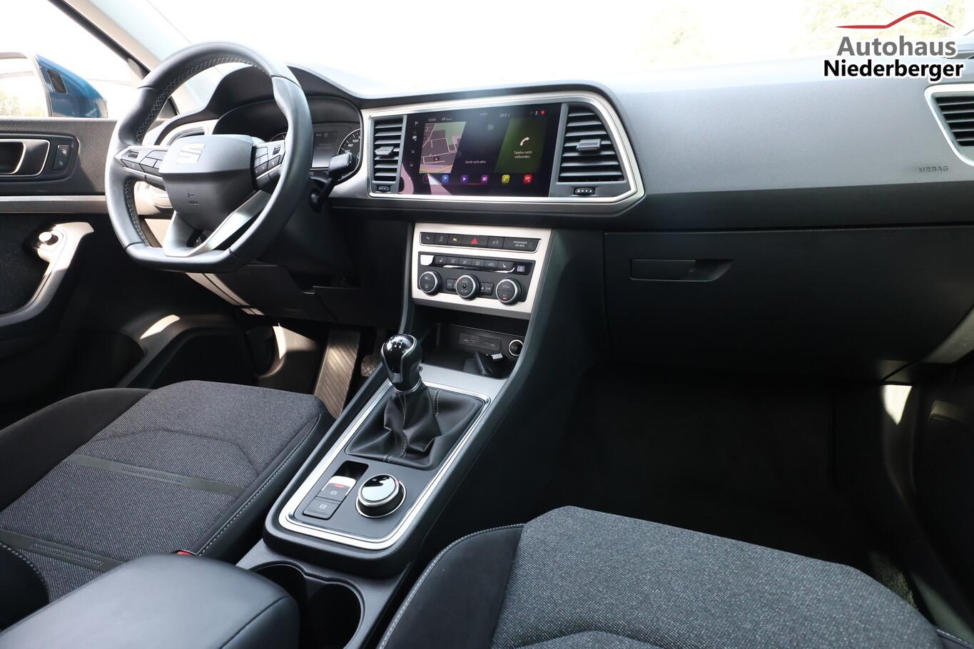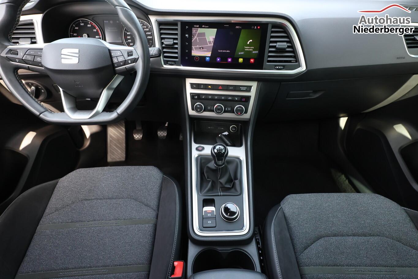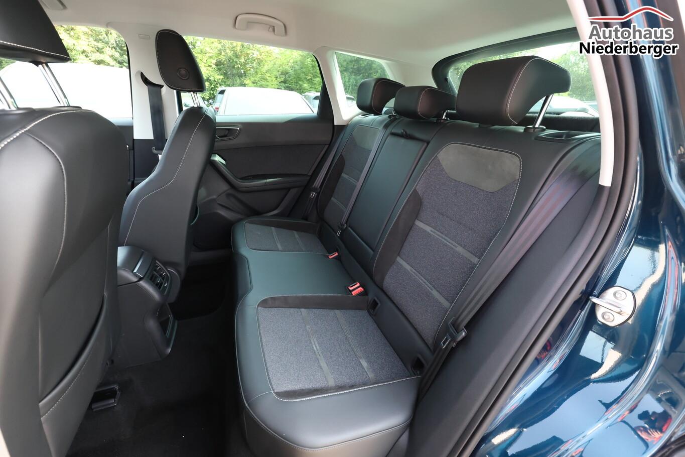 Fahrassistenz-System: Parklenkassistent mit Einparkhilfe vorn und hinten, Heckklappe/-Deckel elektr. betätigt (öffnen + schliessen), 2xUSB-C vorne und 2xUSB-C hinten (nur mit Ladefunktion), Ablagefach unter Fahrersitz, Adaptive Geschwindigkeitsregelanlage (ACC), Außenspiegel elektrisch anklappbar und beheizt, inkl. Welcome Light, Chromverzierungen im Innenraum, Dachreling silber, Fahrassistenz-System: Ausstiegswarnung, Fahrassistenz-System: Fernlichtassistent, Fahrassistenz-System: Pre-Crash System, Fahrassistenz-System: Spurhalteassistent, Fahrassistenz-System: Spurwecheslassistent, Fahrassistenz-System: Verkehrszeichenerkennung, Fahrtassistenz-System: ECO Funktion, Fahrtassistenz-System: Fahrprofilauswahl, Freisprechfunktion, Full Link (MirrorLink, Apple CarPlay und Android Auto), Leichtmetallfelgen 18 Zoll, Lenkrad heizbar, Mittelarmlehne vorne inkl Mittelkonsole Stauraum, Becherhalter, Navigationssystem 9,2 Zoll Display, Radgröße: 215 / 50 R18, Radioempfang DAB, Rückenlehne geteilt mit Mittelarmlehne, SEAT Connect, Sitzheizung vorn, Design-Paket Exterieur, silber (Chromleisten an Seitenfenstern / Dachreling silber), Innenraumlicht-Paket LED (Ambiente-Beleuchtung LED / Fußraumbeleuchtung vorn LED), Licht- und Sicht-Paket (Innenspiegel mit Abblendautomatik / Licht- und Regensensor / Lichtassistent (Coming Home, Leaving Home)), SEAT Media-System Plus (Audiosystem mit Touchscreen-Farbdisplay / Mobile Online Dienste Seat Connect / Radioempfang digital (DAB+) / USB-Schnittstelle vorn (2-fach, Typ C)), Bluetooth-Schnittstelle mit Freisprecheinrichtung integriert (Bluetooth Audio-Streaming), Scheinwerfer Voll-LED (Leuchtweitenregelung automatisch), 3. Bremsleuchte, 8 Lautsprecher, Ablagetasche an Vordersitzlehnen, Außenspiegel Wagenfarbe, Einstiegsleisten beleuchtet, Gepäckraumabdeckung / Rollo, Karosserie: 5-türig, Kofferraumbeleuchtung, Lendenwirbelstütze Sitz vorn links, verstellbar, Lendenwirbelstütze Sitz vorn rechts, verstellbar, Motor 1,5 Ltr. - 110 kW 16V TSI ACT, Otto-Partikelfilter (OPF), Radstand 2638 mm, Reifen-Reparaturset, Schadstoffarm nach Abgasnorm Euro 6d, Schalt-/Wählhebelgriff Leder, Sitz vorn links höhenverstellbar, Sitz vorn rechts höhenverstellbar, Sitzbezug / Polsterung: Stoff, Sonnenblende links mit Spiegel (beleuchtet), Sonnenblende rechts mit Spiegel (beleuchtet), Steckdose (12V-Anschluß) vorn, USB-Ladeanschlüsse (2-fach, Typ C) für 2.Sitzreihe, Anti-Blockier-System (ABS), Antriebs-Schlupfregelung (ASR), Antriebsart: Frontantrieb, Elektron. Querdifferentialsperre (XDS), Wegfahrsperre (elektronisch), Getriebe 6-Gang, Klimaanlage Climatronic 2-Zonen, Airbag Beifahrerseite abschaltbar, Airbag Fahrer-/Beifahrerseite, Fensterheber elektrisch vorn + hinten mit Komfortschaltung, Isofix-Aufnahmen für Kindersitz, Knieairbag Fahrerseite, Kopf-Airbag-System, Rücksitzlehne geteilt/klappbar (1/3-2/3), Schließ-/Startsystem Kessy, Seitenairbag, Seitenscheiben hinten und Heckscheibe abgedunkelt, Bordcomputer, Geschwindigkeits-Regelanlage (Tempomat), Rückfahrkamera, Lenkrad (Sport/Leder) mit Multifunktion, Servolenkung elektronisch gesteuert (Servotronic), Außenspiegel elektr. verstell-, heiz- und anklappbar mit Spiegelabsenkung, Blinkleuchten LED in Außenspiegel integriert, Heckleuchten LED mit dynamischem Blinklicht, Nebelscheinwerfer LED mit Abbiegelicht, Tagfahrlicht LED, Fahrassistenz-System: Müdigkeitserkennung, Fahrassistenz-System: Umfeldbeobachtungssystem (Front assist) mit City-Notbremsfunktion, Reifenkontroll-Anzeige, Start/Stop-Anlage