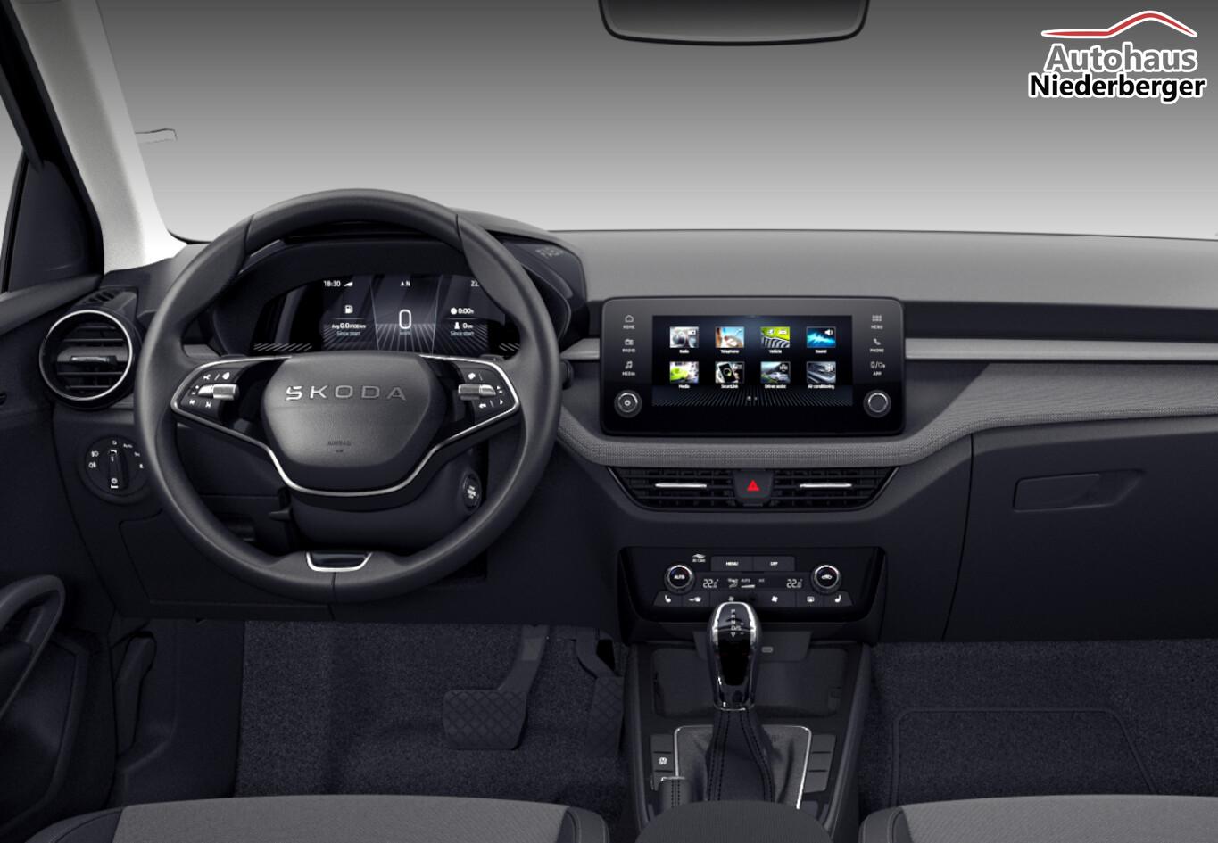 LM-Felgen 5,5x15 (Rotare Aero), Klimaanlage Climatronic 2-Zonen, Seitenscheiben hinten und Heckscheibe abgedunkelt (SunSet), Fahrassistenz-System: Verkehrszeichenerkennung, Innenspiegel mit Abblendautomatik, Keyless Start, Kombiinstrument digital (8 Zoll), Kraftstofftank: 50 Ltr., Navigation in Verbindung mit dem Smartphone (über Apple Carplay / Android Auto /...), Reifen 185/65 R15, Rückfahrkamera, Rücksitzlehne geteilt/klappbar (60:40), Wischwasserstand-Anzeige, Zentralverriegelung mit Fernbedienung, Innenausstattung: Loft (Innenausstattung: Dekoreinlagen Grau (Metall-Optik) / Innenausstattung: Dekoreinlagen Silber / Innenausstattung: schwarz / grau), Sitz vorn rechts höhenverstellbar (Lendenwirbelstütze Sitz vorn links / Lendenwirbelstütze Sitz vorn rechts), Fahrassistenz-System: Spurhalteassistent (Lane Assist) (Frontkamera), 6 Lautsprecher, Außenspiegel Wagenfarbe, Bremsenergierückgewinnung, Brillenfach, Gepäck-/Laderaumabdeckung, Infotainment-System mit 8,2" Display, Karosserie: 5-türig, Motor 1,0 Ltr. - 85 kW TSI, Otto-Partikelfilter (OPF), Radioempfang digital (DAB+), Schalt-/Wählhebelgriff Leder, Sitz vorn links höhenverstellbar, Sitzbezug / Polsterung: Stoff Style schwarz, Sonnenblende links mit Spiegel, Sonnenblende rechts mit Spiegel, Türgriffe außen Wagenfarbe, Freisprechanlage Telefon mit Bluetooth, USB-Schnittstelle vorn (2-fach, Typ C), Wireless SmartLink, Anti-Blockier-System (ABS), Antriebs-Schlupfregelung (ASR), Elektron. Stabilitäts-Programm (ESP), Wegfahrsperre, Getriebe 7-Gang - Doppelkupplungsgetriebe DSG, Airbag Fahrer-/Beifahrerseite, Fensterheber elektrisch hinten, Fensterheber elektrisch vorn, Isofix-Aufnahmen für Kindersitz an Beifahrersitz, Isofix-Aufnahmen für Kindersitz an Rücksitz, Kopf-Airbag-System, Mittelarmlehne vorn, Seitenairbag vorn, Sitzheizung vorn, Fahrassistenz-System: Auffahrwarnsystem mit City-Notbremsfunktion (Frontradar-Assistent), Fahrassistenz-System: Berganfahr-Assistent (Hill-Holder), Geschwindigkeits-Regelanlage (Tempomat) inkl. Geschwindigkeits-Begrenzeranlage, Lenkrad (Leder) mit Multifunktion und Schaltfunktion, Servolenkung, Außenspiegel elektr. verstell- und heizbar, Fahrassistenz-System: Einschaltautomatik für Fahrlicht (Fahrlichtassistent), Heckleuchten LED, Lichtassistent (Coming Home, Leaving Home), Nebelscheinwerfer, Scheinwerfer LED, Tagfahrlicht LED, Einparkhilfe hinten, Fahrassistenz-System: Müdigkeitserkennung, Reifendruck-Kontrollsystem, Start/Stop-Anlage