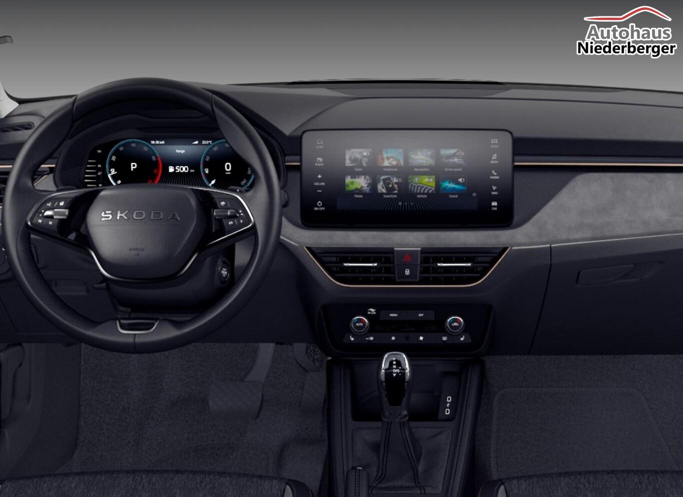 Infotainment-Paket (Kombiinstrument digital (virtual cockpit plus) / Sprachsteuerung für Infotainment-System / Audio-Navigationssystem mit Touchscreen-Farbdisplay), Interieur-Design-Paket Lodge (Ambiente-Beleuchtung LED in Rot / Ambiente-Beleuchtung LED in weiß / Innenausstattung: Dekoreinlagen Suedia Grau / Innenausstattung: Interieurleisten Schwarz / Copper / Innenausstattung: Luftausströmer Copper / Mittelarmlehne hinten / Sitzbezug / Polsterung: Stoff Lodge Schwarz / Grau / Copper), Lenkrad heizbar, 9,2"-Touchscreen, Außenspiegel elektr. anklappbar, mit Abblendautomatik Fahrerseite, Gurtwarnanlage, Innenausstattung: Dekoreinlagen Suedia Grau, Innenspiegel mit Abblendautomatik, Klimaanlage 2-Zonen Climatronic, Licht- und Regensensor, LM-Felgen 16" (Cortadero), Mittelarmlehne hinten, Reifen 205/60 R16, Schadstoffarm nach Abgasnorm Euro 6e (EU6 EA), Seitenscheiben hinten und Heckscheibe abgedunkelt (SunSet), Sitzheizung vorn, Phonebox (Induktionsladeschale für Smartphone), 3. Bremsleuchte LED, 8 Lautsprecher, Ablagetasche an Vordersitzlehnen, Außenspiegel Wagenfarbe, Bremsenergierückgewinnung, Brillenfach, Elektr. Bremskraftverteilung (EBV), Innenraumfilter: Staub- und Pollenfilter, Karosserie: 5-türig, Lendenwirbelstütze Sitz vorn links, Lendenwirbelstütze Sitz vorn rechts, Motor 1,0 Ltr. - 85 kW TSI, Netzprogramm im Kofferraum, Otto-Partikelfilter (OPF), Radioempfang digital (DAB+), Radstand 2651 mm, Schalt-/Wählhebelgriff Leder, Sitz vorn links höhenverstellbar, Steckdose (12V-Anschluß) im Koffer-/Laderaum, Türgriffe außen Wagenfarbe, Freisprechanlage Telefon mit Bluetooth, Innenspiegel mit USB-Anschluss (Typ C), USB-Ladeanschlüsse (2-fach, Typ C) für 2.Sitzreihe, USB-Schnittstelle vorn (2-fach, Typ C), Wireless SmartLink, Anti-Blockier-System (ABS), Bremsassistent, Antriebs-Schlupfregelung (ASR), Antriebsart: Frontantrieb, Elektron. Differentialsperre (EDS), Elektron. Querdifferentialsperre (XDS), Elektron. Stabilitäts-Programm (ESP), Getriebe 7-Gang - Doppelkupplungsgetriebe DSG, Airbag Beifahrerseite abschaltbar, Airbag Fahrer-/Beifahrerseite, Fensterheber elektrisch vorn + hinten, Fernbedienung für Zentralverriegelung, Isofix-Aufnahmen für Kindersitz an Beifahrersitz, Isofix-Aufnahmen für Kindersitz an Rücksitz, Kopf-Airbag-System, Rücksitzlehne geteilt/klappbar (1/3-2/3), Seitenairbag vorn, Zentralverriegelung, Fahrassistenz-System: Berganfahr-Assistent (Hill-Holder), Fahrassistenz-System: Verkehrszeichenerkennung, Geschwindigkeits-Regelanlage (Tempomat) inkl. Geschwindigkeits-Begrenzeranlage, Notrufsystem, Servolenkung, Außenspiegel elektr. verstell- und heizbar, Heckleuchten LED mit dynamischem Blinklicht, Lichtassistent (Coming Home, Leaving Home), Nebelscheinwerfer mit Abbiegelicht, Scheinwerfer LED, Tagfahrlicht LED, Einparkhilfe hinten, Fahrassistenz-System: Müdigkeitserkennung, Fahrassistenz-System: Spurhalteassistent (Lane Assist), Start-Stop-Knopf (Start/Stop-Anlage ohne Schlüssel), Start/Stop-Anlage