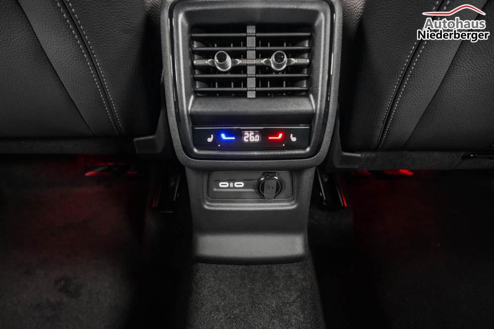 Beifahrersitz höhenverstellbar, Fahrersitz höhenverstellbar, Sport-Lederlenkrad, Lendenwirbelstütze, Mittelarmlehne vorne, Sitzbezug Stoff, Sport-Komfortsitze vorne, Gepäckraumabdeckung, geteilt umklappbare Rücksitzlehne, Lenkrad höhenverstellbar, Ambiente-Beleuchtung, Elektrisch verstellbarer Fahrersitz mit Memoryfunktion, Beheizbares Lenkrad, Multifunktionslenkrad, Isofix, Isofix Beifahrersitz, 19 Zoll Alufelgen, Dachreling schwarz, Stoßfänger in Wagenfarbe, Türgriffe in Wagenfarbe, ABS, Alarmanlage, Außenspiegel elektrisch einstell-/anklappbar, Fensterheber elektrisch, Kopfairbags vorne, Seitenairbags vorne, Servolenkung, Sitzheizung vorne, ESP, Wegfahrsperre, Zentralverriegelung mit Funk, Außenspiegel beheizbar, Beifahrerairbag, Fahrerairbag, Partikelfilter, Parkpilot hinten, Parkpilot vorne, Reifendruckkontrolle, Regensensor, Lichtsensor, Digital Cockpit, Anhängekupplung schwenkbar, Tempomat Abstand ACC, Notbremsassistent, Spurhalteassistent, Totwinkelassistent, Verkehrszeichenerkennung, Multipler Matrix-Beam LED-Scheinwerfer, LED-Tagfahrlicht, Kurvenlicht, Pannenset, Rückfahrkamera, Elektrische Heckklappe, Keyless Advanced - Schlüsselloses Schließ- und Startsystem, StartStopSystem, Sitzheizung hinten, Innenspiegel automatisch abbl., Berganfahrassistent, Müdigkeitswarnsystem, Notrufsystem, Schaltwippen, Klimaautomatik 3-Zonen, Geschwindigkeitsbegrenzer, Android Auto, Apple Carplay, Freisprecheinrichtung, Induktionsladestation, Sprachsteuerung, Touchscreen, USB Typ-C, Radio DAB, Bluetooth, Bordcomputer, Navigationssystem, Emergency Assist, Stauassistent, Wired and Wireless App-Connect, Ausweichunterstützung mit Abbiegeassistent, Klimakomfortscheibe, 8 Lautsprecher, LED-Rückleuchten,