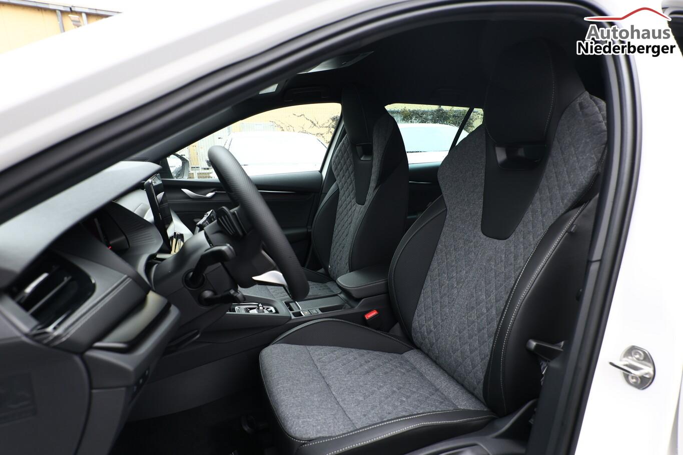 Licht- und Sicht-Paket (Leuchtweitenregelung automatisch / Abbiege- und Allwetterlicht / Schlechtwetter-Licht / Fahrassistenz-System: Dynamischer Fernlichtassistent (Dynamic Light Assist) / Matrix-LED-Scheinwerfer / Scheinwerfer-Reinigungsanlage (SRA)), Ambientebeleuchtung, Diebstahl-Warnanlage mit Innenraumüberwachung und Abschleppschutz, Fahrassistenz-System: Spurwechselassistent, Fahrassistenz-System: Stau- und Notfallassistent, Garantieverlängerung 1 Jahr/ 60.000 KM, Gepäckraumabdeckung, Kindersicherung elektr. betätigt, Kombiinstrument digital (virtual cockpit), Komfortöffnung für elektr. Heckklappe/-Deckel, Lendenwirbelstützen vorn, Licht- und Regensensor, LM-Felgen 7x17, Mittelarmlehne hinten, Navigationssystem inkl. 13"-Touchscreen, Sprachsteuerung, USB-Schnittstelle, Reifen 205/55 R17, Schließ-/Startsystem Kessy mit Safesicherung, Seitenairbag vorn, Seitenscheiben hinten und Heckscheibe abgedunkelt (SunSet), Serviceintervall 30.000 km oder 2 Jahre, Sitze vorn höhenverstellbar, Sportsitze vorn, Umfeldbeleuchtung, Fahrassistenz-Paket: Travel Assist (Fahrassistenz-System: Autom. Distanzregelung (pACC) mit vorausschauender Geschw.-Regelung / Fahrassistenz-System: aktiver Spurhalteassistent (Lenkunterstützung)), Motor 1,5 Ltr. - 110 kW 16V TSI mHEV Mild-Hybrid (DXDB) (Mild-Hybrid 110 kW (Motor 1,5 Ltr. - 110 kW TSI mHEV)), 3-Punkt-Sicherheitsgurte hinten, 8 Lautsprecher, Ablagefächer (Gepäck-/Laderaum), Dachreling schwarz, hochglänzend, Doppeltonfanfare, Einstiegsleisten (Aluminium-Design), Fahrassistenz-System: Abbiegebremsfunktion und Ausweichunterstützung, Fensterzierleisten schwarz, hochglänzend, Fußraumbeleuchtung vorn und hinten, Heckscheibenwischer, Induktionsladeschale für Smartphone, Innenspiegel mit Abblendautomatik, Karosserie: 5-türig, Kofferraumbeleuchtung, Lehnenentriegelung der Rücksitzlehne im Kofferraum, Motor-Schleppmoment-Regulator (MSR), Parkbremse elektronisch, Progressivlenkung, Radioempfang digital (DAB+), Sonnenblenden mit Spiegel (LED-Beleuchtung), Steckdose (12V-Anschluß) im Koffer-/Laderaum, Vorbereitung für Alkohol-Wegfahrsperre (Alcolock), Warnanlage für Sicherheitsgurte hinten, Warnanlage für Sicherheitsgurte, Fahrer-/Beifahrerseite, Freisprechanlage Telefon mit Bluetooth, Wireless SmartLink, Anti-Blockier-System (ABS), Antriebs-Schlupfregelung (ASR), Antriebsart: Frontantrieb, Elektron. Querdifferentialsperre (XDS), Elektron. Stabilitäts-Programm (ESP), Sport-Fahrwerk, Getriebe 7-Gang - Doppelkupplungsgetriebe DSG, Klimaanlage Climatronic 2-Zonen, Airbag Beifahrerseite abschaltbar, Airbag Fahrer-/Beifahrerseite, Fensterheber elektrisch vorn + hinten, Isofix-Aufnahmen für Kindersitz an Beifahrersitz und Rücksitze außen (inkl. Top Tether), Knieairbag Fahrerseite, Kopf-Airbag-System, Mittelarmlehne vorn, Rücksitzlehne geteilt/klappbar, Seitenairbag vorn mitte (Center-Airbag), Sitzbezug / Polsterung: Stoff/Kunstleder Sportline schwarz, Sitzheizung vorn, Fahrassistenz-System: Fahrprofilauswahl, Fahrassistenz-System: Auffahrwarnsystem mit City-Notbremsfunktion (Frontradar-Assistent), Fahrassistenz-System: Berganfahr-Assistent (Hill-Holder), Fahrassistenz-System: Intelligente Geschwindigkeitsanpassung (ISA) inkl. Speed-Limiter, Fahrassistenz-System: Verkehrszeichenerkennung, Frontkamera, Rückfahrkamera, Lenkrad (Sport/Leder - 3-Speichen, unten abgeflacht) mit Multifunktion und Schaltfunktion, Servolenkung elektronisch (Servotronic), Außenspiegel elektr. anklappbar, Außenspiegel elektr. verstell- und heizbar, Außenspiegel mit Abblendautomatik, links, Heckleuchten LED (Kristallglas-Optik), Einparkhilfe vorn und hinten, Fahrassistenz-System: Kreuzungs-Assistent (Crossroad Assist), Fahrassistenz-System: Müdigkeitserkennung, Reifendruck-Kontrollsystem