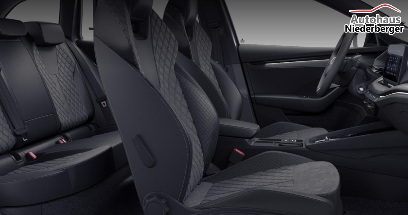 Anhängerkupplung Vorbereitung, Ambiente und Umfeldbeleuchtung, Außenspiegel links, rechts konvex, Diebstahl-Warnanlage mit Innenraumüberwachung und Abschleppschutz, eCall Notruf, Fahrassistenz-System: Spurwechselassistent, Heck -/ Seitenscheiben hinten abgedunkelt (SunSet), Kindersicherung elektrisch, Komfortöffnung für elektr. Heckklappe/-Deckel, Lendenwirbelstütze vorn, Licht- und Regensensor, LM-Felgen 18 Zoll (Vega Aero), Navigation in Verbindung mit dem Smartphone (über Apple Carplay / Android Auto /...), Reifen 225/45 R18, Schadstoffarm nach Abgasnorm Euro 6e (EU6 EA) , Service -/ Wartungsintervall 30000 km / 2 Jahre, Sport-Komfortsitze vorn, Start-/ Schließsystem Kessy, Start/Stopp Anlage, Fahrassistenz-Paket: Travel Assist (Fahrassistenz-System: Autom. Distanzregelung (pACC) mit vorausschauender Geschw.-Regelung / Fahrassistenz-System: aktiver Spurhalteassistent (Lenkunterstützung)), Motor 1,5 Ltr. - 110 kW 16V TSI mHEV Mild-Hybrid (DXDB) (Mild-Hybrid 110 kW (Motor 1,5 Ltr. - 110 kW TSI mHEV)), 3-Punkt-Sicherheitsgurte hinten, 8 Lautsprecher, Ablagefächer (Gepäck-/Laderaum), Dachreling schwarz, hochglänzend, Einstiegsleisten (Aluminium-Design), Fahrassistenz-System: Abbiegebremsfunktion und Ausweichunterstützung, Fensterzierleisten schwarz, hochglänzend, Fußraumbeleuchtung vorn und hinten, Gepäckraumabdeckung / Rollo, Induktionsladeschale für Smartphone, Innenausstattung: Dekoreinlagen Dark Carbon, Innenspiegel mit Abblendautomatik, Karosserie: 5-türig, Kofferraumbeleuchtung, Kombiinstrument digital (virtual cockpit plus), Leuchtweitenregelung, Parkbremse elektronisch, Progressivlenkung, Radioempfang digital (DAB+), Sonnenblenden mit Spiegel (LED-Beleuchtung), Steckdose (12V-Anschluß) im Koffer-/Laderaum, Vorbereitung für Alkohol-Wegfahrsperre (Alcolock), Warnanlage für Sicherheitsgurte hinten, Warnanlage für Sicherheitsgurte, Fahrer-/Beifahrerseite, 2 USB-Anschlüsse vorn und 2 USB-Ladeanschlüsse im Fond und USB-Ladeanschluß am Rückspiegel, Wireless SmartLink, Anti-Blockier-System (ABS), Antriebs-Schlupfregelung (ASR), Antriebsart: Frontantrieb, Elektron. Querdifferentialsperre (XDS), Getriebe 7-Gang - Doppelkupplungsgetriebe DSG, Klimaanlage Climatronic 2-Zonen, Airbag Beifahrerseite abschaltbar, Airbag Fahrer-/Beifahrerseite, Fensterheber elektrisch vorn + hinten, Isofix-Aufnahmen für Kindersitz an Beifahrersitz und Rücksitze außen (inkl. Top Tether), Knieairbag Fahrerseite, Kopf-Airbag-System, Mittelarmlehne vorn, Rücksitz geteilt / klappbar (60:40) Mittelarmlehne und Durchladefunktion, Seitenairbag vorn mitte (Center-Airbag), Sitzheizung vorn, Fahrassistenz-System: Fahrprofilauswahl, Fahrassistenz-System: Auffahrwarnsystem mit City-Notbremsfunktion (Frontradar-Assistent), Fahrassistenz-System: Berganfahr-Assistent (Hill-Holder), Fahrassistenz-System: Intelligente Geschwindigkeitsanpassung (ISA) inkl. Speed-Limiter, Fahrassistenz-System: Verkehrszeichenerkennung, Rückfahrkamera, Lenkrad (Sport/Leder - 3-Speichen, unten abgeflacht) mit Multifunktion und Schaltfunktion, Außenspiegel elektr. anklappbar, Außenspiegel elektr. verstell- und heizbar, Außenspiegel mit Abblendautomatik, links, Fahrassistenz-System: Fernlichtassistent, Heckleuchten LED (Kristallglas-Optik), Scheinwerfer LED, Einparkhilfe vorn und hinten, Fahrassistenz-System: Kreuzungs-Assistent (Crossroad Assist), Fahrassistenz-System: Müdigkeitserkennung, Reifendruck-Kontrollsystem