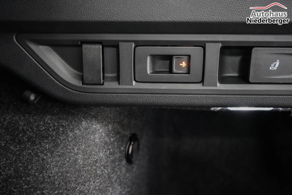 Beifahrersitz höhenverstellbar, Fahrersitz höhenverstellbar, Lederlenkrad, Lendenwirbelstütze, Mittelarmlehne vorne, Sitzbezug Stoff, Sportsitze, Gepäckraumabdeckung, geteilt umklappbare Rücksitzlehne, Lenkrad höhenverstellbar, Ambiente-Beleuchtung, Multifunktionssportlenkrad, Isofix, Isofix Beifahrersitz, abgedunkelte Scheiben, 18 Zoll Alufelgen Vega Aero schwarz, Dachreling schwarz, ABS, Alarmanlage, Außenspiegel elektrisch anklappbar, Fensterheber elektrisch, Klimaautomatik, Kopfairbags, Seitenairbags, Servolenkung, Sitzheizung, ESP, Wegfahrsperre, Zentralverriegelung mit Funk, Außenspiegel beheizbar, Beifahrerairbag, Fahrerairbag, Parkpilot hinten, Parkpilot vorne, Reifendruckkontrolle, Regensensor, Lichtsensor, Digitales Kombiinstrument, Anhängekupplung schwenkbar, Tempomat Abstand ACC, Fernlichtassistent, Spurhalteassistent, Totwinkelassistent, Verkehrszeichenerkennung, LED-Scheinwerfer, Tagfahrlicht, Kurvenlicht, Pannenset, Rückfahrkamera, Elektrische Heckklappe inkl. Virtual Pedal, KeylessEntry, StartStopSystem, Innenspiegel automatisch abbl., Berganfahrassistent, Müdigkeitswarnsystem, Notrufsystem, Schaltwippen, Geschwindigkeitsbegrenzer, Android Auto, Apple Carplay, Freisprecheinrichtung, Induktionsladestation, Sprachsteuerung, USB Typ C, Radio DAB, Bluetooth inkl. Handykopplung, Bordcomputer, Radio-Navigationssystem, erweiterte Herstellergarantie 4 Jahre/60.000km, Wireless Smart Link, Emergency Assist,