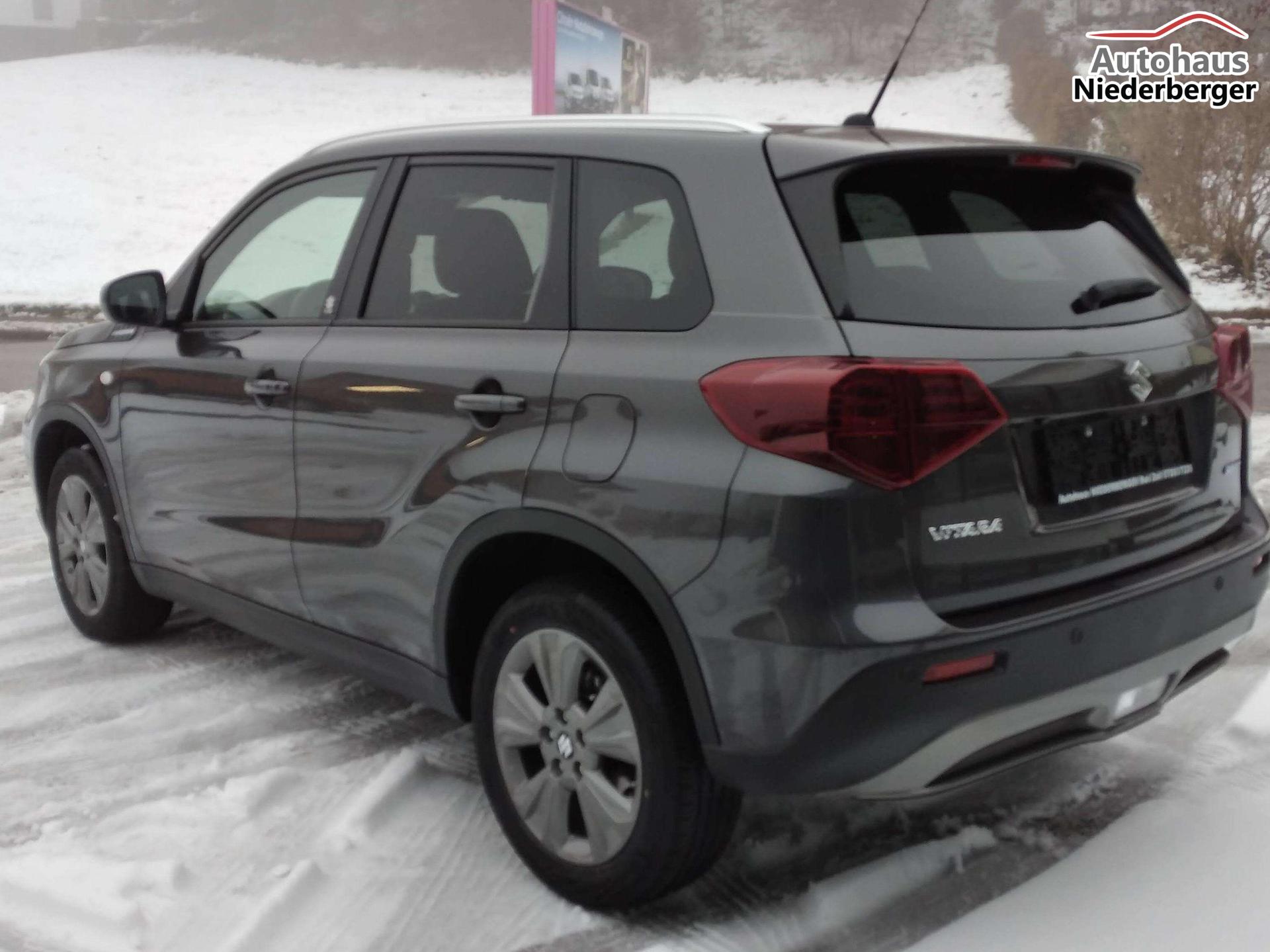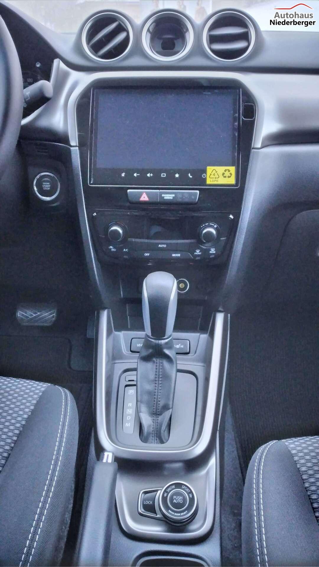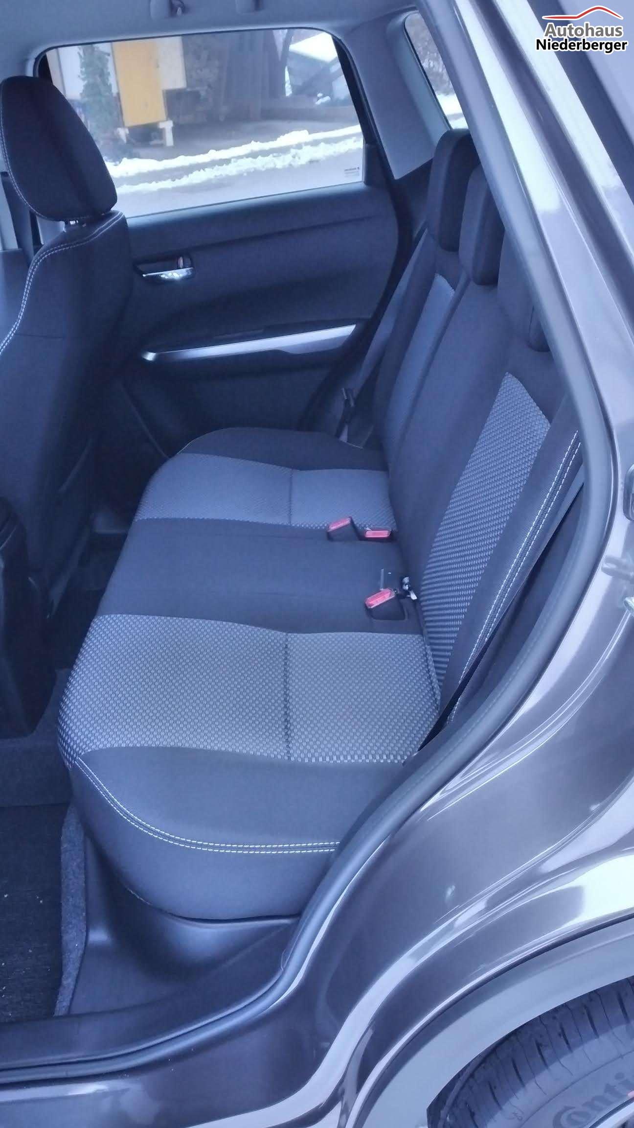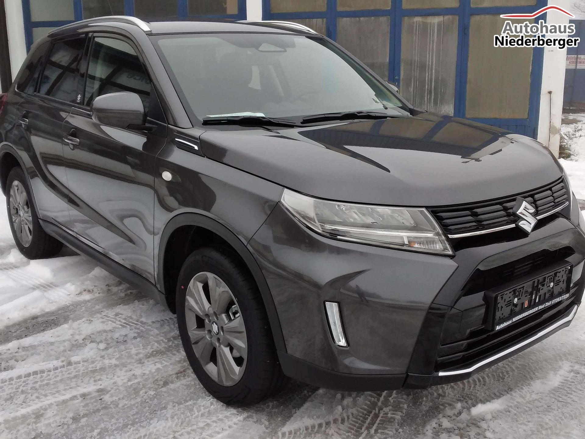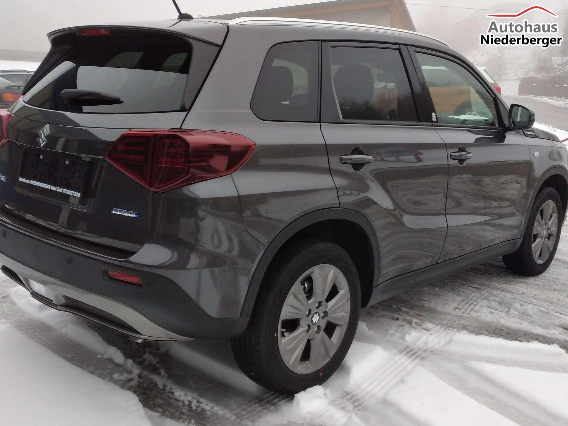 Mild Hybrid System, ALLGRIP SELECT Allradsystem,17"-Alufelgen lackiert (Bereifung 215/55 R17), Adaptiver Tempomat (ACC) mit Geschwindigkeitsbegrenzer und automatischer Abschaltung4,2" Farb-LCD Multifunktionsdisplay (Digitaluhr, Außentemperatur, Schaltpunktanzeige, Durchschnittsverbrauch, Momentanverbrauch, Reichweite, TPMS), 9" Audio-System mit Smartphone-Anbindung inkl. Navigation, Bluetooth®{{{*}}}{{{*}}}{{{*}}}{{{*}}}-Freisprecheinrichtung inkl. Lenkradbedienung und DAB Radio, Fensterheber vorne und hinten elektrischLED-Scheinwerfer mit integrierter Zierleiste in silber, Keyless Start, Klimaautomatik,Rückfahrkamera, Suzuki Connect (inkl. für 3 Jahre), Sitzheizung vorne (Fahrer und Beifahrer)ABS mit elektronischer Bremskraftverteilung (EBD), Elektronisches Stabilitätsprogramm (ESP©){{{*}}}{{{*}}}{{{*}}}, Start-Stopp-System, Fahrer Monitoring-System mit Müdigkeitserkennung (DMS)Dual Sensor Brake Support mit Fußgänger-, Radfahrer- und MotorraderkennungToter-Winkel Warner und Querverkehrswarner, Spurhalteassistent, VerkehrszeichenerkennungIntelligente Geschwindigkeitsassistenz, Berganfahrhilfe, E-Call System, Einparkhilfe hinten (4 Sensoren), 12V-Anschluss im Kofferraum, 6-Gang-Automatikgetriebe inkl. Gang-Anzeige