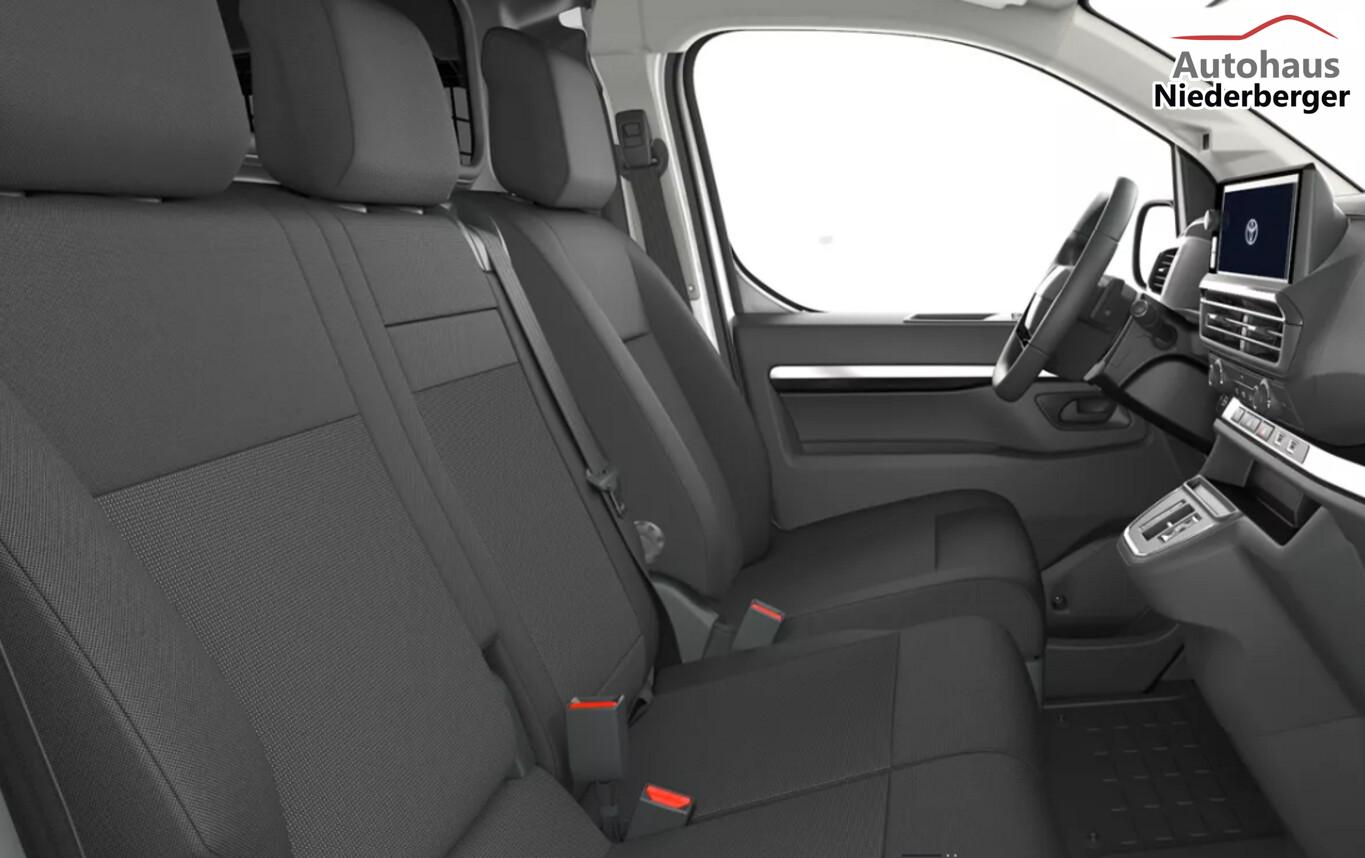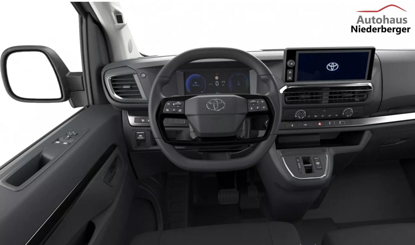 12V Steckdose, Adaptive Geschwindigkeits-Regelanlage (ACC), Anhängerkupplung Vorbereitung, Audiosystem Radio mit 10 Zoll Farb-Touchscreen, Beifahrerairbag deaktivierbar, Bluetooth Freisprecheinrichtung, Einschaltautomatik für Fahrlicht, Fahrersitz mit Armlehne, Garantie 3 Jahre oder 100.000 km, Gepäckraum beleuchtet, Handschuhfach beleuchtet, Heckflügeltüren mit 180° Öffnungswinkel, Kombiinstrument Digital 10 Zoll, Laderaumtrennwand mit Fenster, Laderaumverlängerung durch Toyota Smart Cargo auf 4.024mm, Lenkrad heizbar (Leder) mit Multifunktion, Navigation in Verbindung mit dem Smartphone (über Apple Carplay / Android Auto /...), Nebelscheinwerfer, Notrufsystem, Reifen 215/65 R16, Rückfahrkamera, Sicherheitsgurt Warnfunktion, Smartphone Schnittstelle Wireless Mirror Link (Apple CarPlay & Android Auto), Sprachsteuerung, Stahlfelgen 16 Zoll, Stoßfänger vorn und hinten schwarz, USB-Schnittstelle, Comfort-Paket (Klimaanlage / Fensterheber vorn elektr. mit Einklemmschutz / Zentralverriegelung mit Fernbedienung / Außenspiegel elektr. verstell- und heizbar / Außenspiegel heizbar), Sicht-Paket (Fahrassistenz-System: Fernlichtassistent (Abblendautomatik Fahrlicht, AHB) / Scheibenwischer mit Regensensor), Toyota Smart Cargo (Beifahrersitzbank hochklappbar (Durchlademöglichkeit)), Audiosystem: Radio (4 Lautsprecher / DAB-Tuner (Radioempfang digital)), Beifahrerdoppelsitz, Elektr. Bremskraftverteilung, Elektromotor 100 kW, Geschwindigkeits-Begrenzeranlage, Heckflügeltüren ohne Verglasung, HV-Batterie 75 kWh, Innenspiegel abblendbar, Karosserie/Aufbau: Kasten, Ladekabel mit Schukostecker (Mode 2), Ladekabel mit Typ 2-Stecker (Mode 3), Lendenwirbelstütze Sitz vorn links, Lenksäule (Lenkrad) verstellbar, Parkbremse elektrisch (EPB), Radstand 3275 mm, Reserverad in Fahrbereifung, Schiebetür Fahrgast-/Laderaum rechts, Sitz vorn links höhenverstellbar, Sitzausstattung: 3-Sitzer, Anti-Blockier-System (ABS), Bremsassistent, Fahrassistenz-System: Pre-Collision-System (PCS), Antriebsart: Frontantrieb, Elektron. Stabilitäts-Programm (VSC), Getriebe für Elektrofahrzeug, Airbag Fahrer-/Beifahrerseite, Bordcomputer, Verglasung getönt, Fahrassistenz-System: Berganfahrkontrolle (HAC), Fahrassistenz-System: Verkehrszeichenerkennung (RSA), Audio-/Radio-Fernbedienung am Lenkrad, Servolenkung elektrisch, Tagfahrlicht, Einparkhilfe hinten, Fahrassistenz-System: Müdigkeitserkennungs-Sensor, Fahrassistenz-System: Spurhalteassistent (LDA), Reifendruck-Kontrollsystem