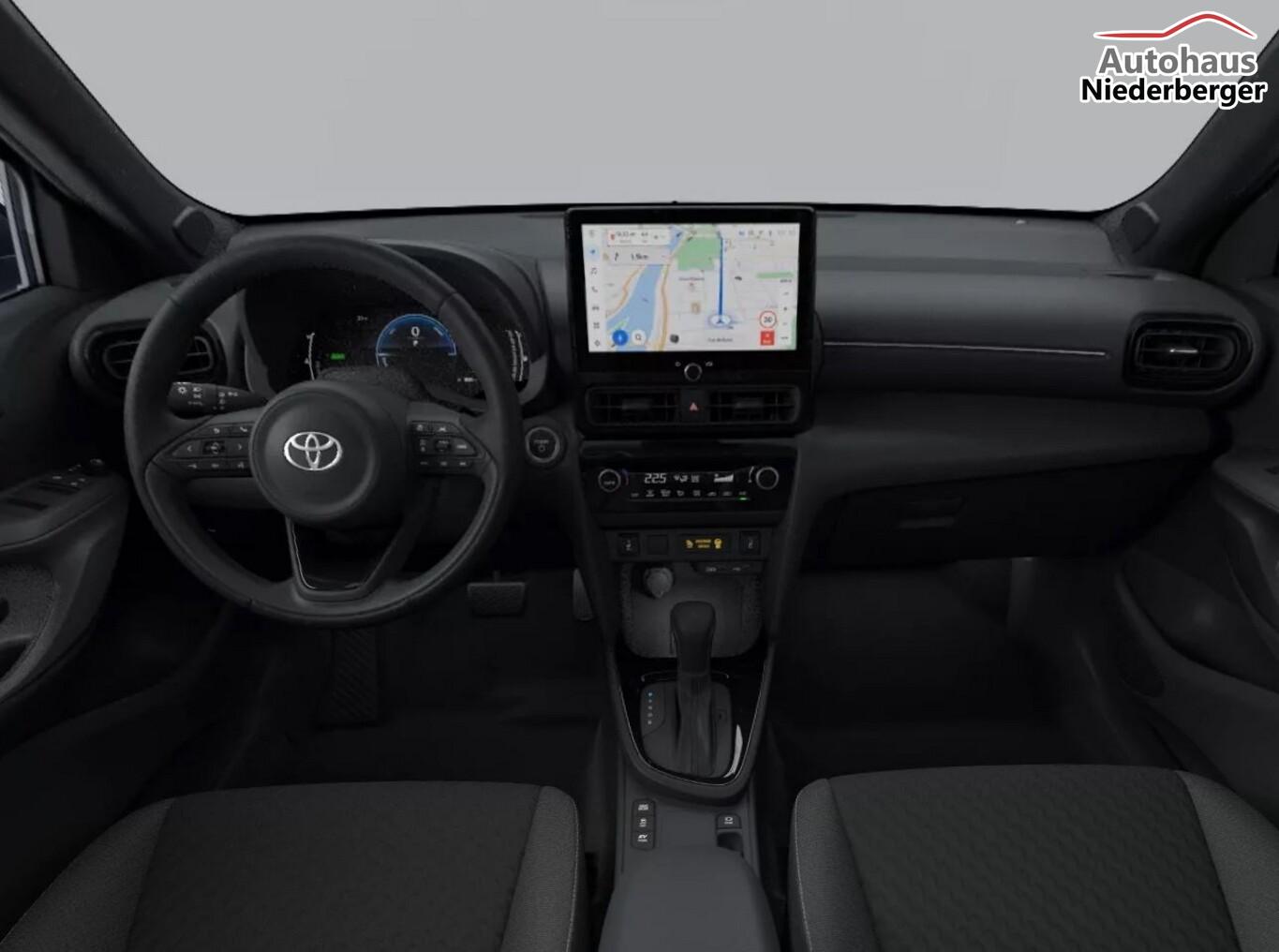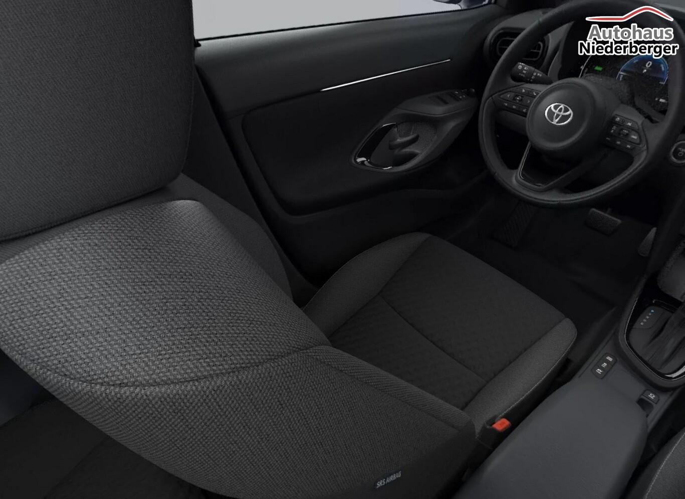 Adaptive Geschwindigkeits-Regelanlage (ACC), Airbag Beifahrerseite abschaltbar, Bluetooth-Freisprecheinrichtung, Dachhimmel schwarz, Einparkhilfe vorn und hinten, Fahrassistenz-System: Ausstiegsassistent, Fahrassistenz-System: Fernlichtassistent, Fahrassistenz-System: Notbremsassistent mit Fußgängererkennung, Fahrassistenz-System: Spur- & Stauverfolgungs-Assistent (LTA), Fensterzierleisten schwarz, Gepäckraumabdeckung, Getränkehalter vorn, Innenspiegel mit Abblendautomatik, Kindersicherung hinten, Klimaautomatik, Kofferraumboden höhenverstellbar, Kombiinstrument digital (7"), Lichtsensor, LM-Felgen 17", Mittelarmlehne vorn mit Ablagefach, Radioempfang digital (DAB), Reifen 215/55 R17, Rückfahrkamera, Rücksitzlehne geteilt/klappbar (60:40), Scheinwerfer LED, Smartphone-Schnittstelle (Apple CarPlay & Android Auto), Toyota Smart Connect Multimediasystem inkl. Cloud-Navigation, 6 Lautsprecher, USB-Schnittstelle (Typ C), Sprachsteuerung, Wegfahrsperre, Windschutzscheibe beheizbar entlang der Scheibenwischer, Zentralairbag vorn, Zentralverriegelung / Startanlage Smart-Key, Entry & Drive (Start-Stop-Knopf), Außenspiegel elektr. anklappbar (Außenspiegel automatisch elektr. anklappbar), Elektr. Bremskraftverteilung, Fahrassistenz-System: Rückfahr-Assistent mit automatischer Bremsfunktion, Fahrassistenz-System: Sicherheitssystem Toyota Connect mit automatischem Notruf (eCall), Geschwindigkeits-Begrenzeranlage, Hybrid 96 kW (Motor 1,5 Ltr. - 68 kW), Induktionsladeschale für Smartphone, Karosserie: 5-türig, Kopfstützen hinten, Lenkrad heizbar, Lenksäule (Lenkrad) verstellbar, Multimedia Display (10,5 Zoll), Parkbremse elektrisch (EPB), Radstand 2560 mm, Schalt-/Wählhebelgriff Leder, Sitz vorn links höhenverstellbar, Sitz vorn rechts höhenverstellbar, Sitzbezug / Polsterung: Stoff, Sonnenblenden mit Spiegel (beleuchtet), Steckdose (12V-Anschluß) in Mittelkonsole, Türgriffe außen Wagenfarbe, Warnanlage für Sicherheitsgurte hinten, Warnanlage für Sicherheitsgurte vorn, Anti-Blockier-System (ABS), Fahrassistenz-System: Pre-Collision-System (PCS), Antriebsart: Frontantrieb, Elektron. Stabilitäts-Programm mit Antriebs-Schlupfregelung (VSC mit TRC), Getriebe Automatik stufenlos - Multidrive ECVT, Airbag Fahrer-/Beifahrerseite, Fensterheber elektrisch vorn + hinten, Fernbedienung für Zentralverriegelung, Isofix-Kindersitz-System, Kopf-Airbag-System, Seitenairbag vorn, Seitenscheiben hinten und Heckscheibe dunkel getönt (Privacy Glass), Sitzheizung vorn, Zentralverriegelung mit Fernbedienung, Dachreling schwarz lackiert, Fahrassistenz-System: Berganfahrkontrolle (HAC), Fahrassistenz-System: Verkehrszeichenerkennung (RSA), Audiobedienung am Lenkrad, Lenkrad (Leder), Servolenkung elektrisch, Außenspiegel elektr. verstell- und heizbar, Autom. Begleitfunktion der Beleuchtung (Follow me home, FMH), Fahrassistenz-System: Totwinkel-Assistent (BLIS), Heckleuchten LED, Nebelscheinwerfer LED, Scheibenwischer mit Regensensor, Tagfahrlicht LED, Fahrassistenz-System: aktiver Spurhalteassistent (Lenkunterstützung), Fahrassistenz-System: Müdigkeitserkennungs-Sensor, Fahrassistenz-System: Notlenk-Assistent, Fahrassistenz-System: Spurwechselassistent, Reifendruck-Kontrollsystem