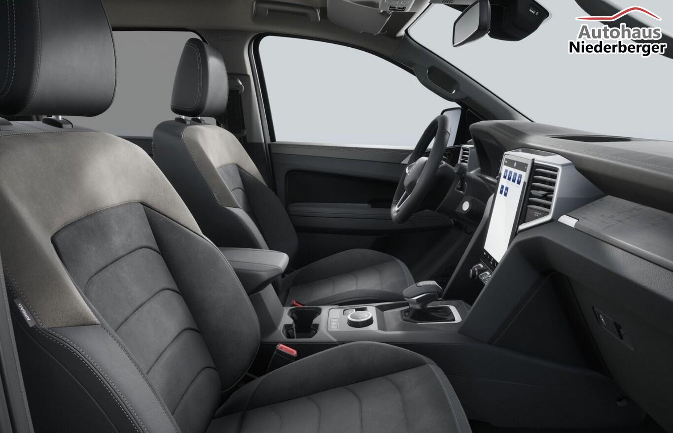 Heckleuchten LED, Unterfahrschutz Motor / Verteilergetriebe aus Stahl, für Tank aus Kunststoff, App-Connect (Apple CarPlay & Android Auto), Isofix-Aufnahmen für Kindersitz an Rücksitze, LM-Felgen 7,5x18, Navigation in Verbindung mit dem Smartphone (über Apple Carplay / Android Auto /...), Reifen 255/65 R18, Reserverad in Fahrbereifung (Leichtmetall), Schadstoffarm nach Abgasnorm Euro 6e (EU6 EA), Assistenz-Paket 3 (Leuchtweitenregelung automatisch / Fahrassistenz-System: Intelligente Adaptive Geschwindigkeitsregelanlage (ACC, Stop&Go) / Fahrassistenz-System: Verkehrszeichenerkennung / Rückfahrkamera (Rear View) / Fahrassistenz-System: Dynamische Fernlichtregulierung (Dynamic Light Assist) / Fahrassistenz-System: Fernlichtregulierung (Light Assist) / Matrix-LED-Scheinwerfer (IQ.Light) / Einparkhilfe vorn und hinten inkl. Auspark-Assistent / Fahrassistenz-System: Notbremsassistent Front assist mit Fußgänger- und Fahrraderkennung / Fahrassistenz-System: Spurhalteassistent (Lane Assist) inkl. Side Assist), Infotainment-Paket 3 (Antennen-Diversity / Digital Cockpit (Farbdisplay 12,3 Zoll) / Infotainment-System mit Touchscreen-Farbdisplay 12 Zoll / Lautsprecher (6) / Radioempfang digital (DAB+) / Klimaanlage Climatronic 2-Zonen), Vorbereitung für VW Connect (Vorbereitung Onlinedienste), Sitz-Paket ArtVelours (Fahrersitz elektrisch) (Sitz vorn links mit Kartentasche / Sitzbezug / Polsterung: Stoff Style / ArtVelours / Warnanlage für Sicherheitsgurte vorn und hinten / Sitz vorn links elektr. verstellbar 10-Wege, rechts manuell 8-Wege / Sitzheizung vorn), 2.Sitzreihe Sitzbank (3 Sitzplätze), 3-Punkt-Sicherheitsgurt hinten (3-fach), Ambiente-Beleuchtung weiß, Anhängersteckdose 13-polig, Armaturentafel Kunstleder, Außenspiegel und Türgriffe außen in Wagenfarbe, Bodenbelag: Teppich, Dachhimmel Stoff, grau, Diebstahlsicherung für Räder (Felgenschlösser), Fahrassistenz-System: Multikollisionsbremse (Multi Collision Brake), Federung Standard, Funkschlüssel / Handsender (2), Haltegriff A-Säule, Beifahrerseite, Handschuhfach abschließbar und beleuchtet, Heckklappe abschließbar über Zentralverriegelung (Pick-Up), Heckscheibe heizbar, Induktionsladeschale für Smartphone (Wireless Charging), Innenraumfilter: Staub- und Pollenfilter, Karosserie/Aufbau: Doppelkabine (Double-Cab), Karosserie/Aufbau: Pick-Up, Kopfstützen hinten (3-fach), Kühlergrill schwarz mit Chromleiste, Leseleuchten vorn und Brillenfach, Mittelarmlehne hinten, Motor 3,0 Ltr. - 177 kW V6 TDI, Parkbremse elektrisch, Radstand Standard, Schalt-/Wählhebelgriff Leder, Sicherheitsgurte hinten mit Gurtstraffer, Sicherheitsgurte vorn mit Gurtstraffer, höhenverstellbar, Sonnenblenden mit Spiegel (beleuchtet), Steckdose 120V / 230V in Mittelkonsole hinten und Ladefläche, Stoßfänger hinten schwarz unlackiert mit Chrom-Applikationen, Stoßfänger vorn Wagenfarbe, Türgriffe innen verchromt, USB-Ladeanschluß (1) am Innenspiegel, Anhängerkupplung (Kugelkopf abnehmbar), Anti-Blockier-System (ABS), Antriebsart: Allradantrieb, Differentialsperre (Hinterachse), Elektron. Stabilitäts-Programm (ESP) mit Bremskraftverstärker elektro-mechanisch, Wegfahrsperre (elektronisch), Getriebe Automatik - (10-Stufen), Airbag und Knieairbag Fahrer-/Beifahrerseite, Beifahrerairbag abschaltbar, Kindersitzerkennung, Fensterheber elektrisch vorn und hinten, Schließ-/Startsystem Keyless Access mit Safesicherung, Seitenairbag vorn mit Center-Airbag, Kopf-Airbag-Einheit vorn und hinten, Seitenscheiben hinten und Heckscheibe abgedunkelt, Verzurrösen auf Ladefläche / Laderaumboden, Zentralverriegelung, Frontscheibe Dämmglas, Notrufsystem, Lenkrad (Leder) mit Multifunktion, Außenspiegel elektr. verstell-, heiz- und anklappbar und Umfeldleuchte, Nebelscheinwerfer LED, Scheibenwischer mit Regensensor, Reifendruck-Kontrollsystem, Rußpartikelfilter, Start/Stop-Anlage