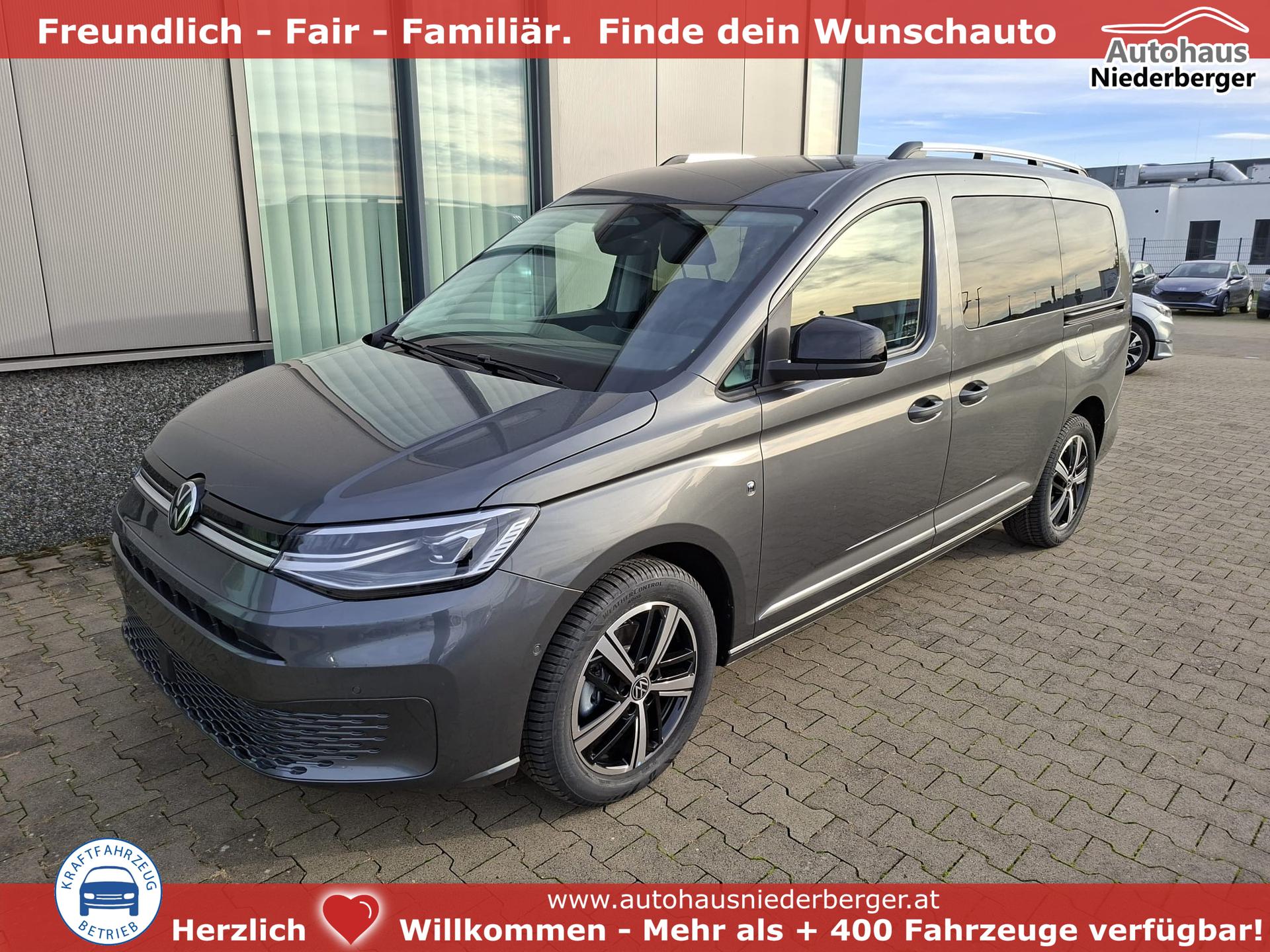 Volkswagen Caddy Style MAXI 7-SITZER 1.5 TSI 115PS DSG/AUTOMATIK, INDIUM-GRAU, 17" Alu/Ganzjahresreifen, Winterpaket, ACC-Tempomat, Toter-Winkel, ParkAssist, Parksensoren vo/hi, Rückfahrkamera, Radio Ready2Discover 10" + Wireless AppConnect, Climatronic, Abgedunkelte Scheiben