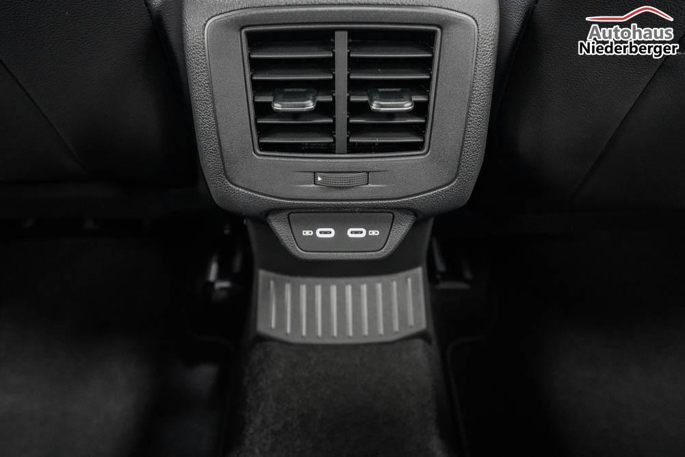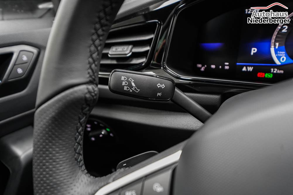 Beifahrersitz höhenverstellbar, Fahrersitz höhenverstellbar, Sport-Lederlenkrad, Lendenwirbelstütze vorne, Mittelarmlehne vorne, Sitzbezug Stoff, Sportsitze, geteilt umklappbare Rücksitzlehne, Lenkrad höhenverstellbar, Ambiente-Beleuchtung, Multifunktionslenkrad, Isofix, Beifahrersitz umklappbar, abgedunkelte Scheiben, 19 Zoll Alufelgen Misano, Dachreling schwarz, Außenspiegel in Schwarz, Türgriffe in Wagenfarbe, ABS, Außenspiegel elektrisch einstell-/anklappbar, Fensterheber elektrisch, Klimaautomatik, Kopfairbags, Seitenairbags, Servolenkung, Sitzheizung, ESP, Wegfahrsperre, Zentralverriegelung mit Funk, Außenspiegel beheizbar, Beifahrerairbag, Fahrerairbag, Parkpilot hinten, Parkpilot vorne, Reifendruckkontrolle, Regensensor, Lichtsensor, Digital Cockpit, Anhängekupplung abnehmbar, Tempomat Abstand ACC, Fernlichtassistent, Notbremsassistent, Spurhalteassistent, Verkehrszeichenerkennung, LED PLUS-Scheinwerfer, LED-Tagfahrlicht, Pannenset, Rückfahrkamera, Park-Assistent, Panoramadach, Elektrische Heckklappe Virtual Pedal, Keyless Access, StartStopSystem, Winterpaket, Innenspiegel automatisch abbl., Müdigkeitswarnsystem, Notrufsystem, Schaltwippen, Geschwindigkeitsbegrenzer, Android Auto, Apple Carplay, Freisprecheinrichtung, Induktionsladestation, USB Typ-C, Radio DAB, Bluetooth inkl. Handykopplung, Bordcomputer, Navigation Media, App-Connect Wireless, LED-Rückleuchten, Dachhimmel schwarz, Black Style Paket, 4 Jahre bis max. 80.000km Herstellergarantie,
