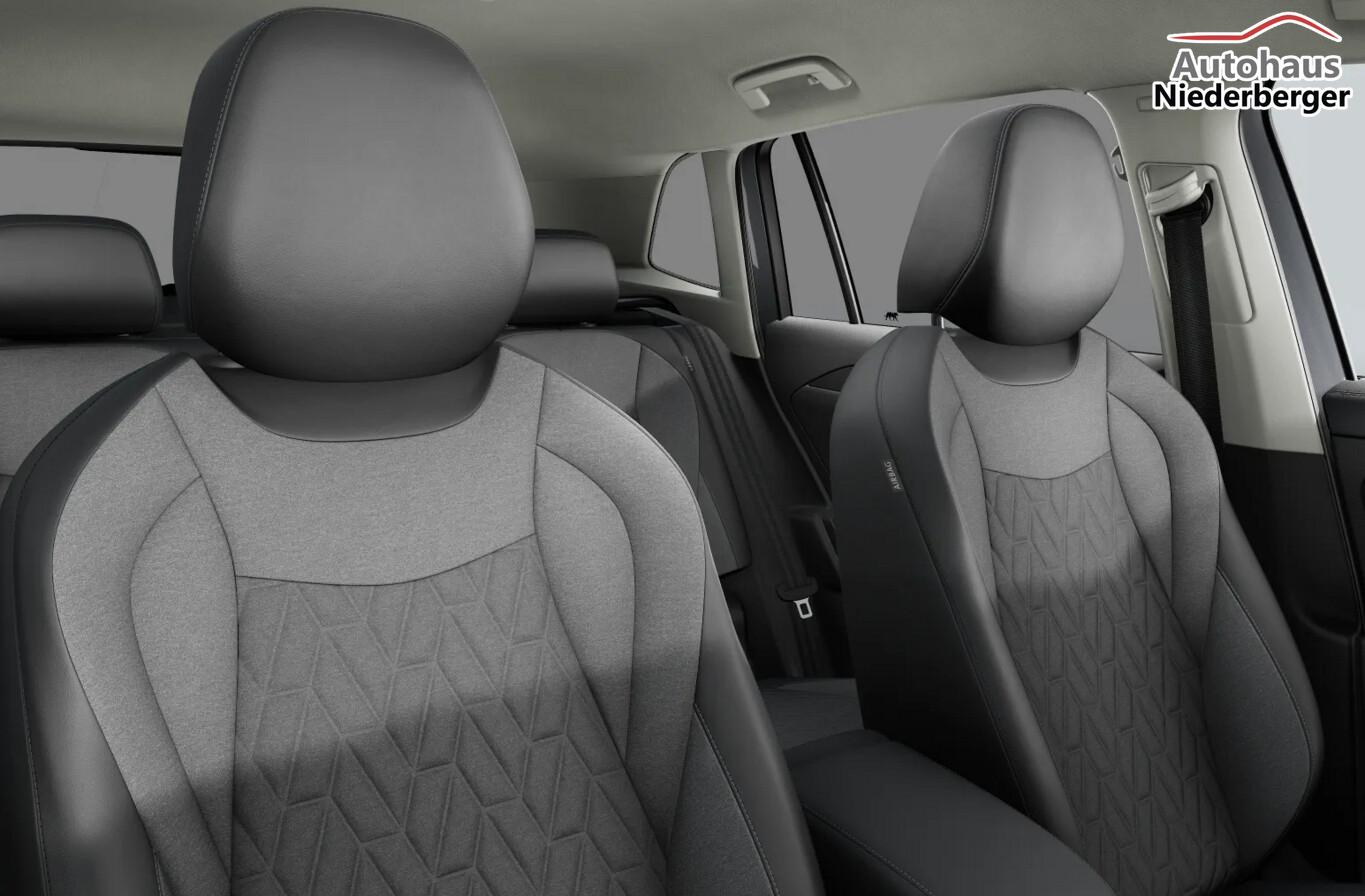 Scheinwerfer LED Plus (Ambiente-Beleuchtung (10 Farben, Armaturenbrett und Türverkleidung) / LED Lichtleiste zwischen Scheinwerfer und Türgriffschalen außen beleuchtet / Abbiege- und Allwetterlicht / Schlechtwetter-Licht / Heckleuchten LED in 3D-Optik / Leuchtweitenregelung automatisch und Dynamisches Kurvenlicht), Komfort-Paket inkl. Park-Assistent Park Assist Pro (Fahrassistenz-System: Memoryfunktion für Park Assist / Service-System: Intelligente Fahrzeugvernetzung (Car2X) / Schließ-/Startsystem Keyless Access mit Safesicherung / Kofferraumdeckel / Heckklappe elektr. betätigt (Schließen, sensorgesteuert öffnend, Fernentriegelung) / Fahrassistenz-System: Parklenkassistent (Park Assist Pro) inkl. Einparkhilfe / Diebstahl-Warnanlage (Innenraumüberwachung, Back-up-Horn, Abschleppschutz)), Design-Paket (Dachreling silber eloxiert), LM-Felgen 7,5x18 (Napoli, schwarz glanzgedreht) (Diebstahlsicherung für Räder (Felgenschlösser)), Winter-Paket inkl. Lenkradheizung (Sitzheizung vorn / Lenkrad heizbar (Leder) mit Multifunktion und Schaltfunktion), Reserverad als Notrad (gewichts- und platzsparend) (Bordwerkzeug und Wagenheber), Navigation in Verbindung mit dem Smartphone (über Apple Carplay / Android Auto /...), Reifen 235/55 R18, Seitenscheiben hinten und Heckscheibe abgedunkelt, Service-/Wartungsintervall 2 Jahre oder 30.000 km, App-Connect Wireless (Apple CarPlay, Android Auto), Audiosystem: Vorbereitung für spätere Freischaltung Navigationsfunktion, Außenspiegel asphärisch, links und konvex, rechts, Außenspiegel mit Umfeldleuchte und Projektionsfunktion, Außenspiegel und Türgriffe außen in Wagenfarbe, Bluetooth-Schnittstelle für Mobiltelefon, Digital Cockpit PRO (Instrumentenanzeige digital), Fahrassistenz-System: Abbiegebremsfunktion und Ausweichunterstützung, Fahrerlebnisschalter inkl. Innenraumerlebnis Atmospheres, Fußgänger-Schutzmaßnahmen erweitert, Geschwindigkeitsbegrenzer mit vorausschauender Geschw.-Regelung, Infotainment-System mit Touchscreen-Farbdisplay 12,9 Zoll, Innenspiegel mit Abblendautomatik, Karosserie: 5-türig, Kopfstützen hinten (3-fach), Lautsprecher (8), Lendenwirbelstützen vorn, pneumatisch verstellbar, Mild-Hybrid 110 kW (Motor 1,5 Ltr. - 110 kW eTSI), Mittelkonsole Standard, Mobile Online Dienste Vorbereitung We Connect und We Connect Plus, Nebelschlussleuchte einseitig und Rückfahrleuchten beidseitig, Nichtraucher-Paket, Otto-Partikelfilter (OPF), Parkbremse elektrisch mit Auto-Hold-Funktion, Radioempfang digital (DAB+), Radstand Standard, Sitzbezug / Polsterung: Stoff Life, Sitze vorn höhenverstellbar, Sitze: Komfortsitze vorn, Sitzlehne vorn rechts umklappbar, Sonnenblenden mit Spiegel (beleuchtet), Steckdose (12V-Anschluß) in Mittelkonsole vorn, Stoßfänger Life, Türgriffschalen außen beleuchtet, Warnanlage für Sicherheitsgurte vorn und hinten, Multimedia-Schnittstelle 2 x USB (Typ C, 45 W) vorn, Anti-Blockier-System (ABS), Antriebsart: Frontantrieb, Elektron. Stabilitäts-Programm (ESP) mit Bremskraftverstärker elektro-mechanisch, Getriebe 7-Gang - Doppelkupplungsgetriebe DSG, Klimaanlage Air Care Climatronic 3-Zonen inkl. Fondbedienung und Aktiv-Kombi-Filter, Airbag Fahrer-/Beifahrerseite, Beifahrerairbag abschaltbar, Isofix-Aufnahmen für Kindersitz an Beifahrersitz und Rücksitze außen (inkl. i-Size-Kindersitze), Mittelarmlehne vorn, Rücksitz geteilt / klappbar, verschiebbar, Mittelarmlehne und Durchladefunktion, Seitenairbag und Kopfairbag vorn und hinten, Center-Airbag vorn, Zentralverriegelung, Fahrassistenz-System: Fahrprofilauswahl, Frontscheibe Verbundglas, wärmedämmend, Fahrassistenz-System: Autom. Distanzregelung (ACC inkl. Stop&Go-Funktion), Fahrassistenz-System: Berganfahr-Assistent, Fahrassistenz-System: Verkehrszeichenerkennung, Rückfahrkamera (Rear View), Notrufsystem, Servolenkung elektro-mechanisch und geschwindigkeitsabhängig, Außenspiegel elektr. verstell-, heiz- und anklappbar, mit Memory, Automatische Fahrlichtschaltung mit Leaving Home / Coming-Home-Lichtfunktion, Tagfahrlicht LED, Fahrassistenz-System: Fernlichtregulierung (Light Assist), Scheibenwischer mit Regensensor, Fahrassistenz-System: Ablenkungs- und Müdigkeitserkennung, Fahrassistenz-System: Kreuzungs-Assistent, Fahrassistenz-System: Notbremsassistent Front assist mit Fußgänger- und Fahrraderkennung, Fahrassistenz-System: Spurhalteassistent (Lane Assist), Fahrassistenz-System: Spurwechselassistent (Side Assist) mit Auspark-Assistent und Ausstiegswarnung, Reifenkontroll-Anzeige, Start/Stop-Anlage mit Rekuperation