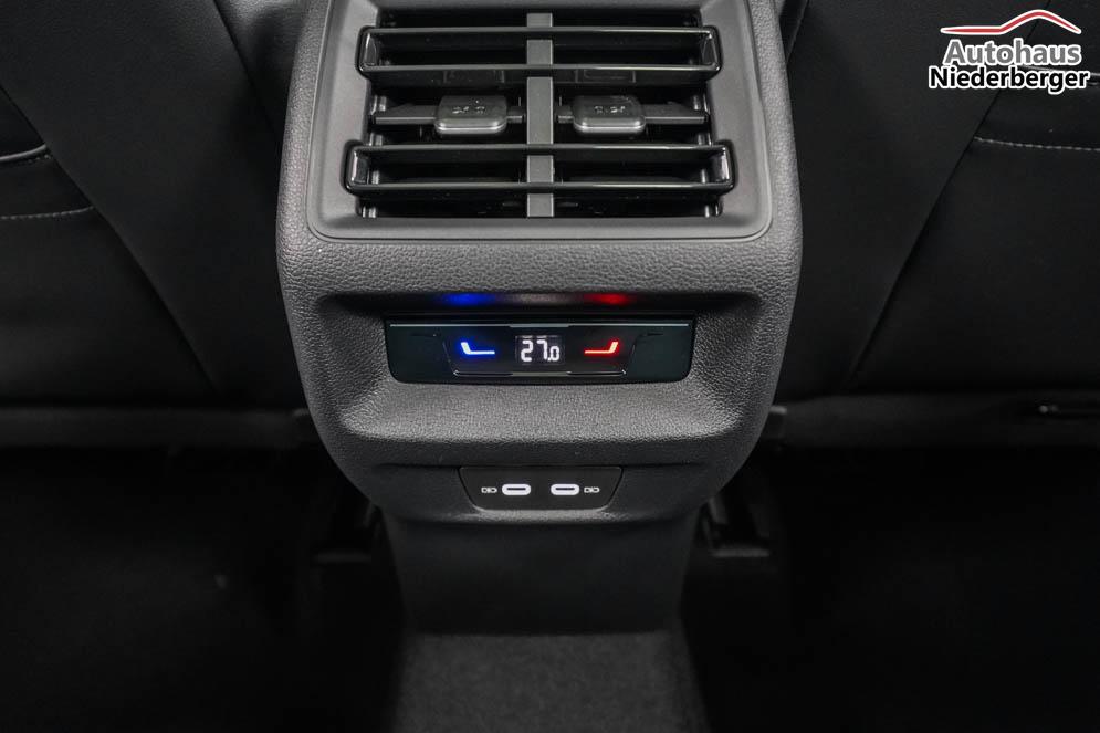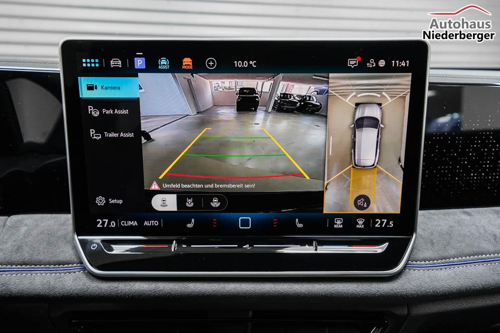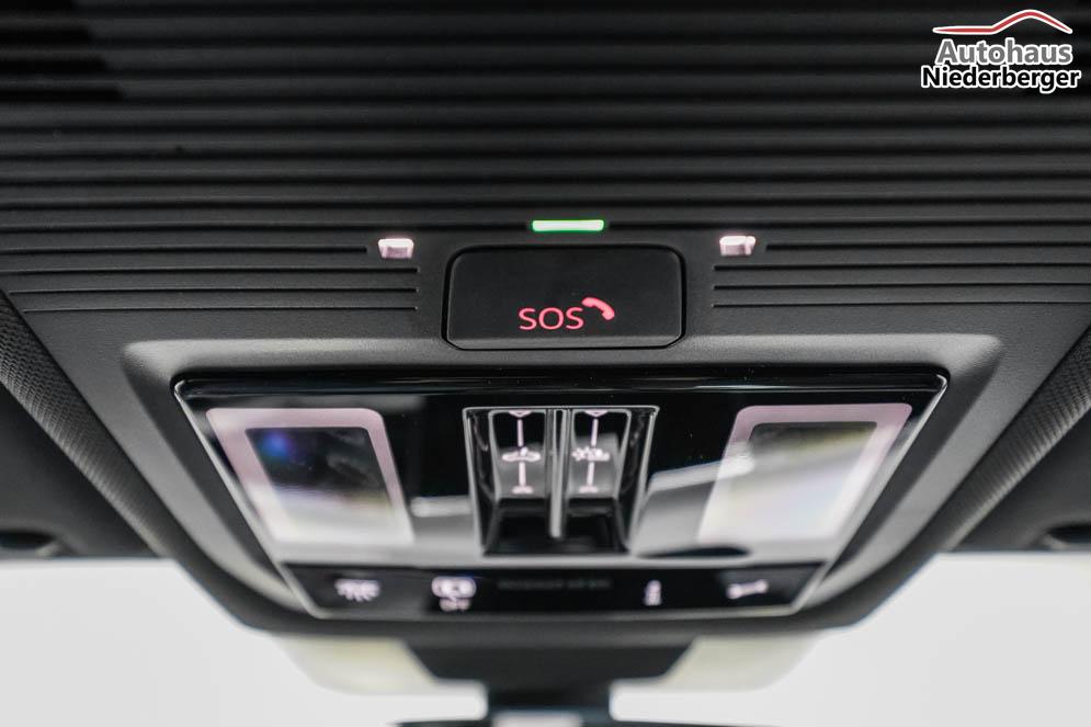 Beifahrersitz höhenverstellbar, Fahrersitz höhenverstellbar, Lederlenkrad, Lendenwirbelstütze, Mittelarmlehne vorne, Sitzbezug Stoff, Sportsitze, Lenkrad höhenverstellbar, Ambiente-Beleuchtung, Massagesitze, Beheizbares Lenkrad, Multifunktions-Sportlenkrad, Isofix, Isofix Beifahrersitz, abgedunkelte Scheiben, 20 Zoll Alufelgen York, Dachreling, ABS, Außenspiegel elektrisch, Fensterheber elektrisch, Kopfairbags, Schiebedach, Seitenairbags, Servolenkung, Sitzheizung vorne, Sportfahrwerk DCC Pro, ESP, Wegfahrsperre, Außenspiegel beheizbar, Beifahrerairbag, Fahrerairbag, Partikelfilter, Parkpilot hinten, Parkpilot vorne, Reifendruckkontrolle, Regensensor, Lichtsensor, Digital Cockpit Pro, Anhängekupplung schwenkbar, Tempomat Abstand ACC, Fernlichtassistent, Notbremsassistent, Spurhalteassistent, Verkehrszeichenerkennung, IQ-Light-HD-Matrix-LED-Scheinwerfer, Tagfahrlicht, Tagfahrlicht LED, Rückfahrkamera, Park-Assistent, Panoramadach, Keyless Start, StartStopSystem, Winterpaket, Berganfahrassistent, Müdigkeitswarnsystem, Notrufsystem, Schaltwippen, Klimaautomatik 3-Zonen, 360-Grad-Kamera, Geschwindigkeitsbegrenzer, Android Auto, Apple Carplay, Freisprecheinrichtung, Induktionsladestation, Sprachsteuerung, USB Typ-C, Radio DAB, Bluetooth, Bordcomputer, Infotainment-System mit 12,9 Zoll Display, Design Paket Black Style, Trailer Assist, ergoActive Vordersitze mit Memory, Fahrprofilauswahl, 3D-LED-Rückleuchten, erweiterte Herstellergarantie 5 Jahre/100.000km,