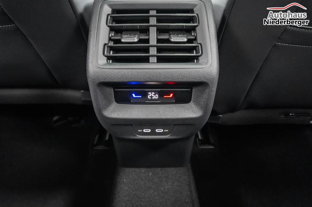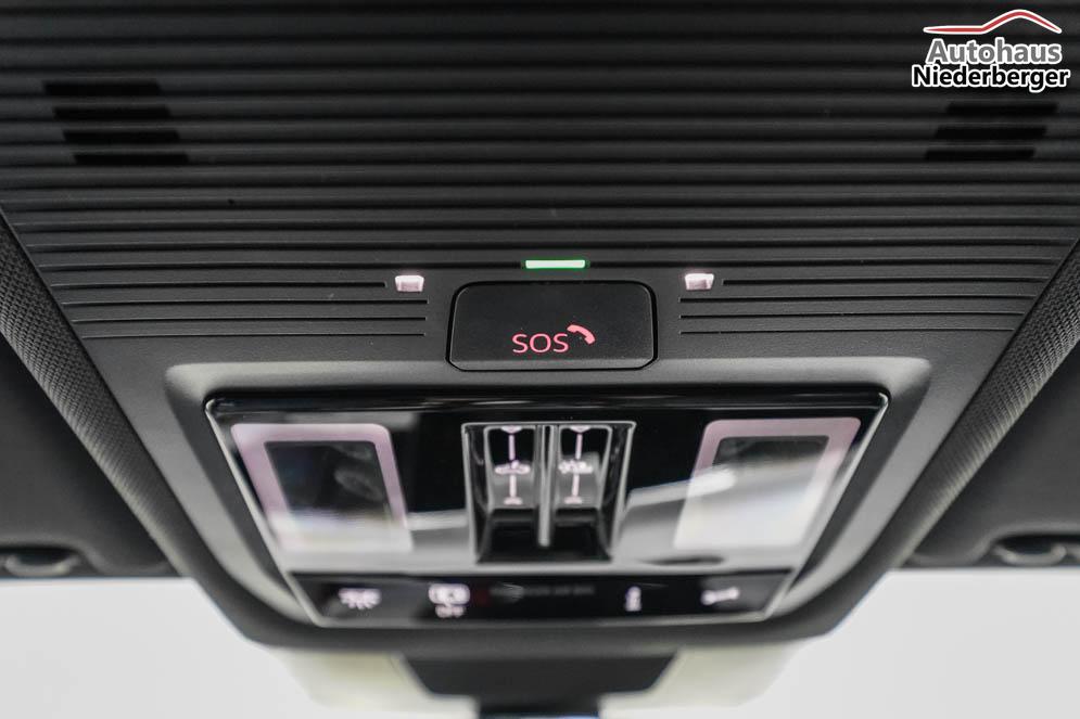 Fahrersitz höhenverstellbar, Lederlenkrad, Lendenwirbelstütze, Mittelarmlehne vorne, Sitzbezug Stoff, Sportsitze, Lenkrad höhenverstellbar, Ambiente-Beleuchtung, Massagesitze, Beheizbares Lenkrad, Multifunktions-Sportlenkrad, Isofix, Isofix Beifahrersitz, abgedunkelte Scheiben, 20 Zoll Alufelgen Leeds, Dachreling, ABS, Alarmanlage, Außenspiegel elektrisch, Fensterheber elektrisch, Kopfairbags, Schiebedach, Seitenairbags, Servolenkung, Sitzheizung vorne, Sportfahrwerk DCC Pro, ESP, Wegfahrsperre, Außenspiegel beheizbar, Beifahrerairbag, Fahrerairbag, Partikelfilter, Parkpilot hinten, Parkpilot vorne, Reifendruckkontrolle, Regensensor, Lichtsensor, Anhängekupplung schwenkbar, Tempomat Abstand ACC, Fernlichtassistent, Notbremsassistent, Spurhalteassistent, Totwinkelassistent, Verkehrszeichenerkennung, IQ-Light-HD-Matrix-LED-Scheinwerfer, Tagfahrlicht, Pannenset, Rückfahrkamera, Park-Assistent, Panoramadach, Elektrische Heckklappe inkl. Virtuelles Pedal, KeylessEntry, StartStopSystem, Winterpaket, Innenspiegel automatisch abbl., Berganfahrassistent, Müdigkeitswarnsystem, Notrufsystem, Schaltwippen, Klimaautomatik 3-Zonen, 360-Grad-Kamera, Geschwindigkeitsbegrenzer, Android Auto, Apple Carplay, Freisprecheinrichtung, Induktionsladestation, Sprachsteuerung, USB Typ-C, Radio DAB, Bluetooth, Bordcomputer, Infotainment-System mit 12,9 Zoll Display, Design Paket Black Style, Trailer Assist, ergoActive Vordersitze mit Memory, erweiterte Herstellergarantie 5 Jahre/100.000km,