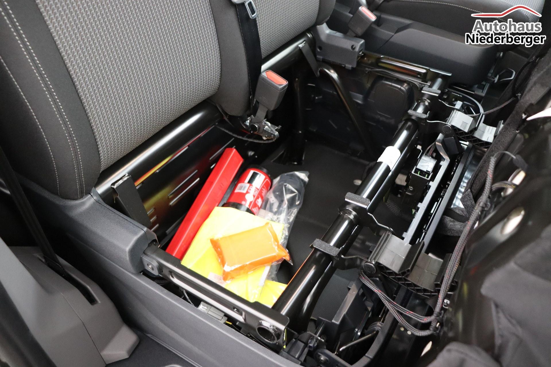 • Kabinensitzpaket (Einzelsitz in gestreiftem Stoff + Doppelbeifahrersitzbank + Sitzheizung)